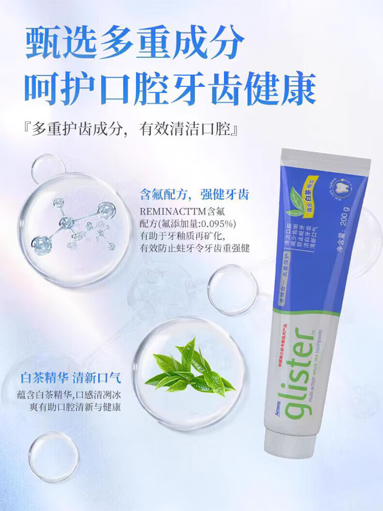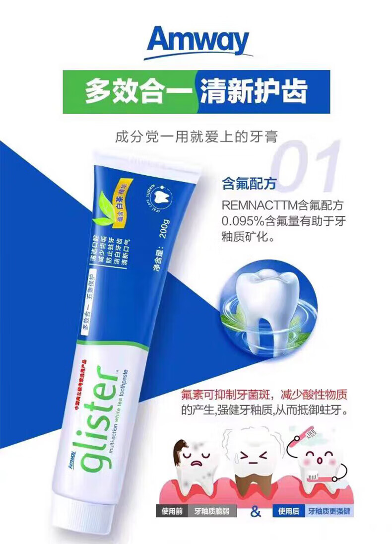 Amway Toothpaste, Multi-effect White Tea, Mint, White Teeth, Anti-cavity, Contains Fluoride, Suitable for Bad Breath, Fresh Breath and Decontamination, 1 White Tea Flavor, New and Old Styles Randomly Delivered