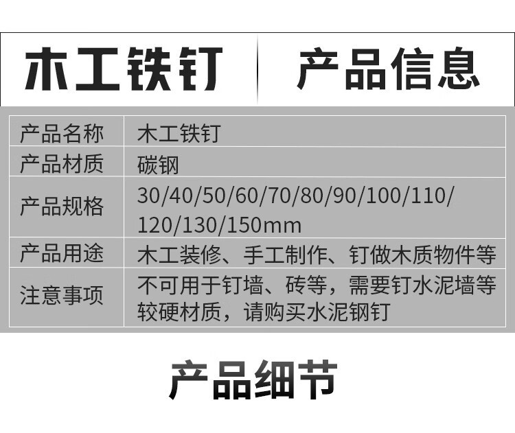 An Junsheng adds hard iron nails, woodworking nails, small nails, hand-made nails, household round nails, small foreign nails, wooden nails, 123456 inches, 500 grams per pound, 1.5 inches (4cm-cm long)