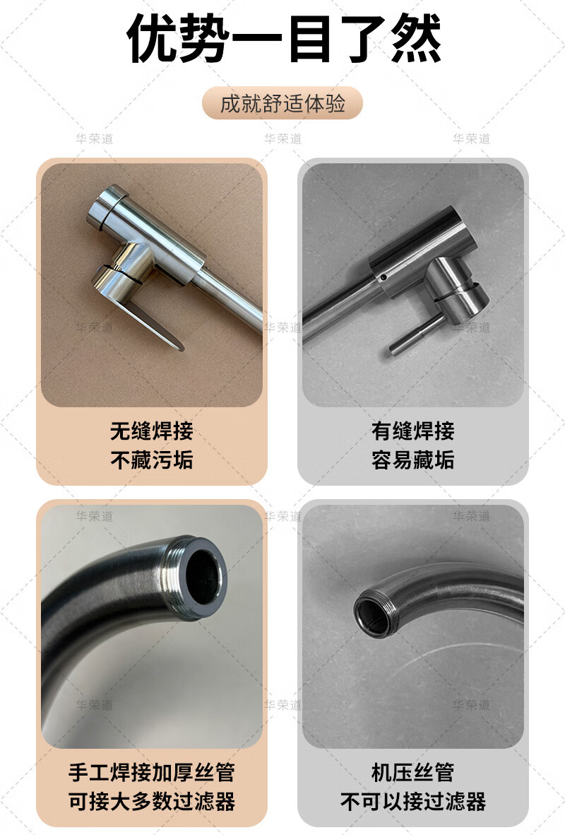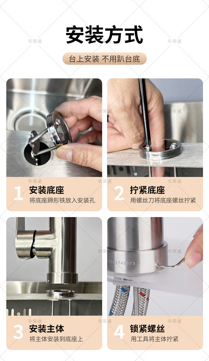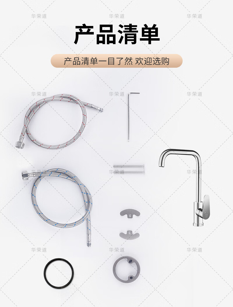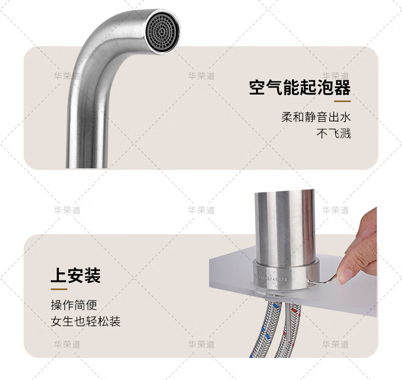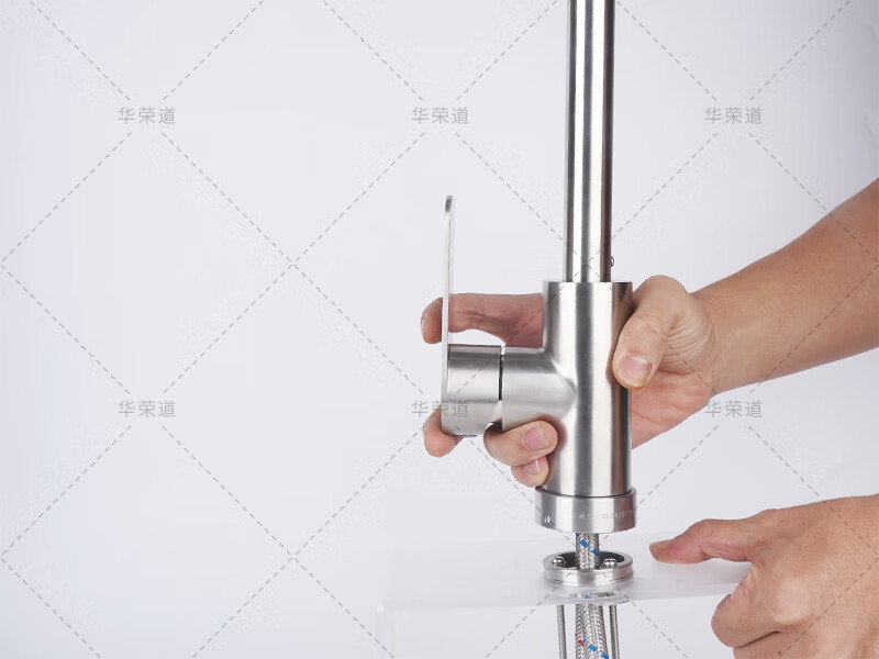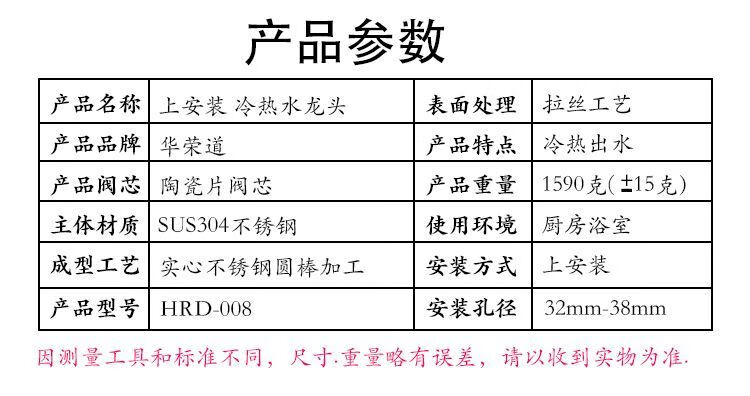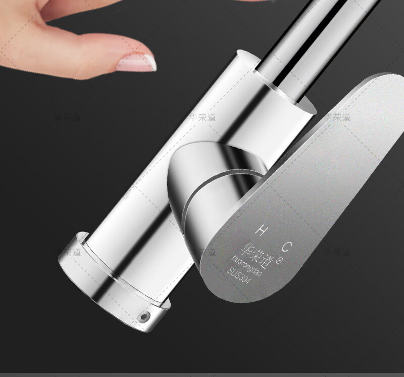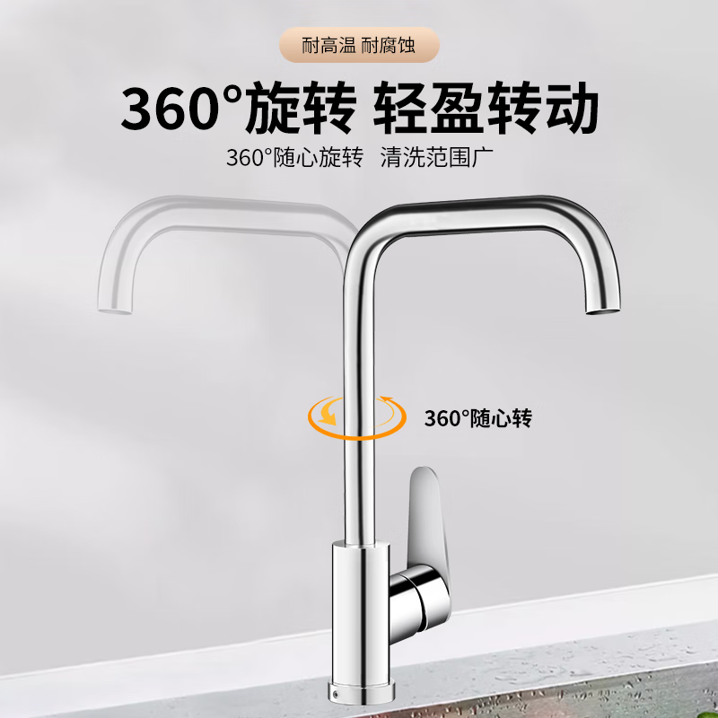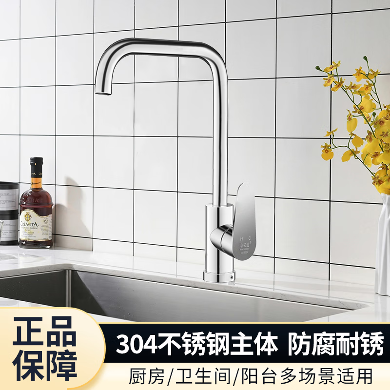 Qinkai installed 304 stainless steel faucet household vegetable washing spindle 360 turn hot and cold water dishwashing pool long thickening installed large curved hot and cold 80 cm hose large 2 hrd008
