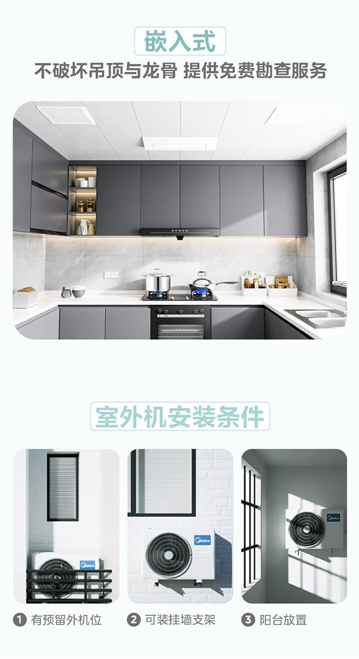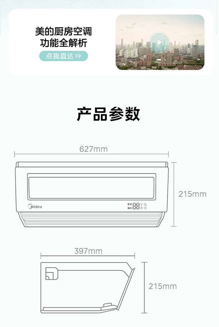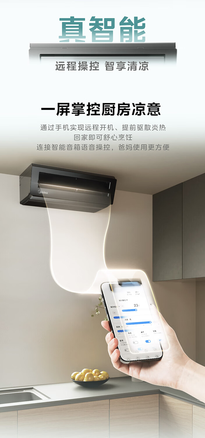 Midea kitchen air conditioner, hanging, ceiling-mounted, wall-mounted home appliances, frequency conversion, energy saving, oil fume prevention, large cooling capacity