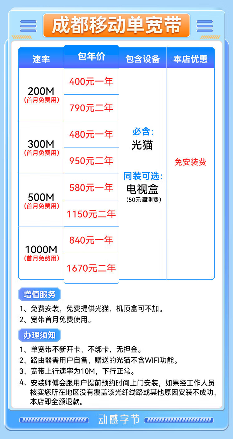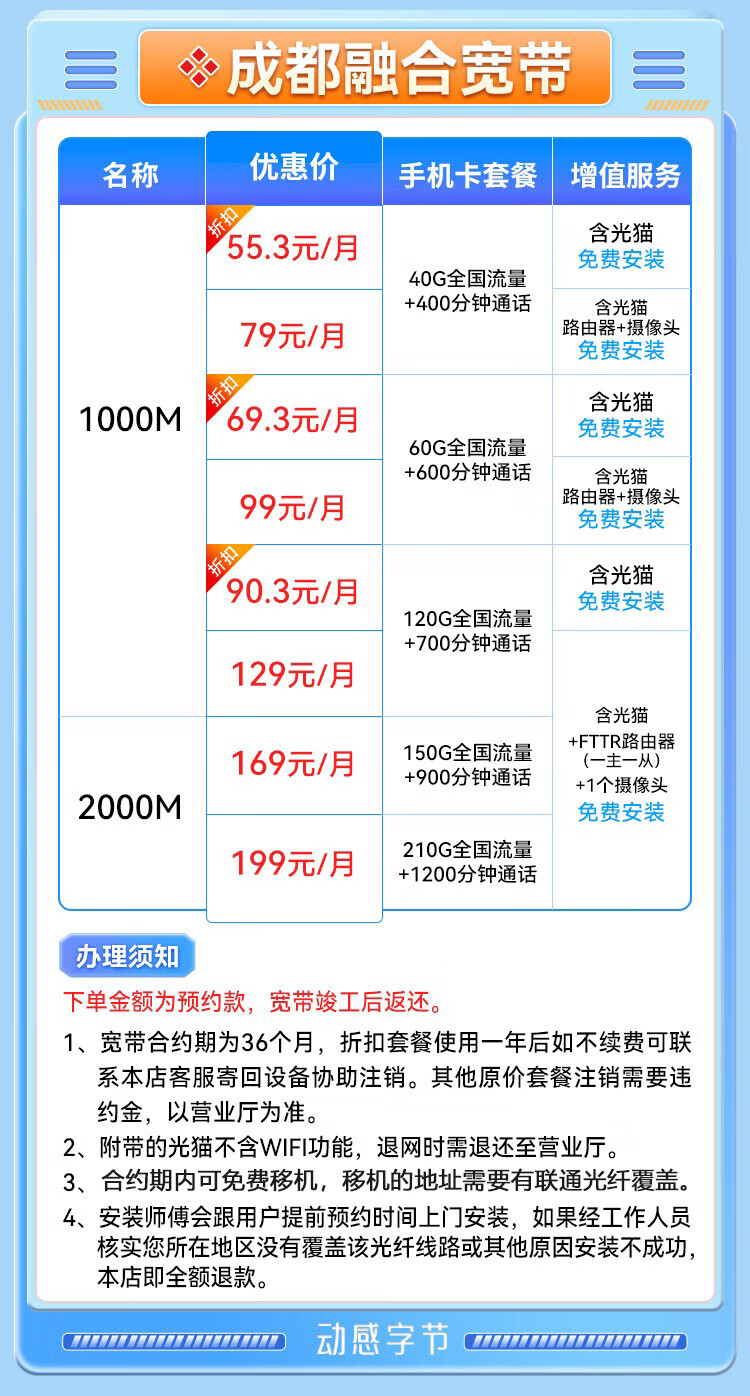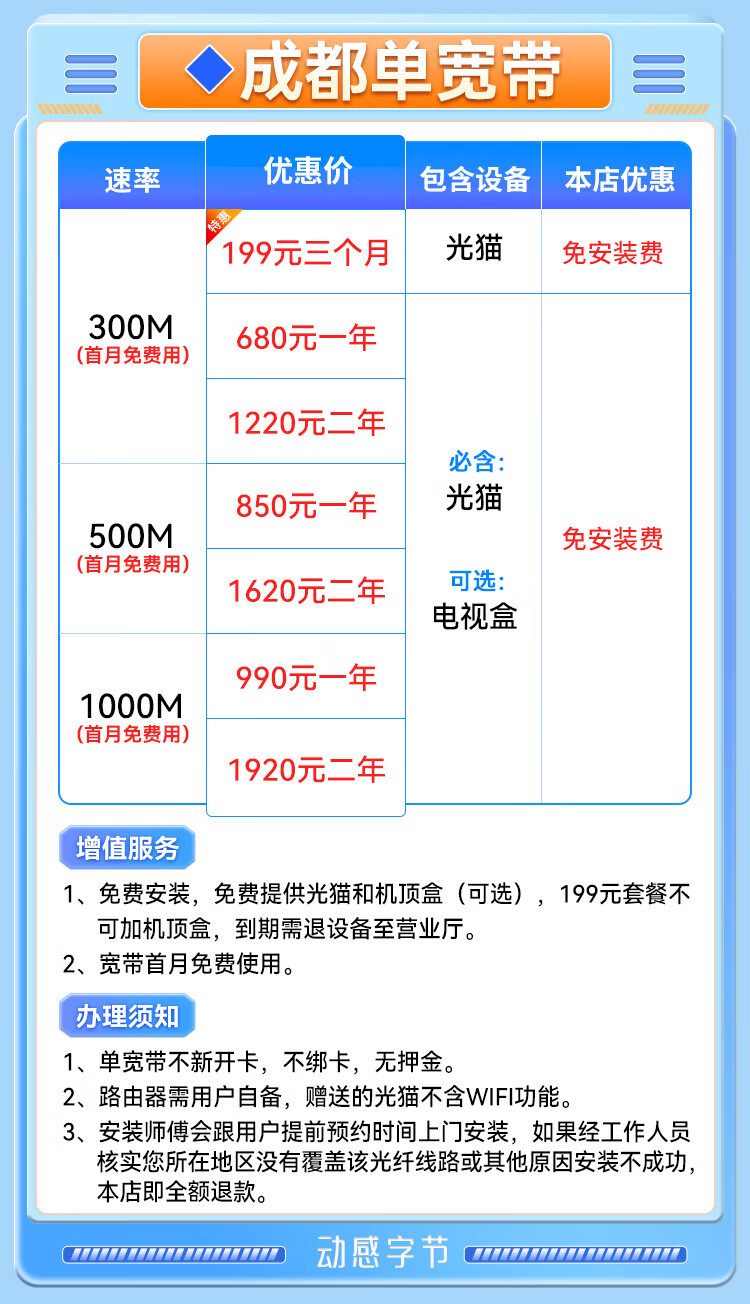 China Unicom Sichuan Chengdu Unicom 500M broadband application for new fiber optic pure broadband fast door-to-door GD 1000M single broadband 480 yuan a year free application