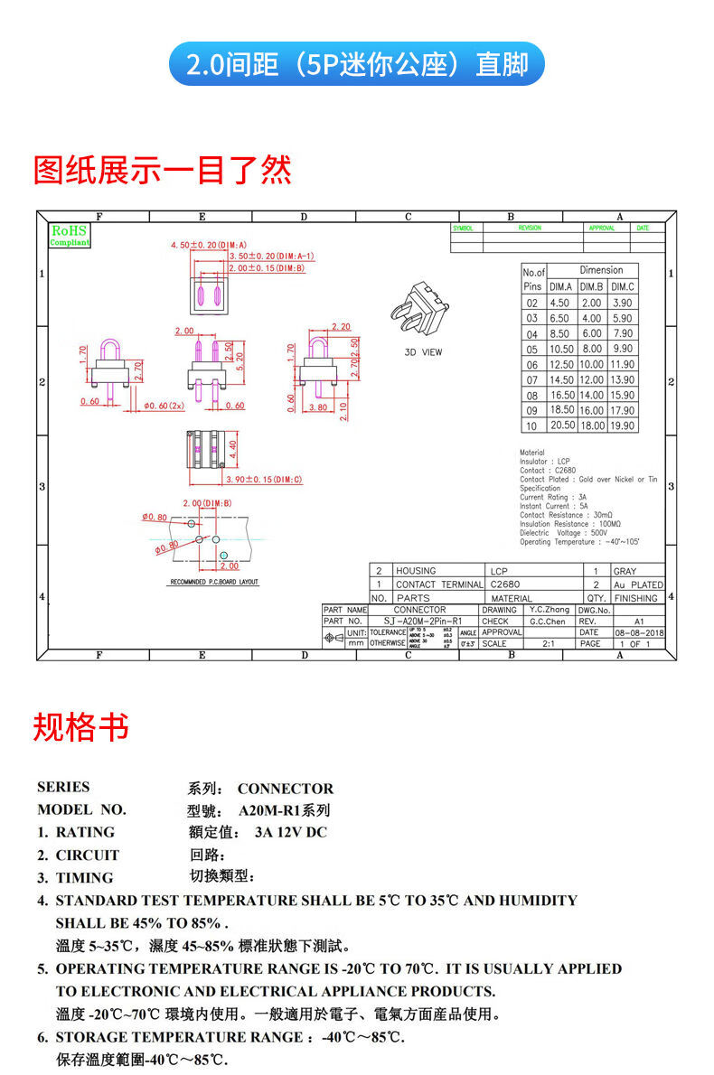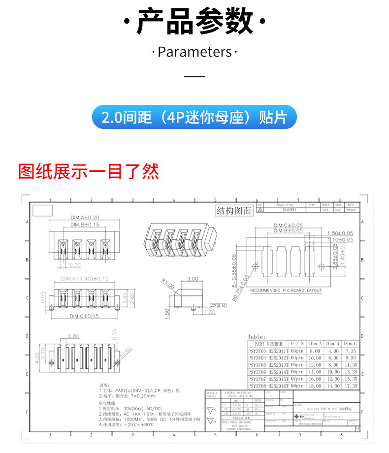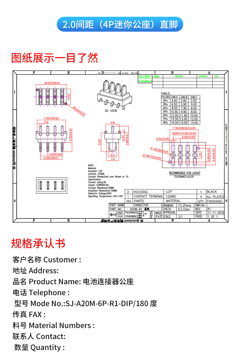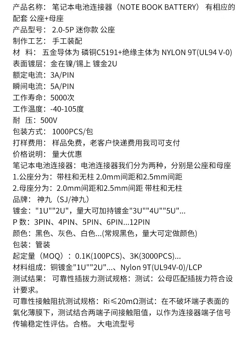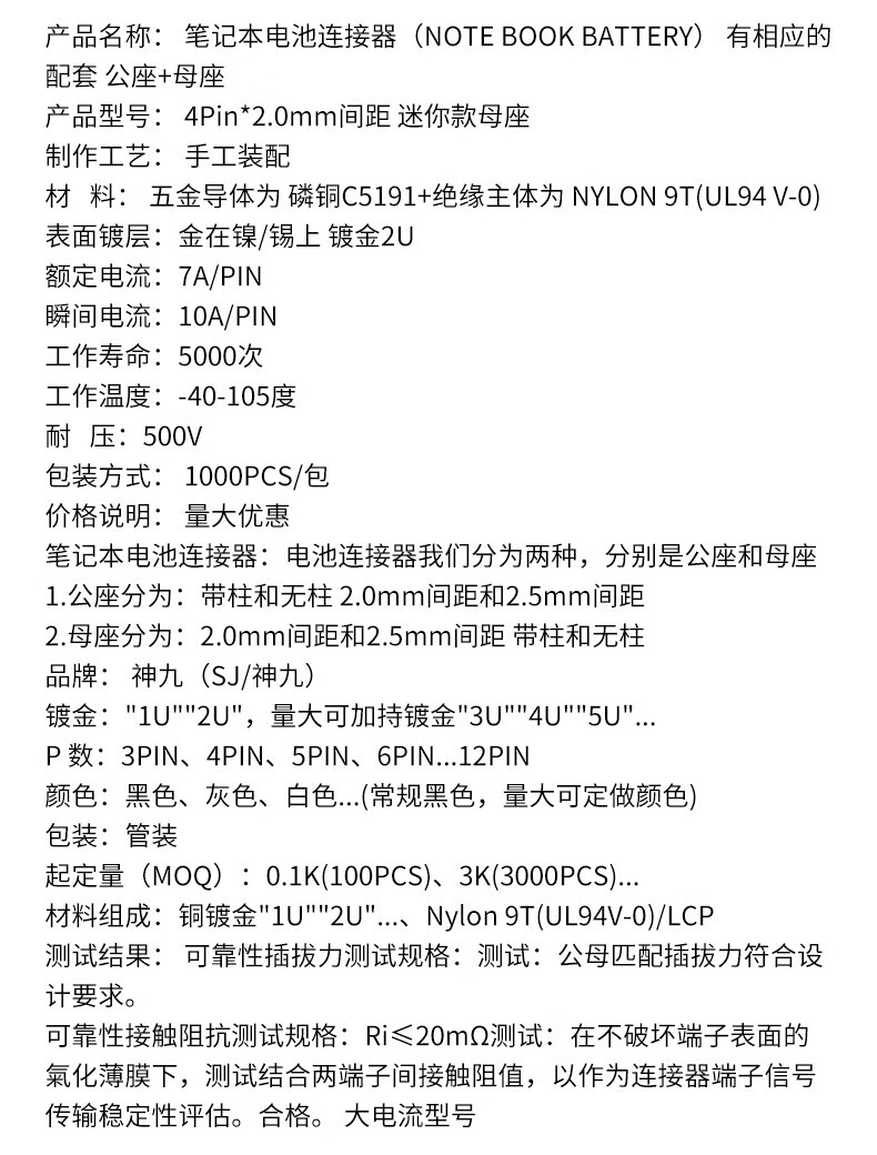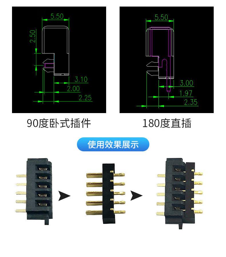 4P5P Mini Male Female 2.0 Pitch Battery Connector Wall Cabinet Light Drone 180 Degree Blade Plug-in 2.0 Pitch (4P Mini Male) Straight Leg