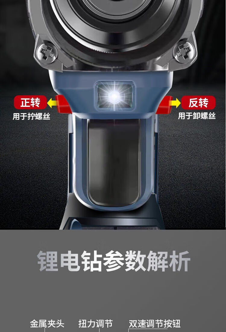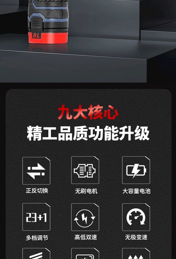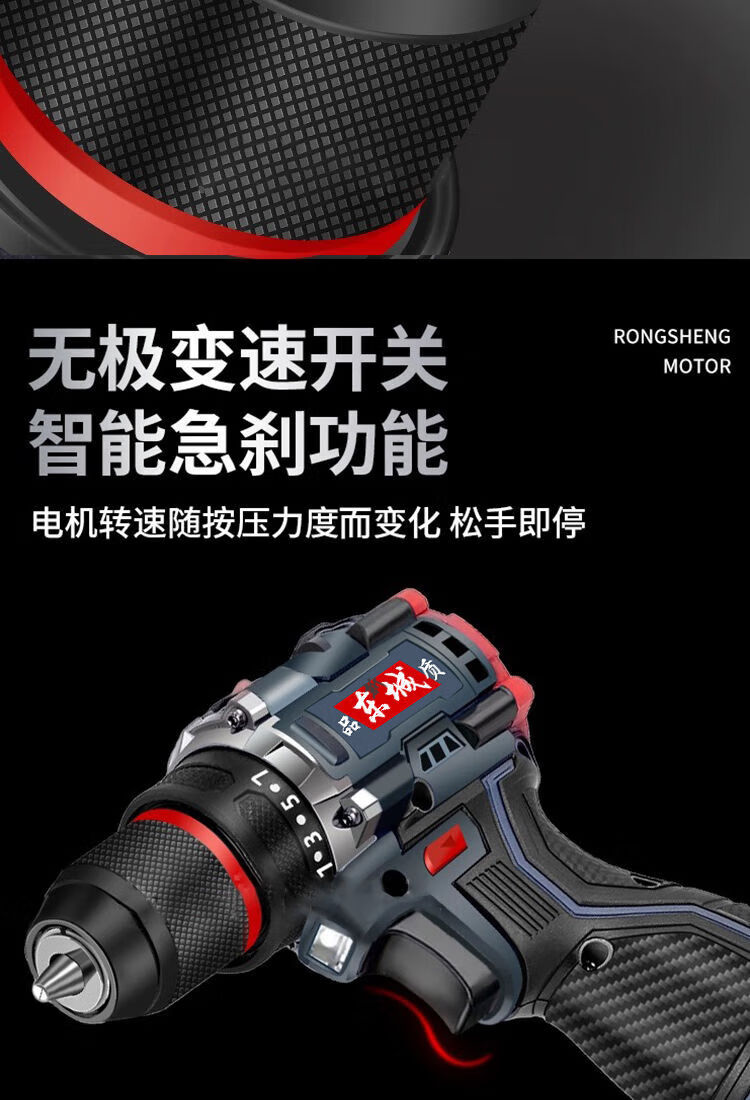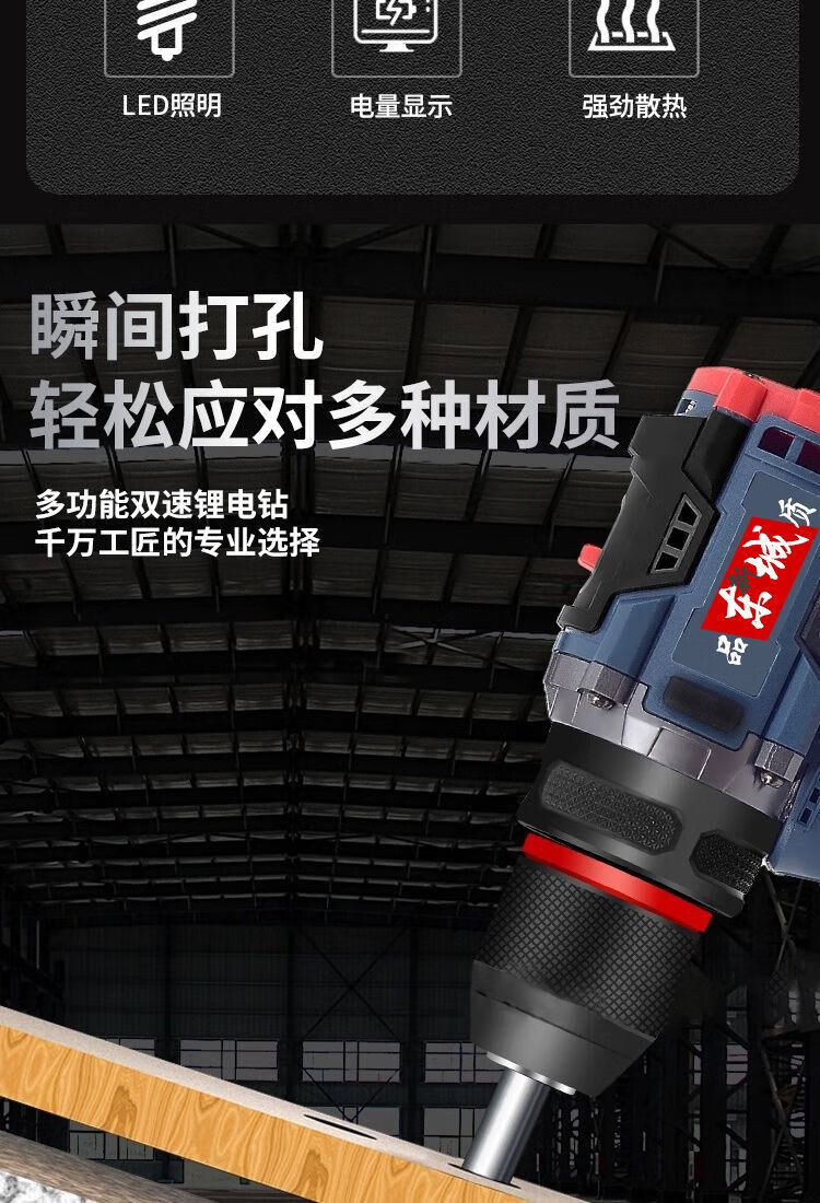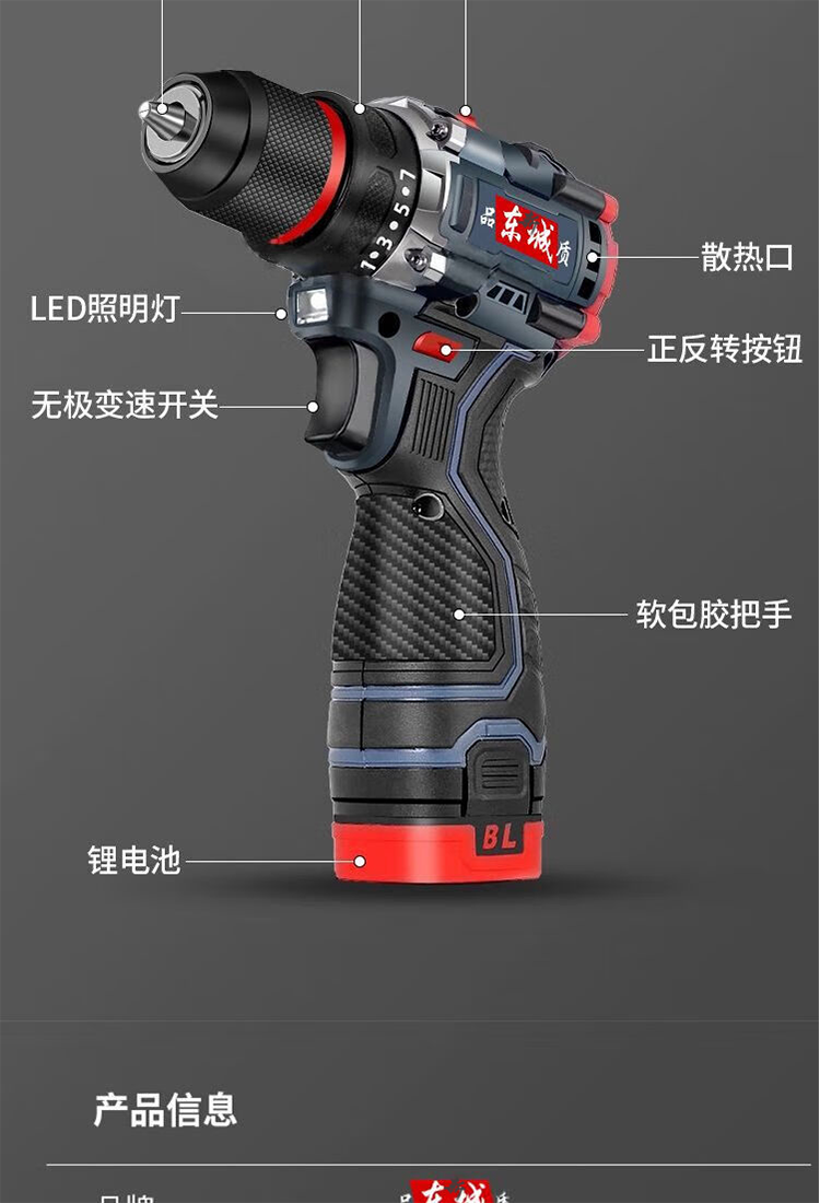 Dongcheng hand drill brushless electric drill lithium battery pistol drill small steel cannon impact multi-functional household electric drill product Dongxincheng quality impact model 18V two power delivery tool box