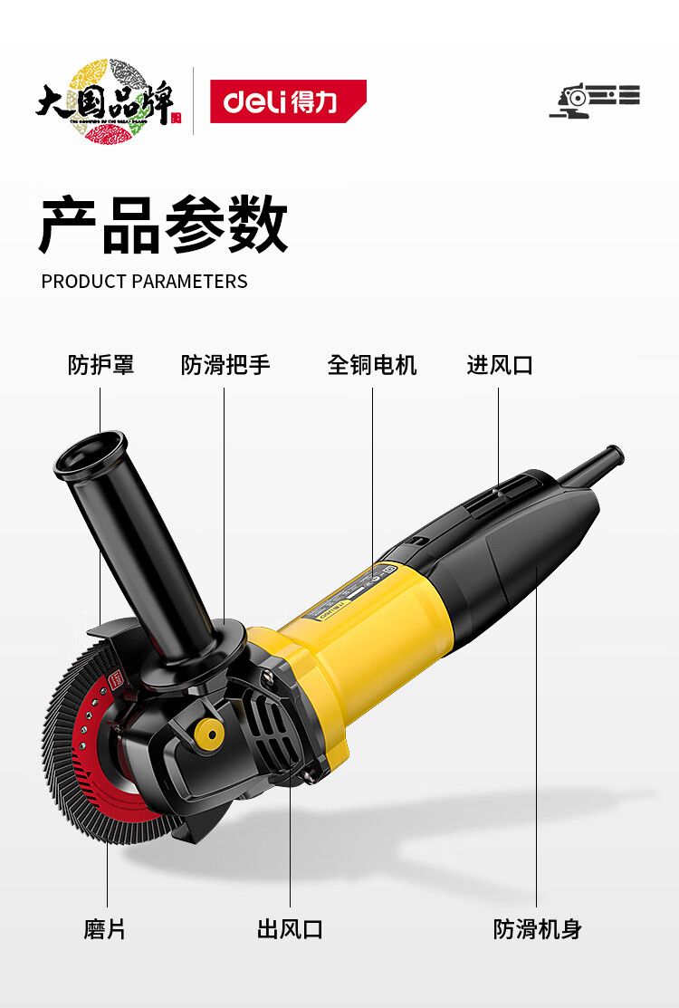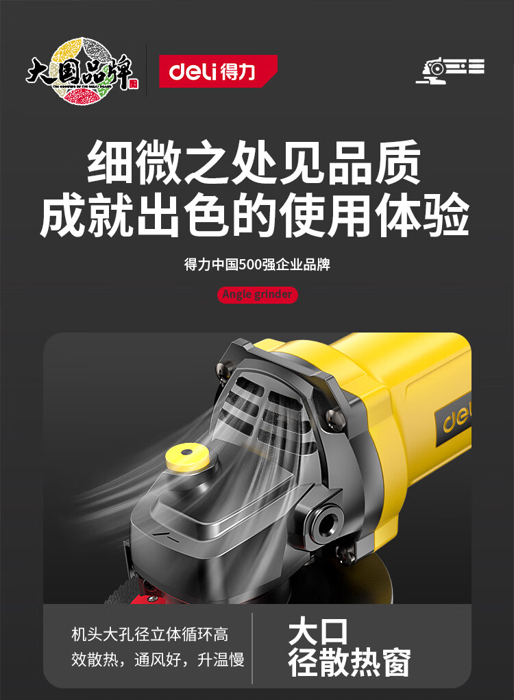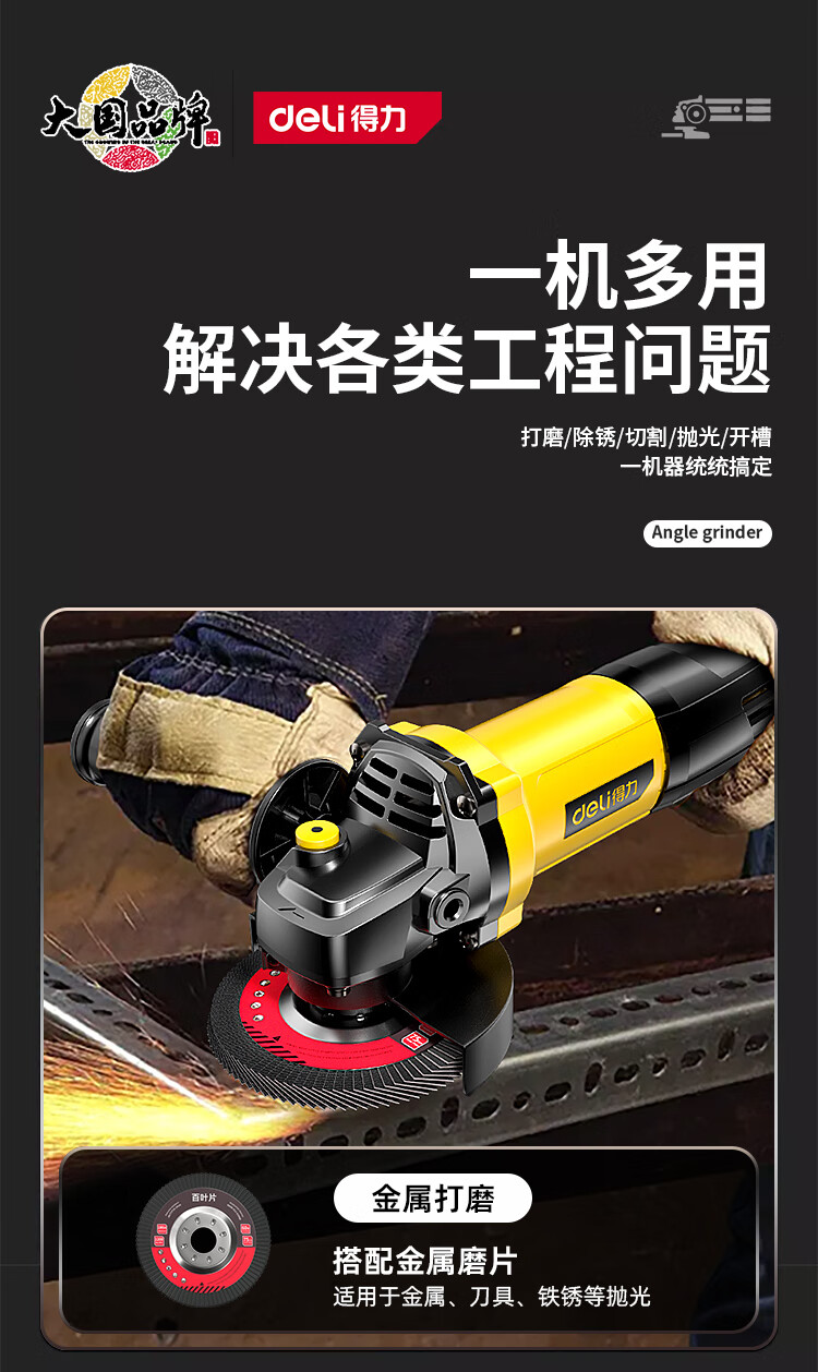 Deli Multifunctional Angle Grinder Grinding Machine Polishing Machine Artifact High Power Handheld Electric Cutting Machine Polishing Tool 1200W Rear Opening Angle Grinder + Factory Gift Pack