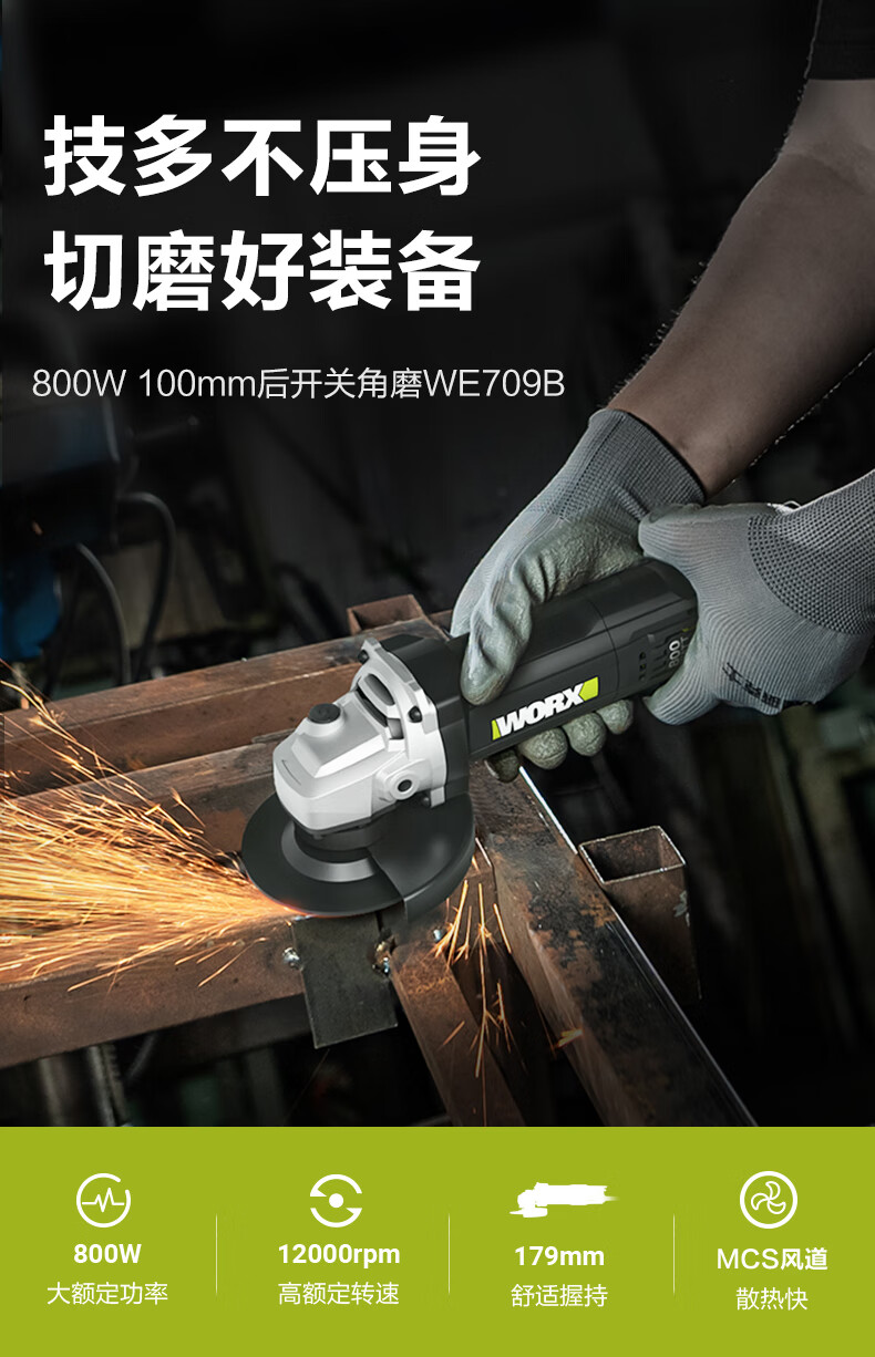 WORX angle grinder WE709B multi-function grinder small cutting machine polisher grinder grinding wheel power tool WE709 factory standard (side switch)