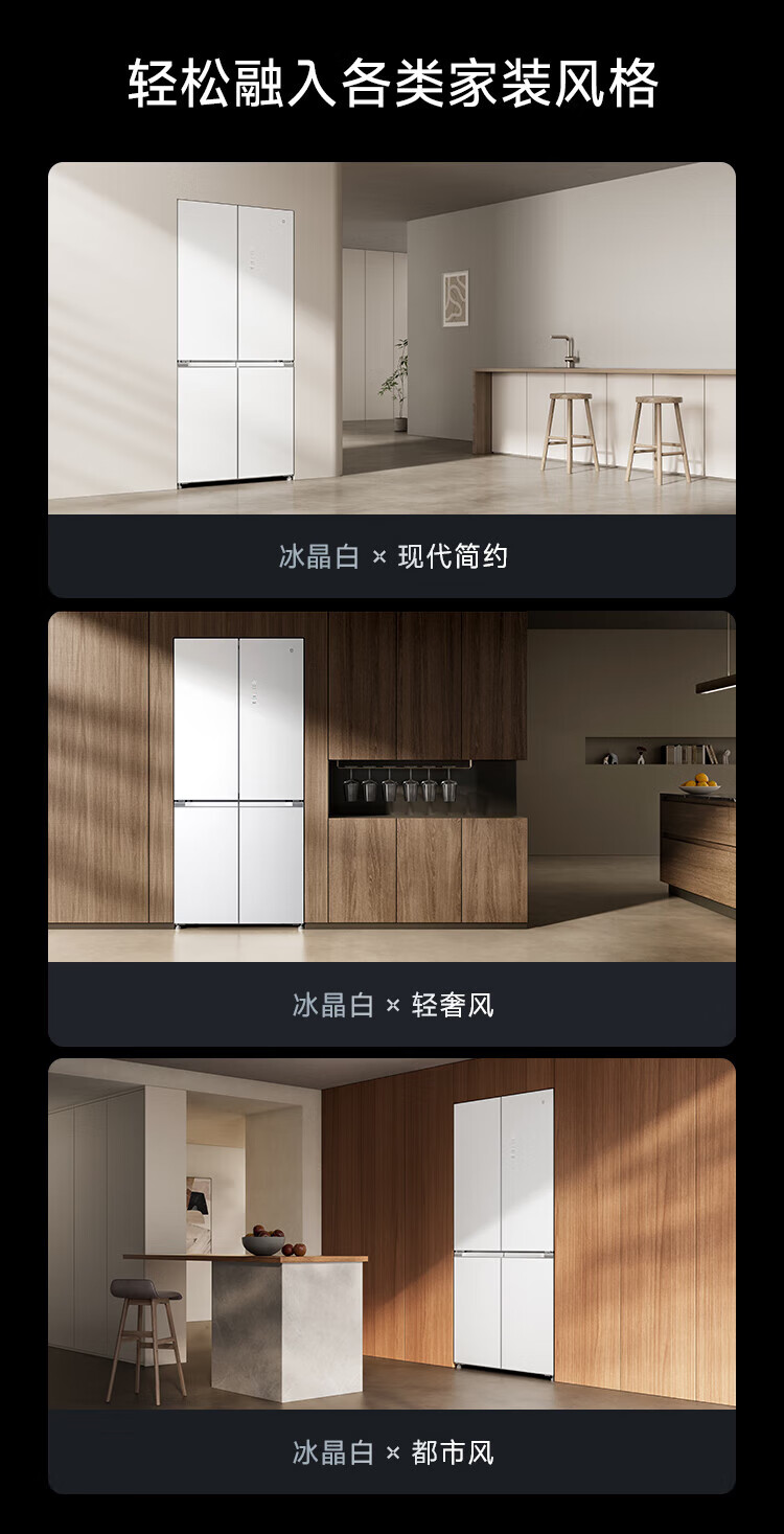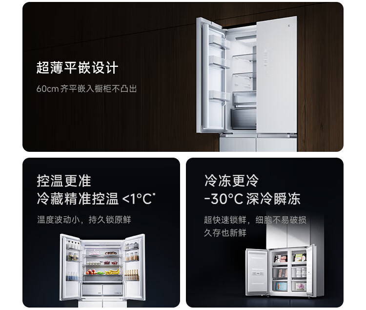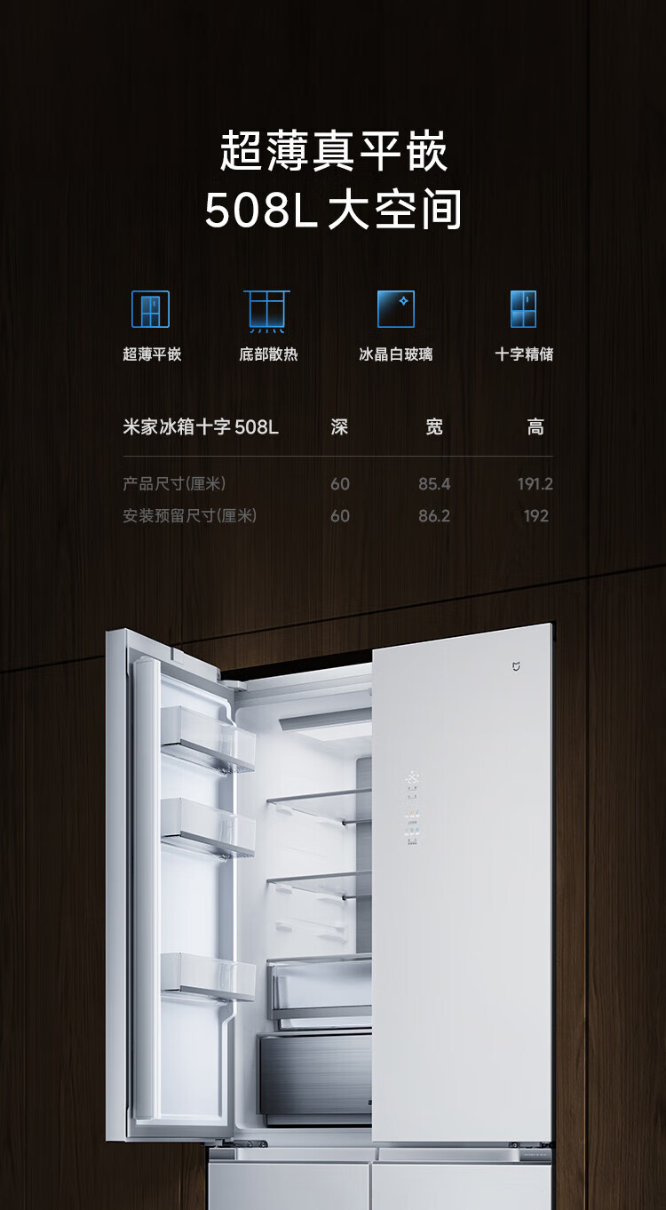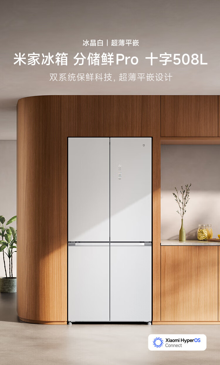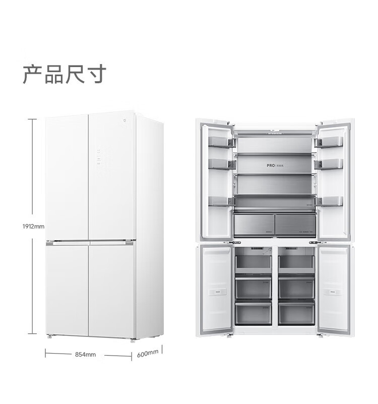 Mijia Xiaomi Refrigerator 508L Cross Door Refrigerator Dual Cycle Dual System Pro Level 1 60cm Ultra-Thin Ice Crystal White BCD-508WTGBIA Mijia 508L Fresh Storage Pro Cross Flat Inlay Ice Crystal White