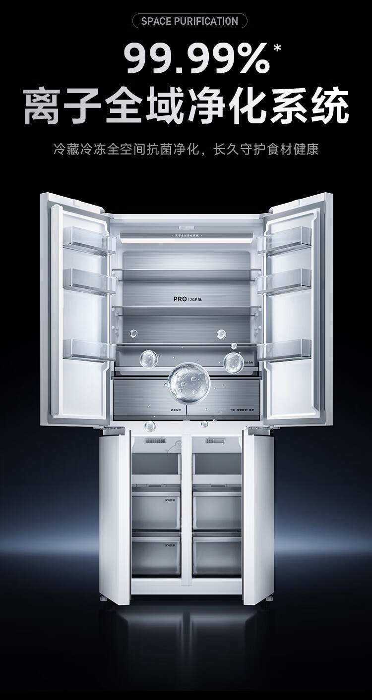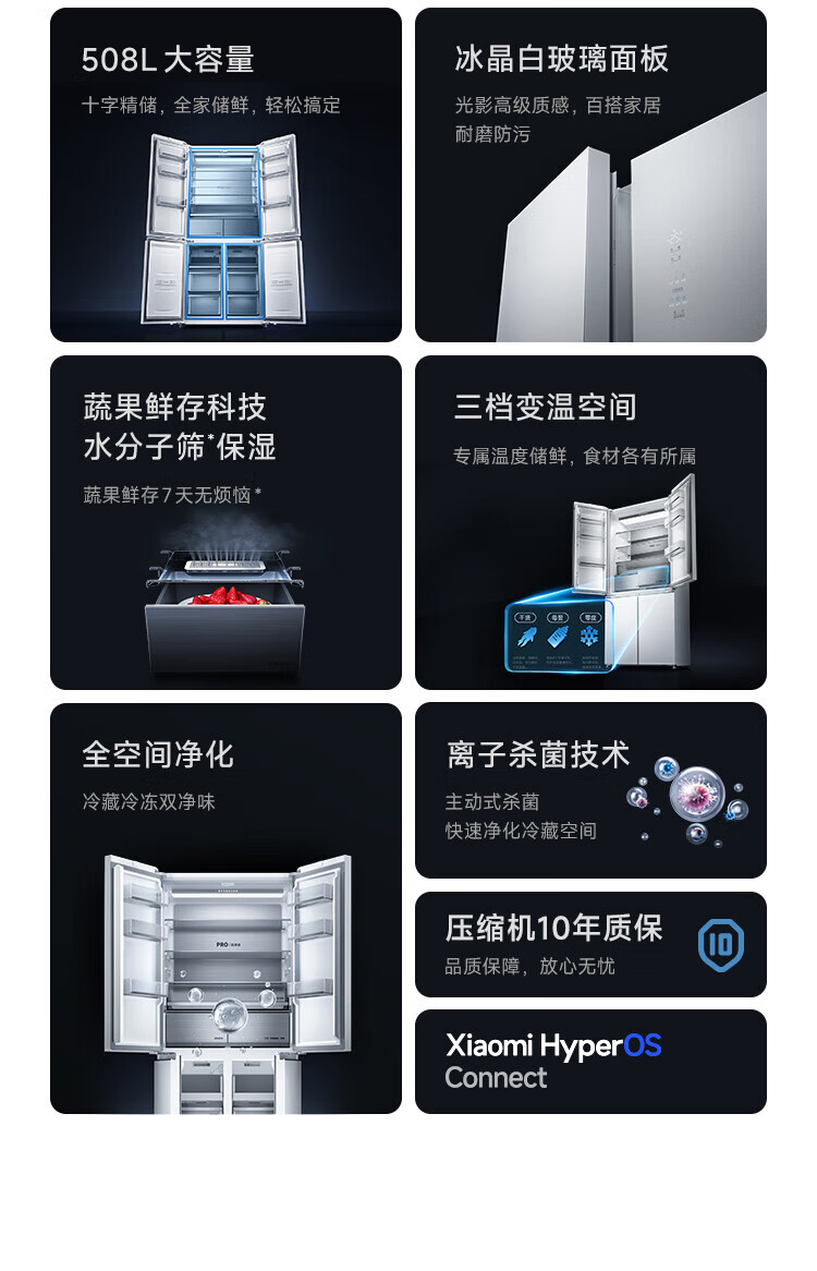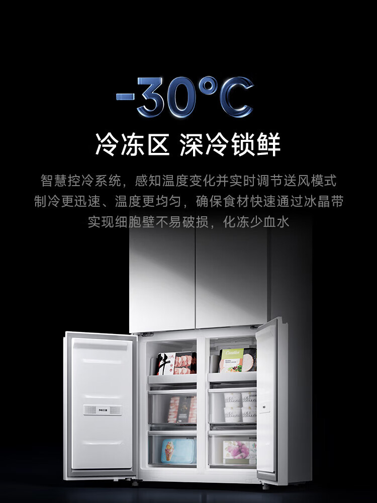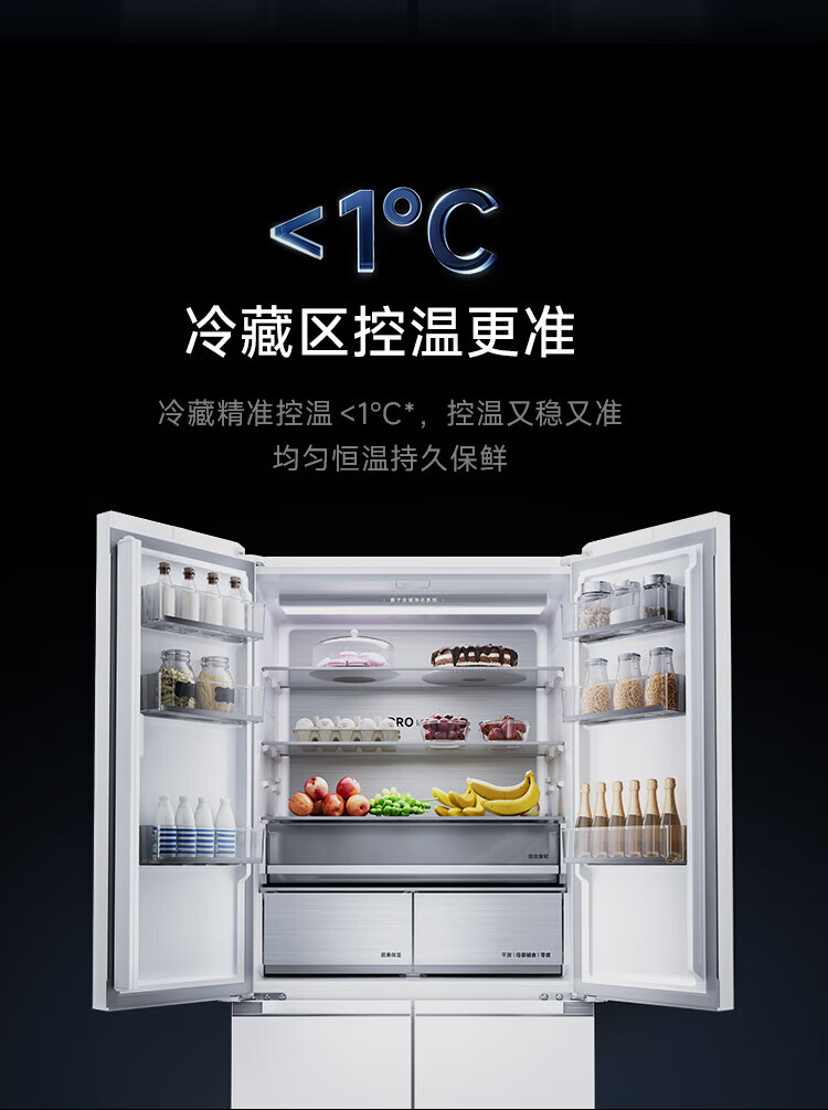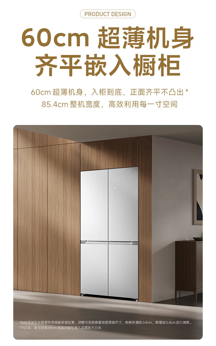Mijia Xiaomi Refrigerator 508L Cross Door Refrigerator Dual Cycle Dual System Pro Level 1 60cm Ultra-Thin Ice Crystal White BCD-508WTGBIA Mijia 508L Fresh Storage Pro Cross Flat Inlay Ice Crystal White