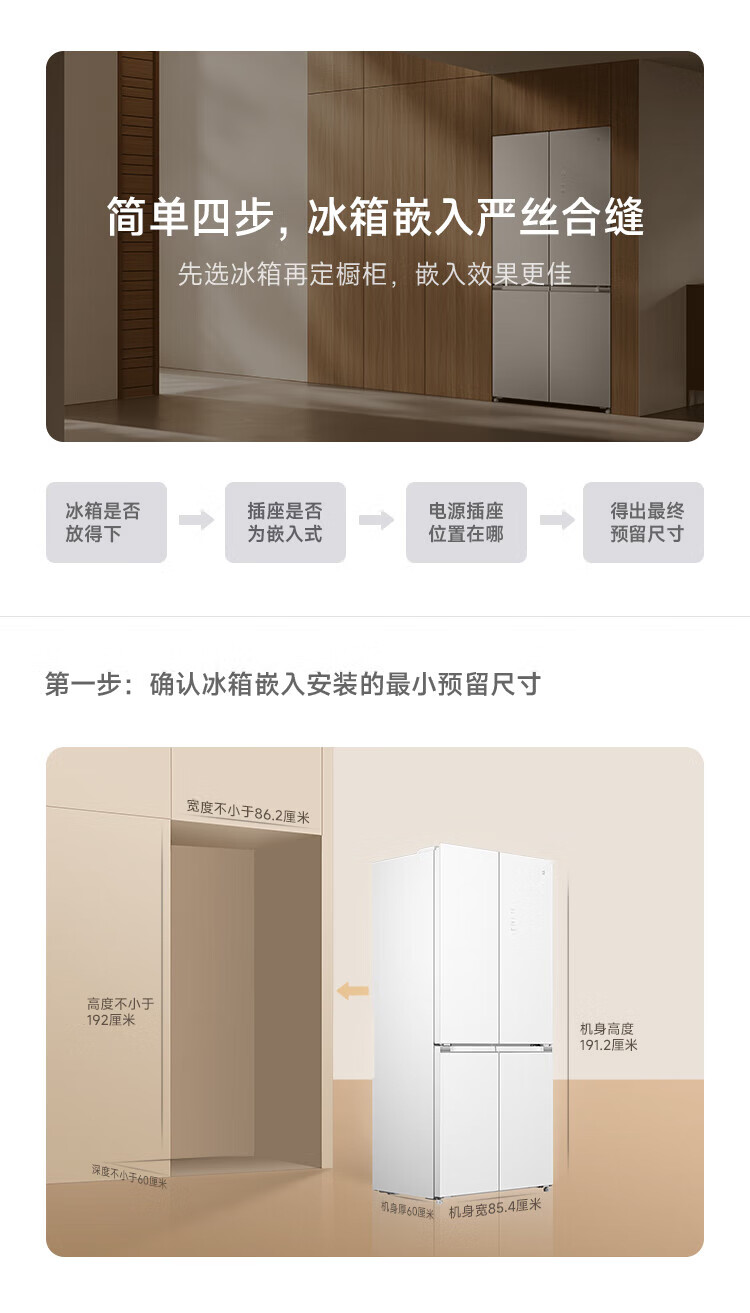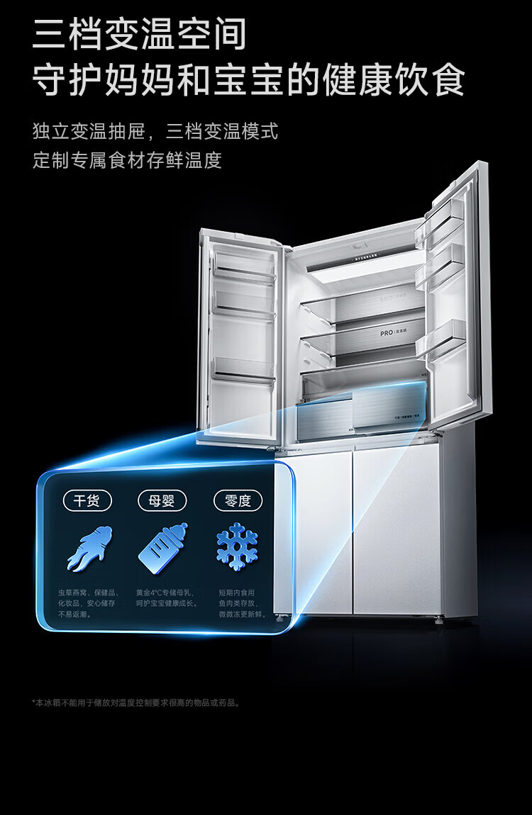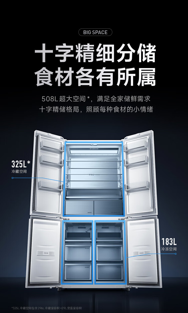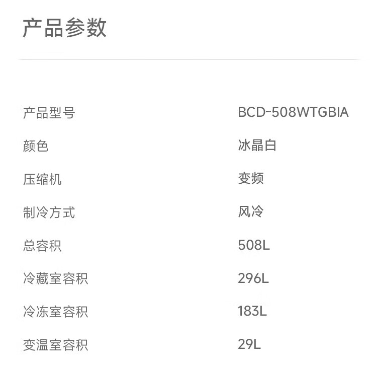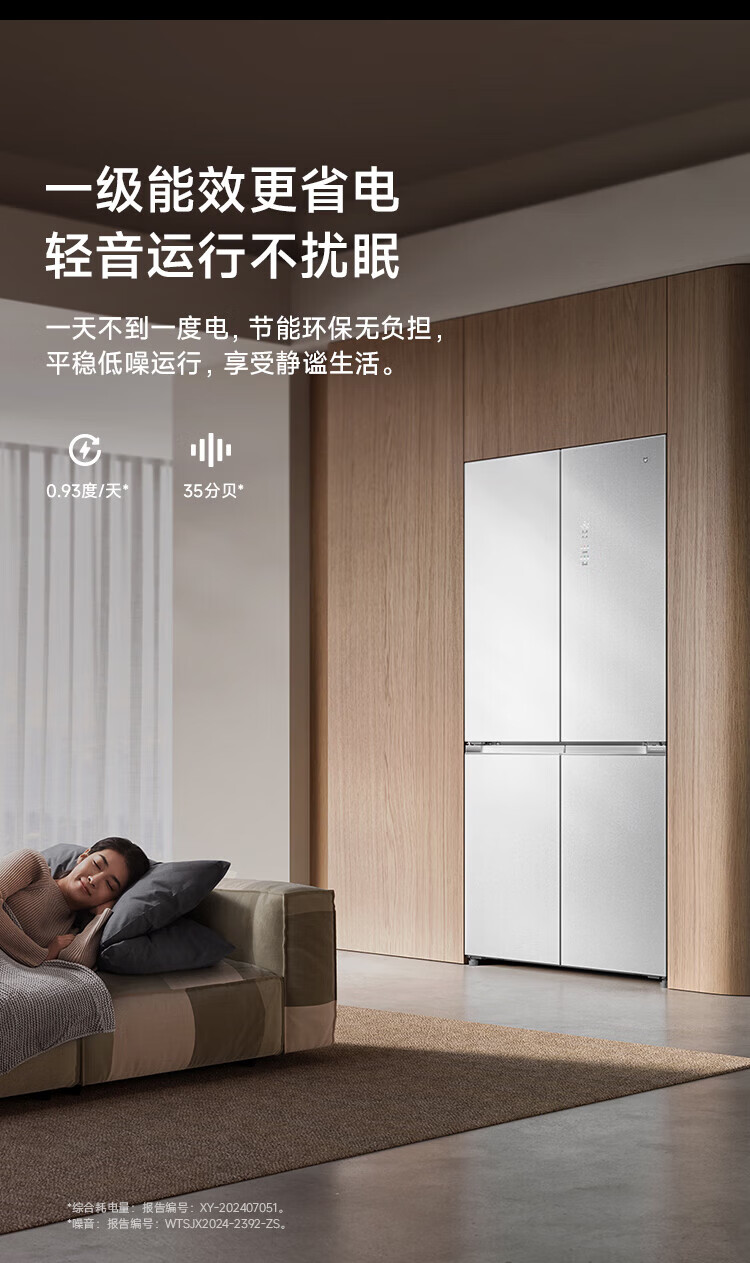 Mijia Xiaomi Refrigerator 508L Cross Door Refrigerator Dual Cycle Dual System Pro Level 1 60cm Ultra-Thin Ice Crystal White BCD-508WTGBIA Mijia 508L Fresh Storage Pro Cross Flat Inlay Ice Crystal White