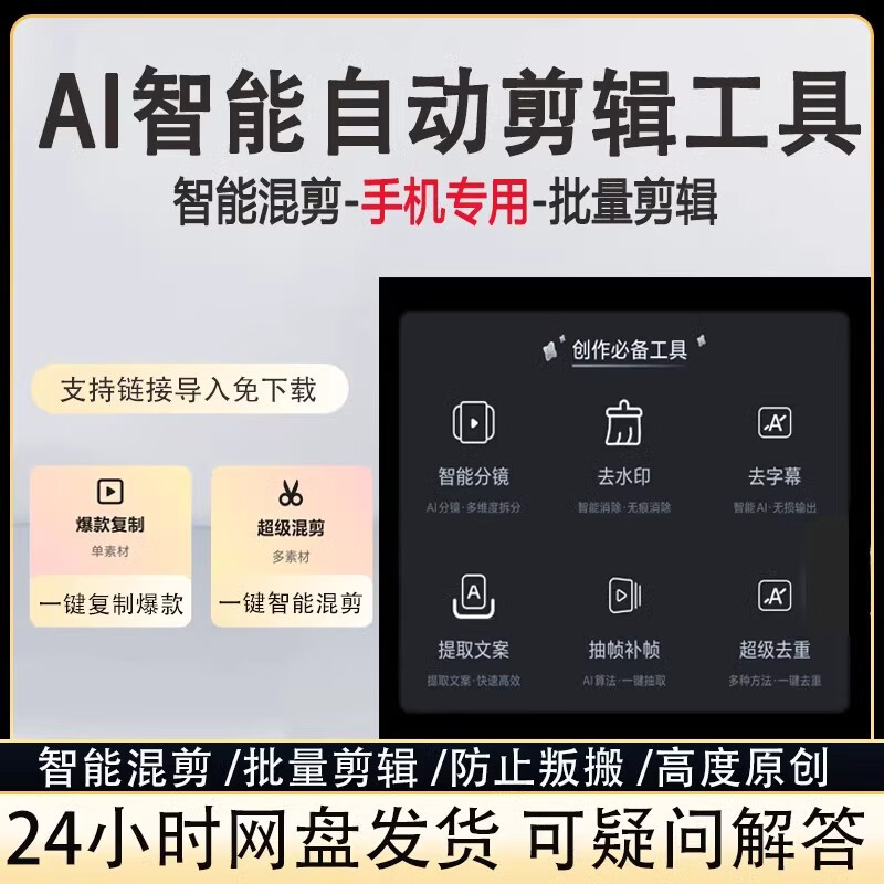 AI intelligent automatic editing tool mobile computer version short video deduplication handling mixed editing dubbing cutting software
