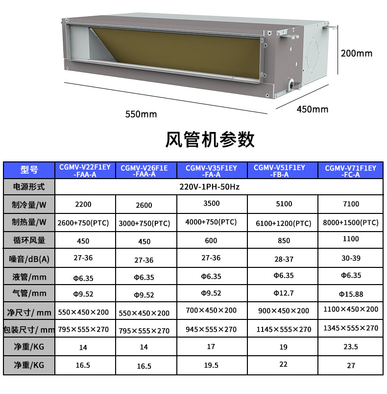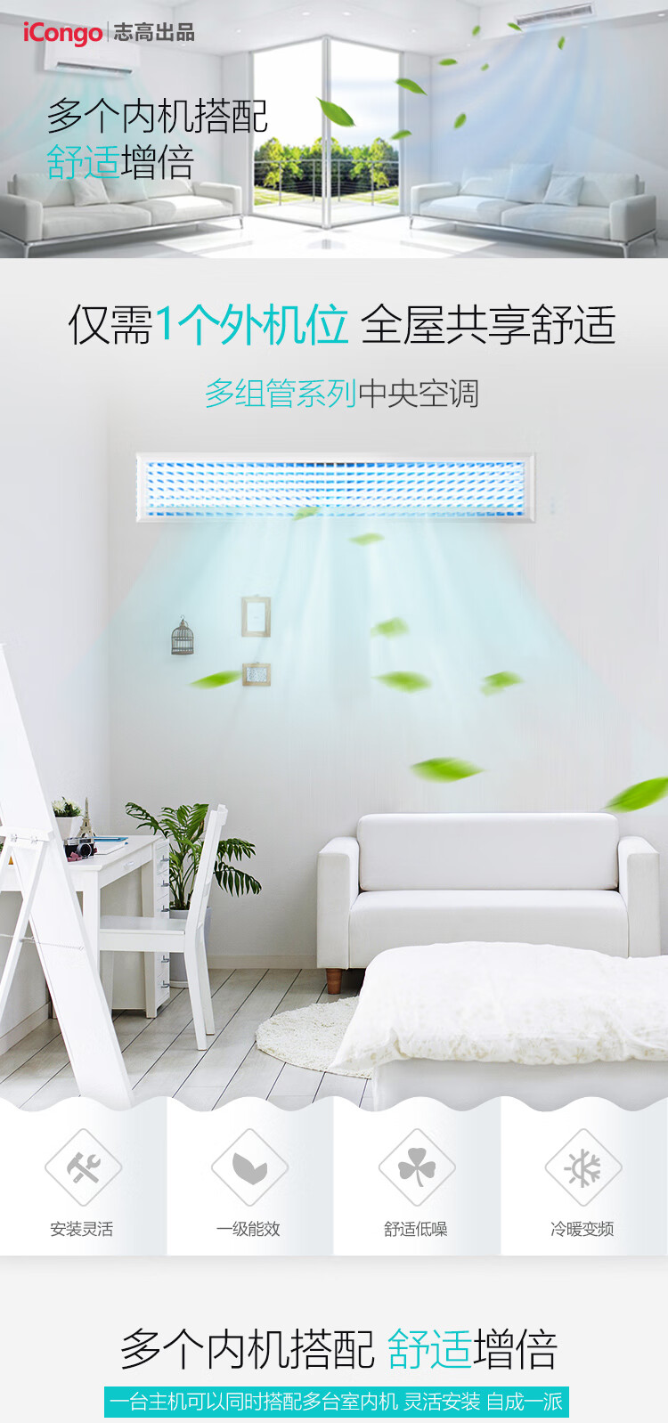 Chigo variable frequency energy-saving central air conditioner multi-split one-to-two to three-to-four duct unit mounted large 2 hp 3 hp 4 hp 5 hp home duplex apartment refrigeration large 4 hp first-class energy efficiency one-to-three consultation and matching 105W outdoor unit