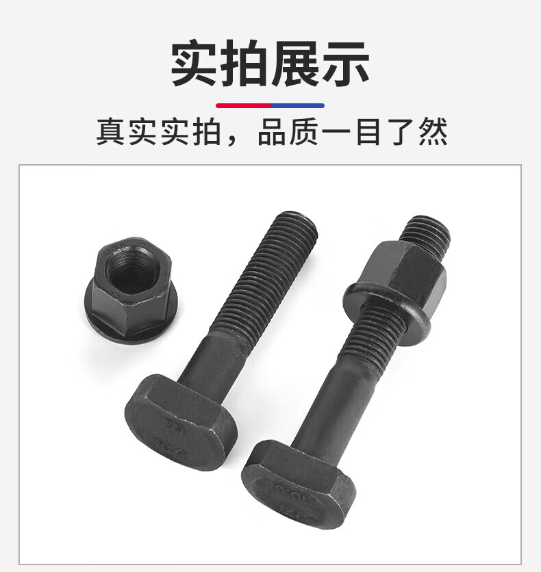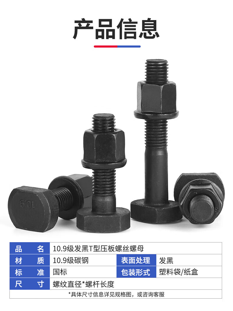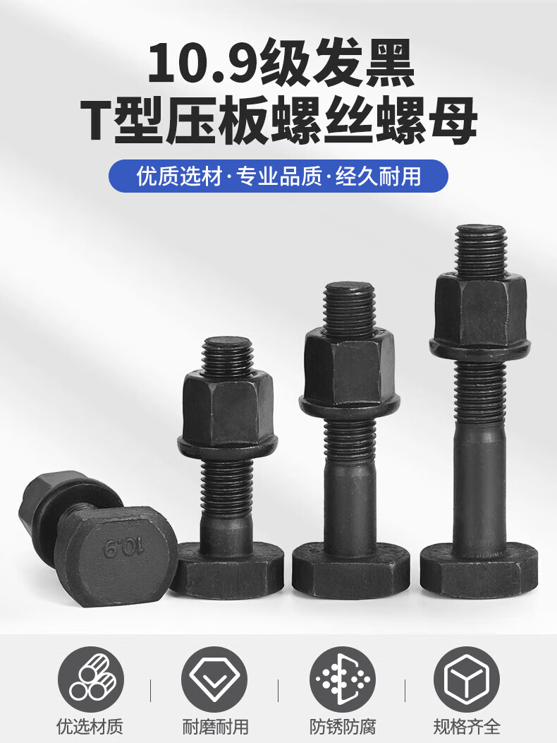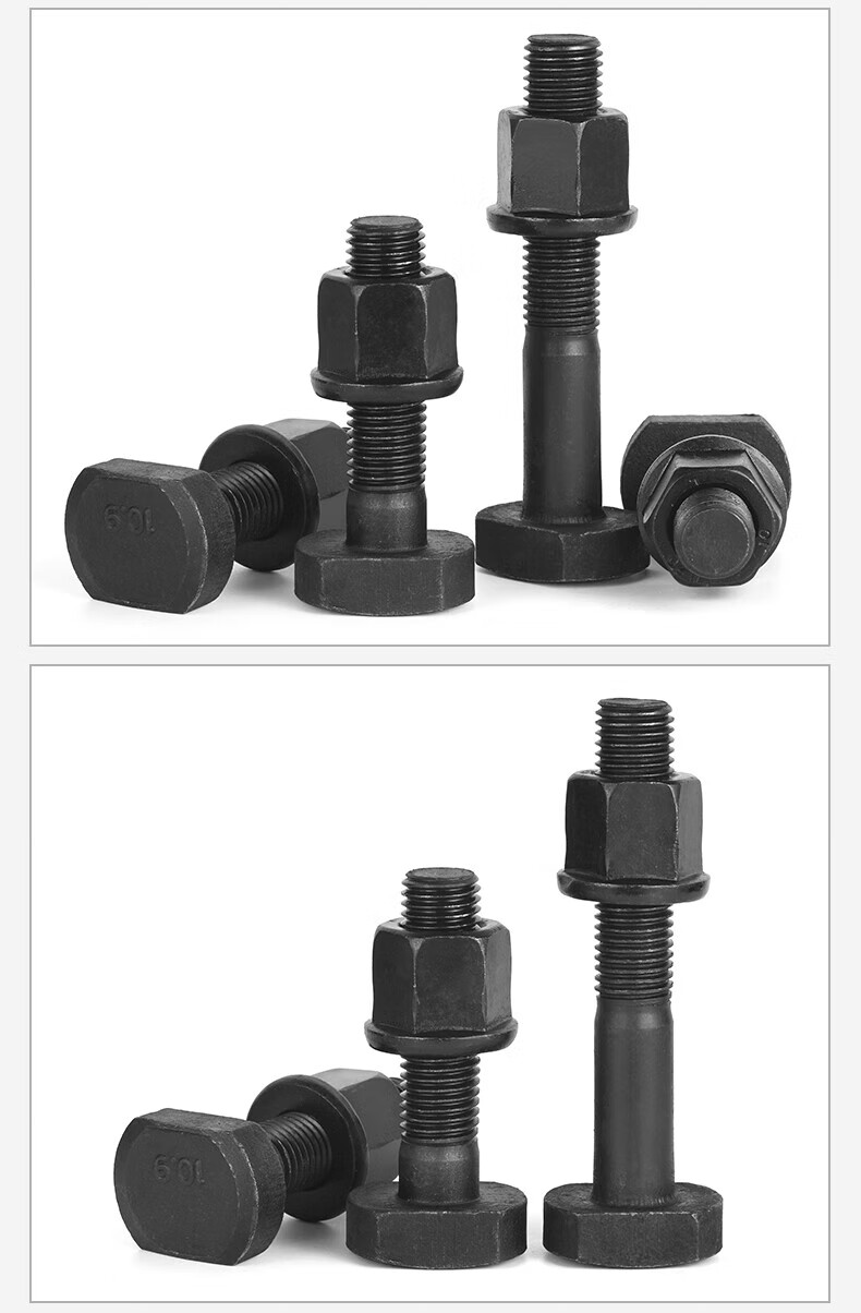 JINGGONG Grade 10.9 High Strength Blackened T-type Pressure Plate Screw Nut Flange Nut Set T-type Bolt Flange Female Assemblage M18*250 Half Thread (1 Set) Grade 10.9