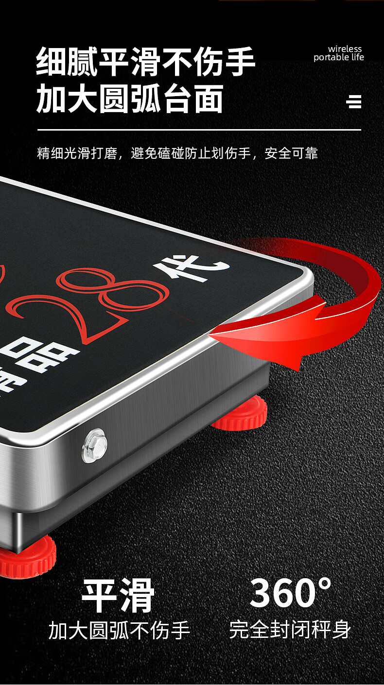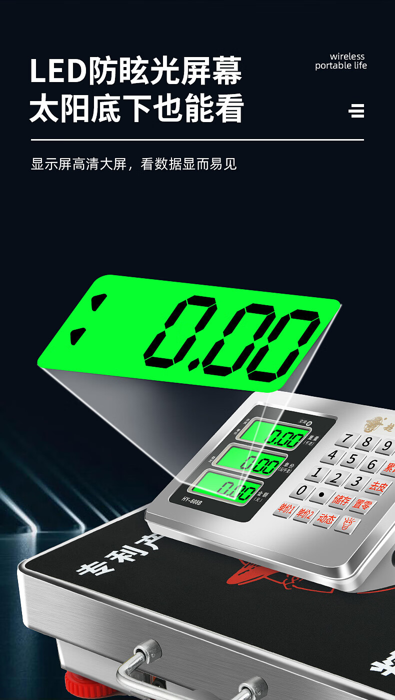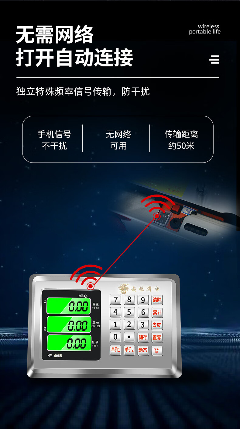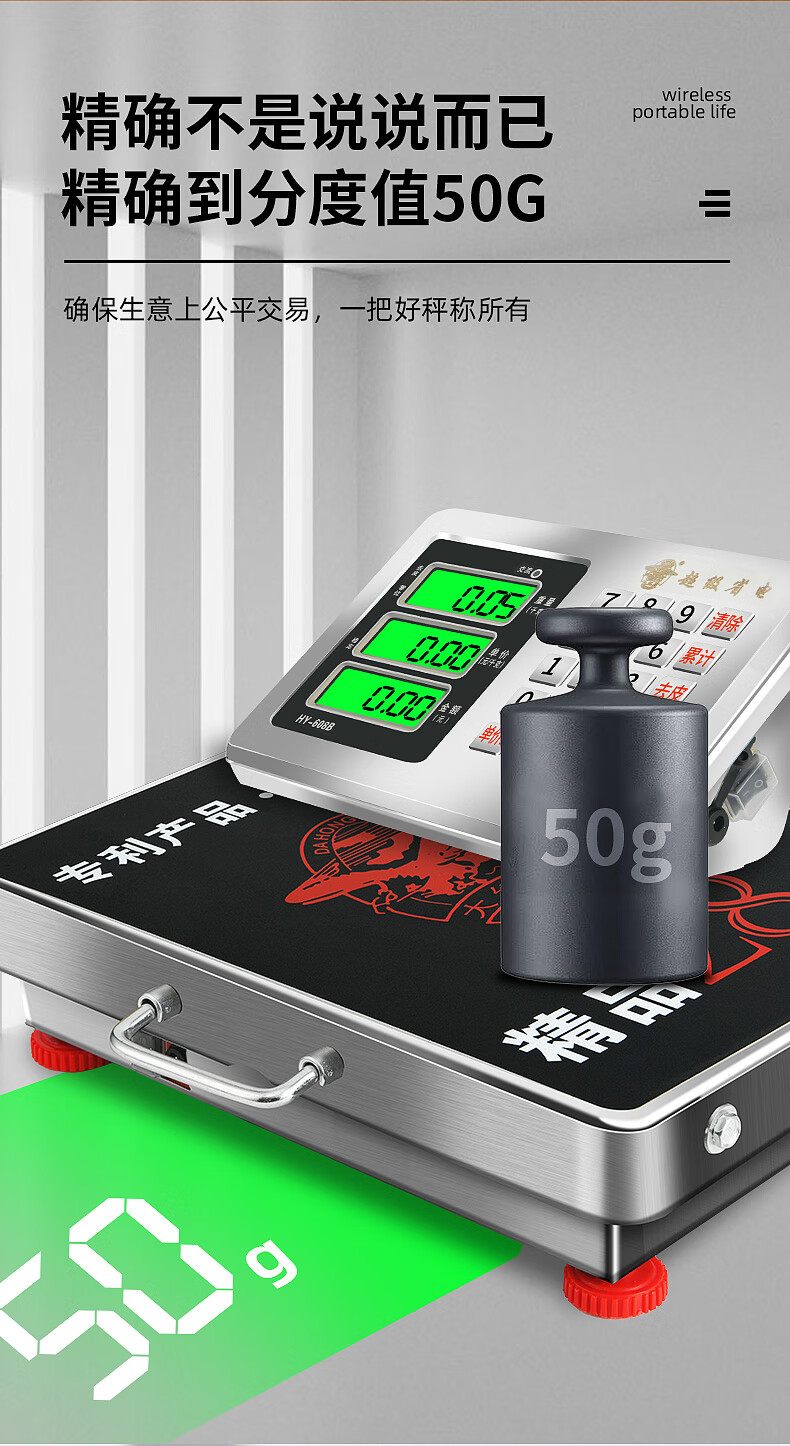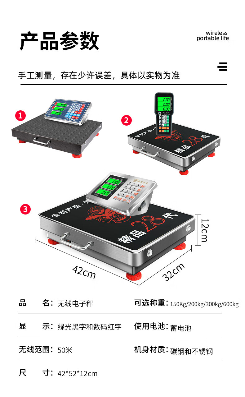Portable wireless electronic scale 200KG platform scale 300KG grain collection scale portable mobile 600kg pricing scale 600KG 52x62cm carbon steel countertop with black characters