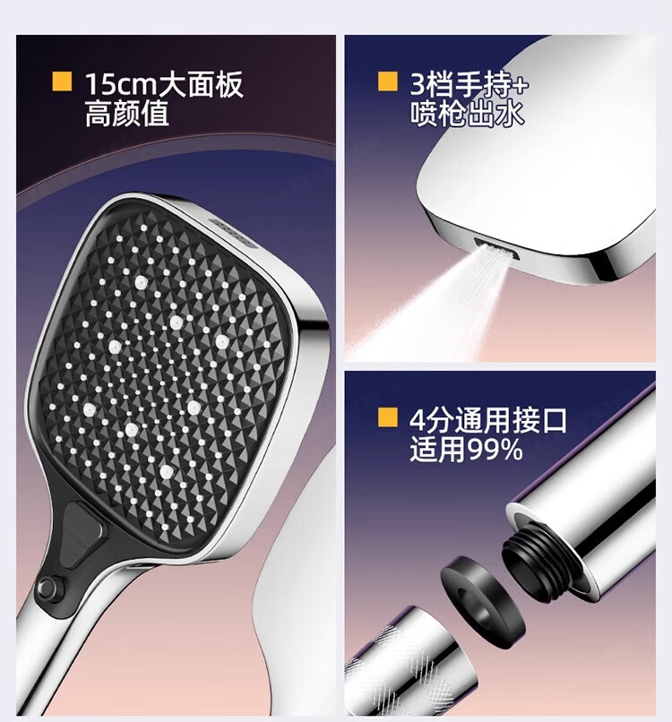 Jiayun Super Supercharged Shower Head Home Bathroom Shower Bath Faucet Large Water Output Rain Shower Head Gray Set of 2 15cm Extra Large Panel Supercharged Shower + Bracket