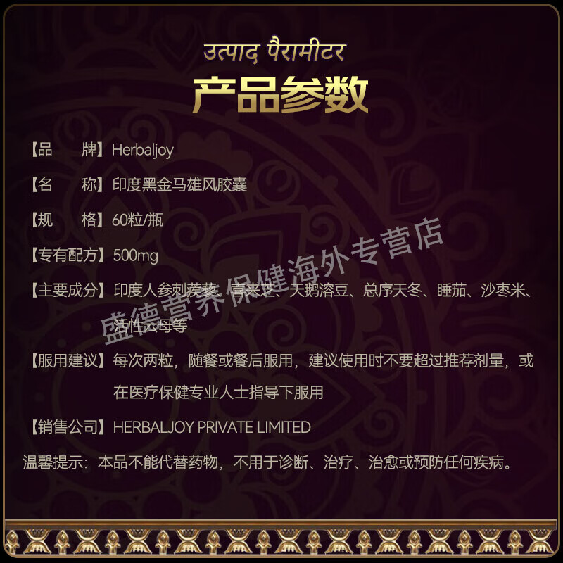 HerbalJoy India imported black gold horse Xiongfeng men's health care products to nourish the kidneys and strengthen the yang, testosterone and male hormones 1 box, deep kidney conditioning, 60 capsules* box