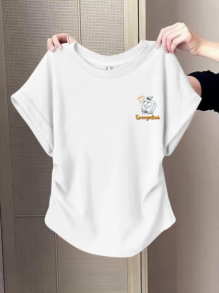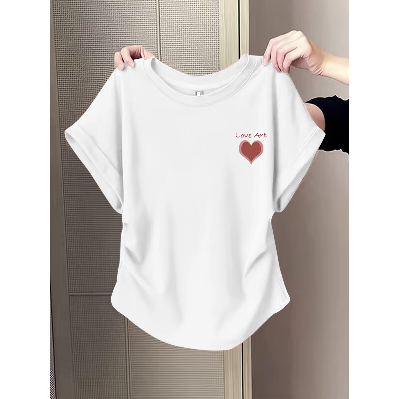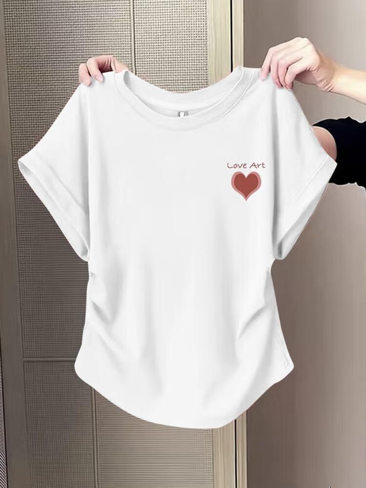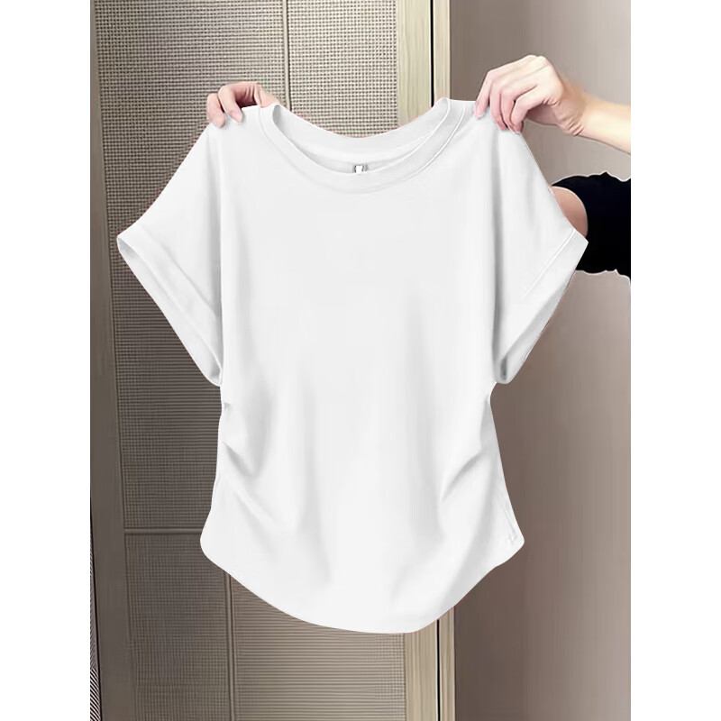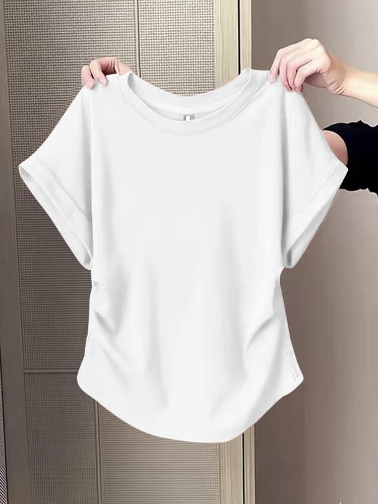Waist slimming small flying sleeves t-shirt for women 2025 new summer bottoming shirt short-sleeved round neck curved hem top pink L recommended 101-120 catties