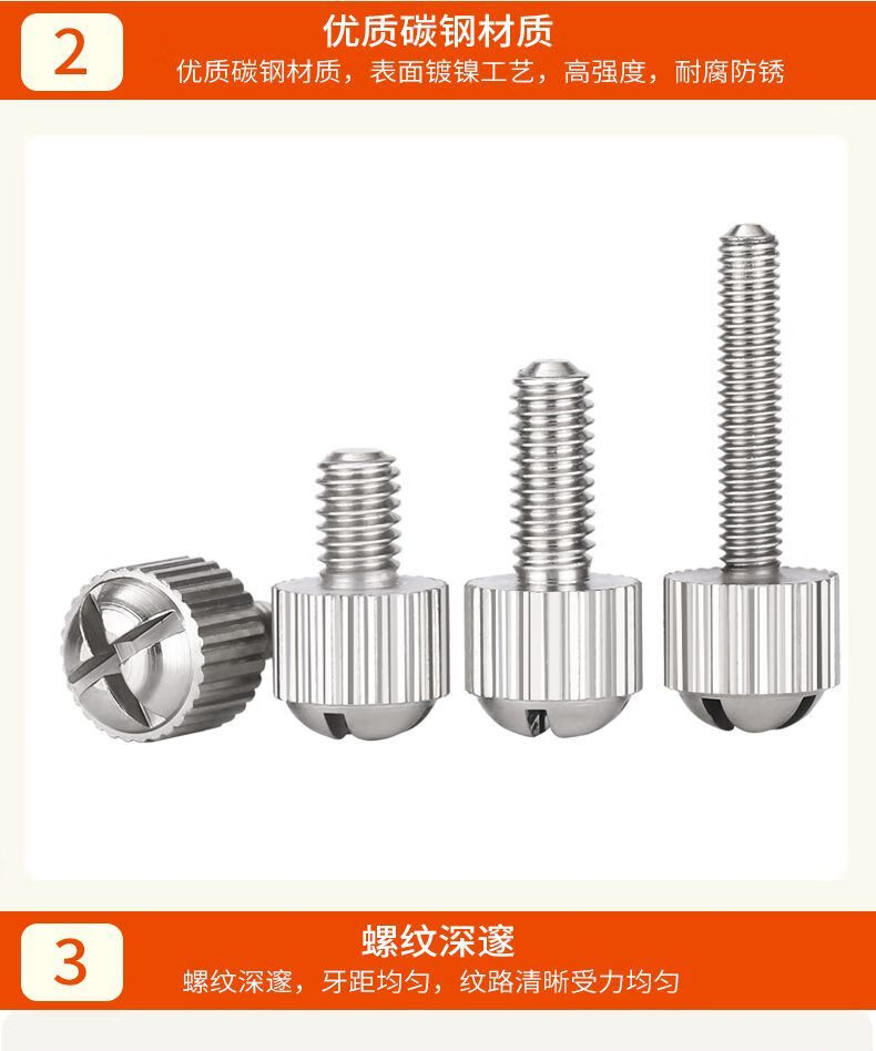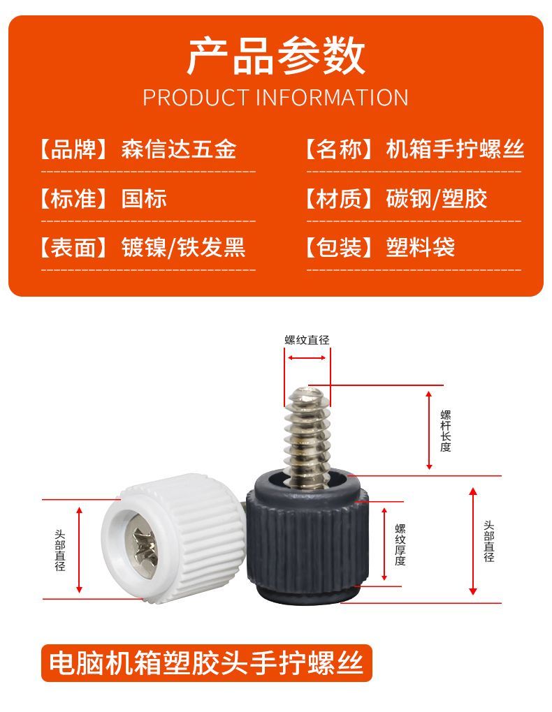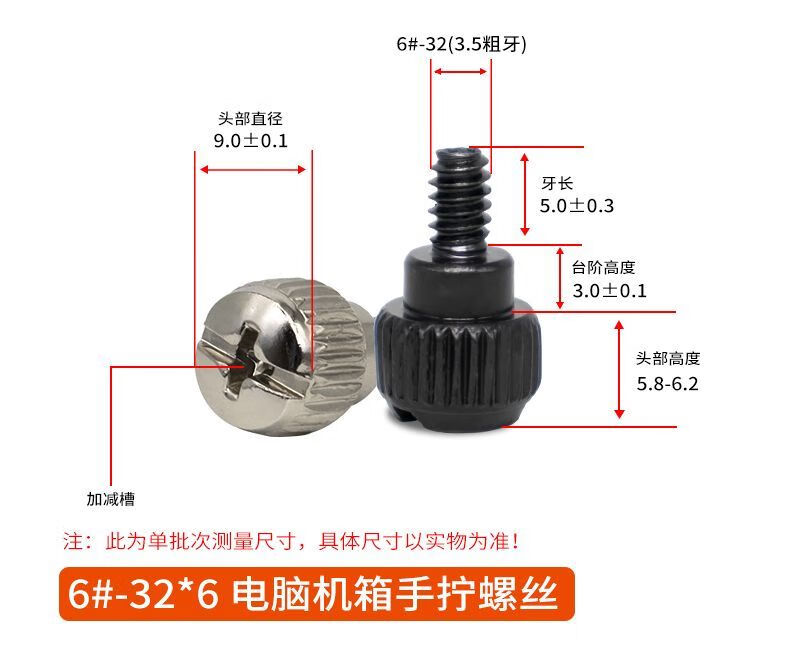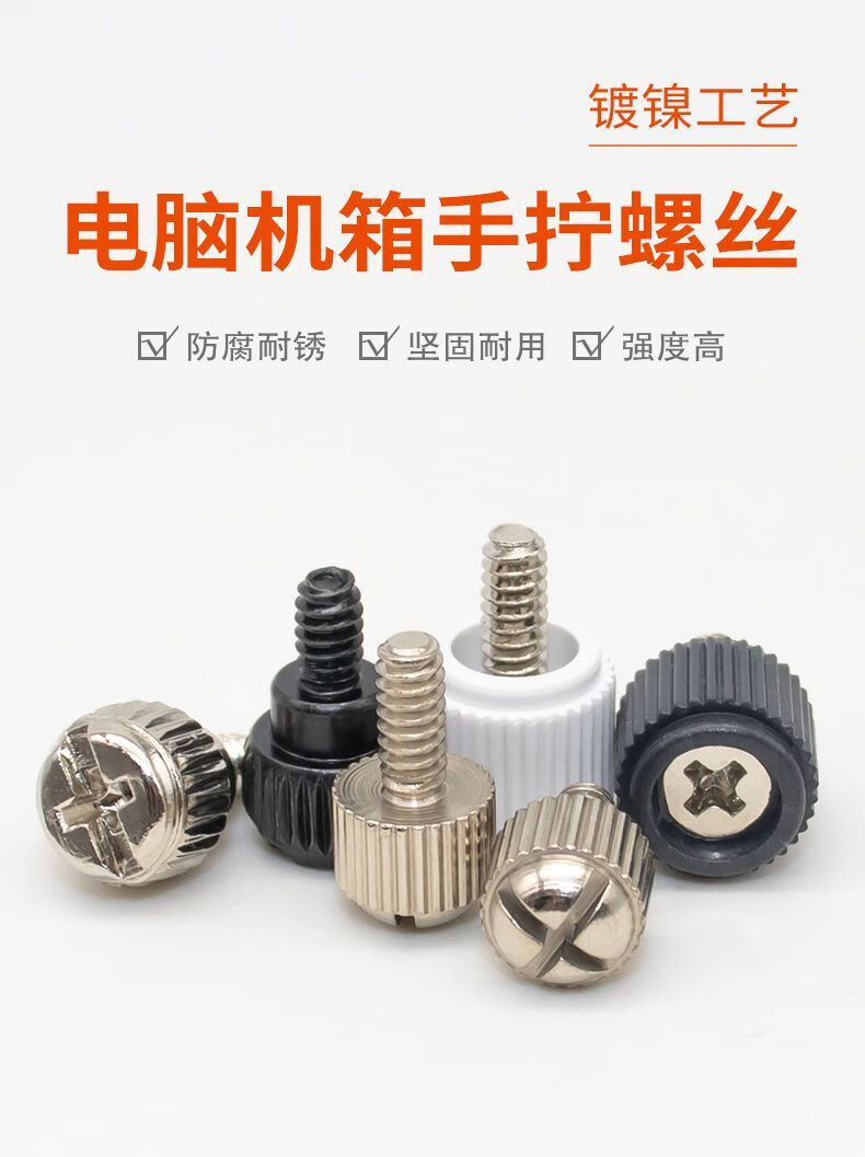 NAOISKEY 95 desktop computer case side panel thumb screws 3.5-inch coarse tooth side transparent glass cover fixing screws universal 6#-32*6 black plastic thumb screws 4 pieces