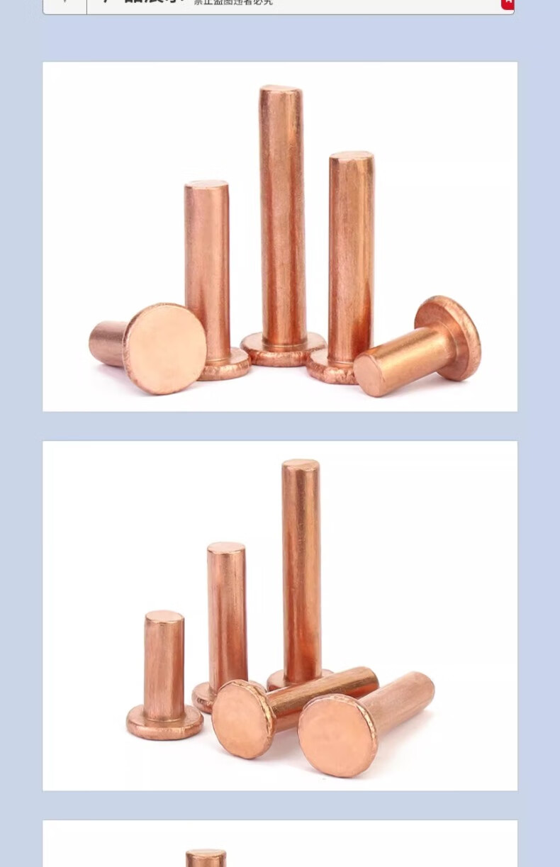 Gold super copper flat head solid rivets pure copper solid rivets flat head copper rivets M2M2.5M3M4M5M6M8 M8*30 (2 pieces)