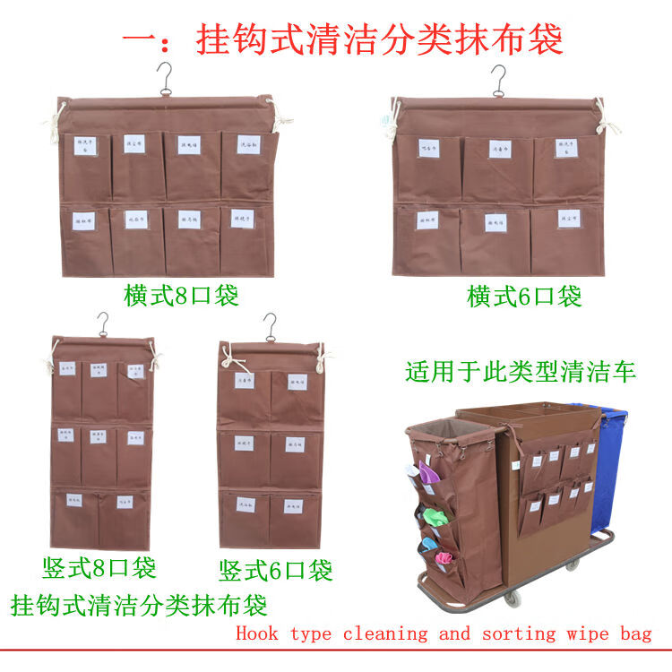 AIBODUO linen bag hanging storage bag miscellaneous bag work cart rag bag hanging bag cleaning cart linen cart classification rag bag hook with stick horizontal 6-port classification rag bag style