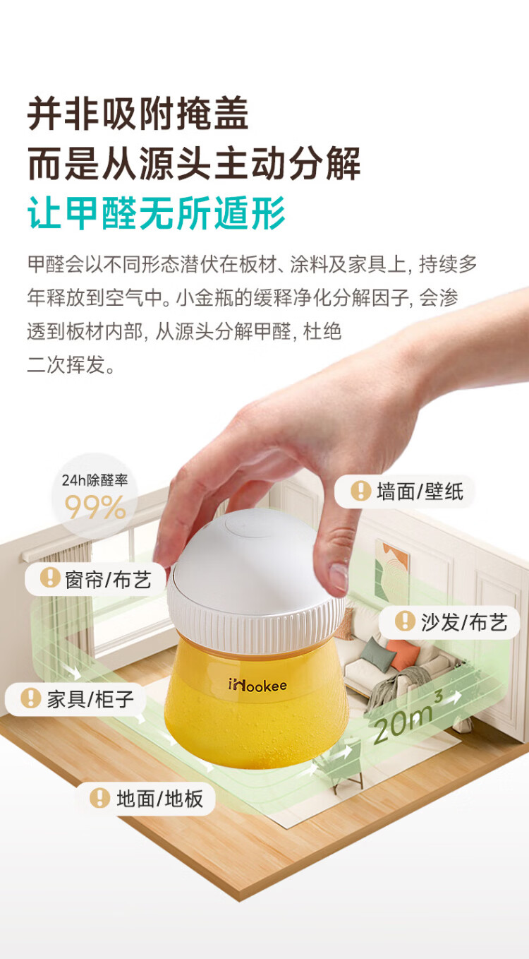 Breathing Declaration Small Golden Bottle air purification, inactivation of germs, sterilization, deodorization, maternal and infant decomposition, formaldehyde removal, non-activated carbon for new homes, 24H formaldehyde removal rate 99% | 120 days of continuous formaldehyde removal