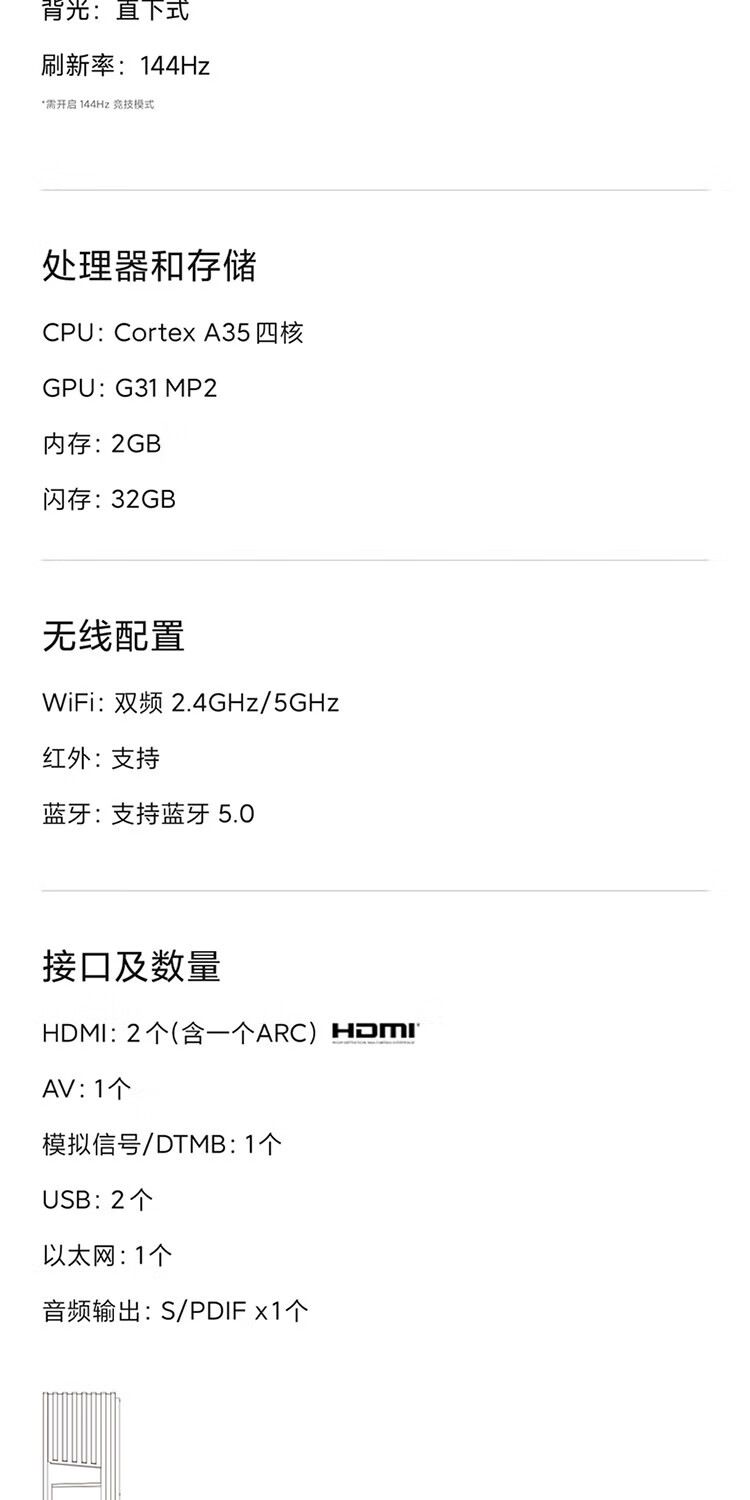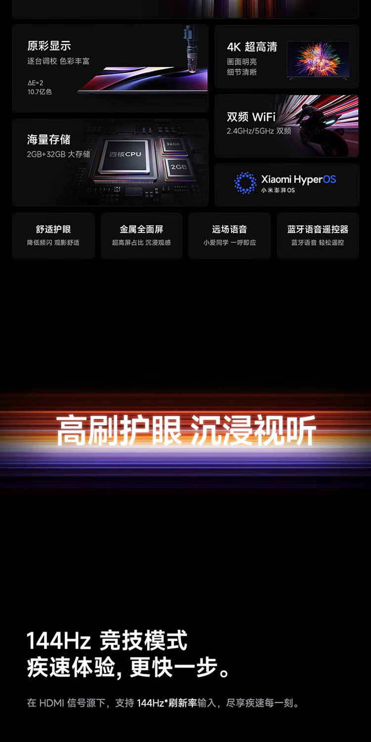 Xiaomi (MI) TV 75-inch, first-class energy efficiency, 144Hz high refresh rate, 2GB+32GB, Redmi A75 2025 energy-saving version, 75-inch, Redmi A75-inch+ door installation