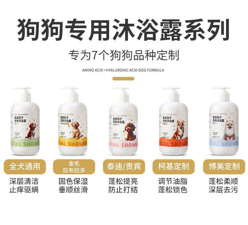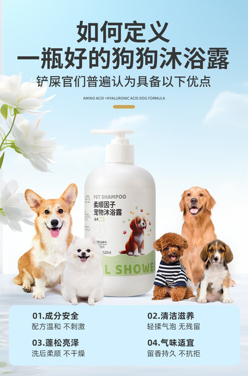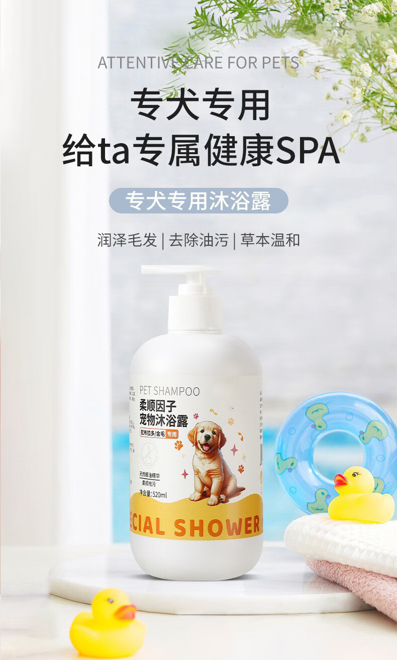 Dog shower gel, sterilizing, deodorizing, long-lasting fragrance, Teddy panda cat bath, special shampoo and bath for pets, 520ml1 bottle, universal for all dogs, coconut oil shower gel, no specifications