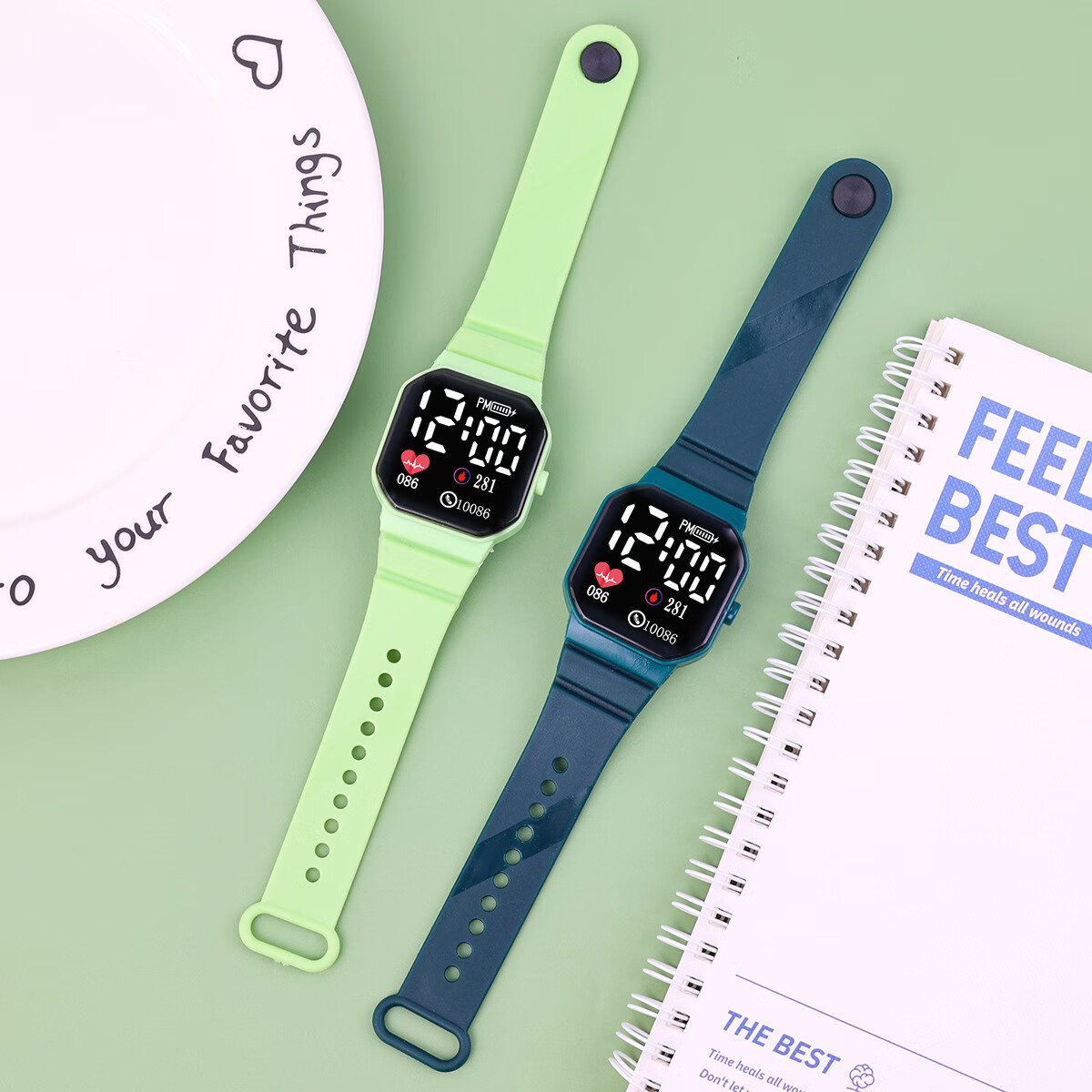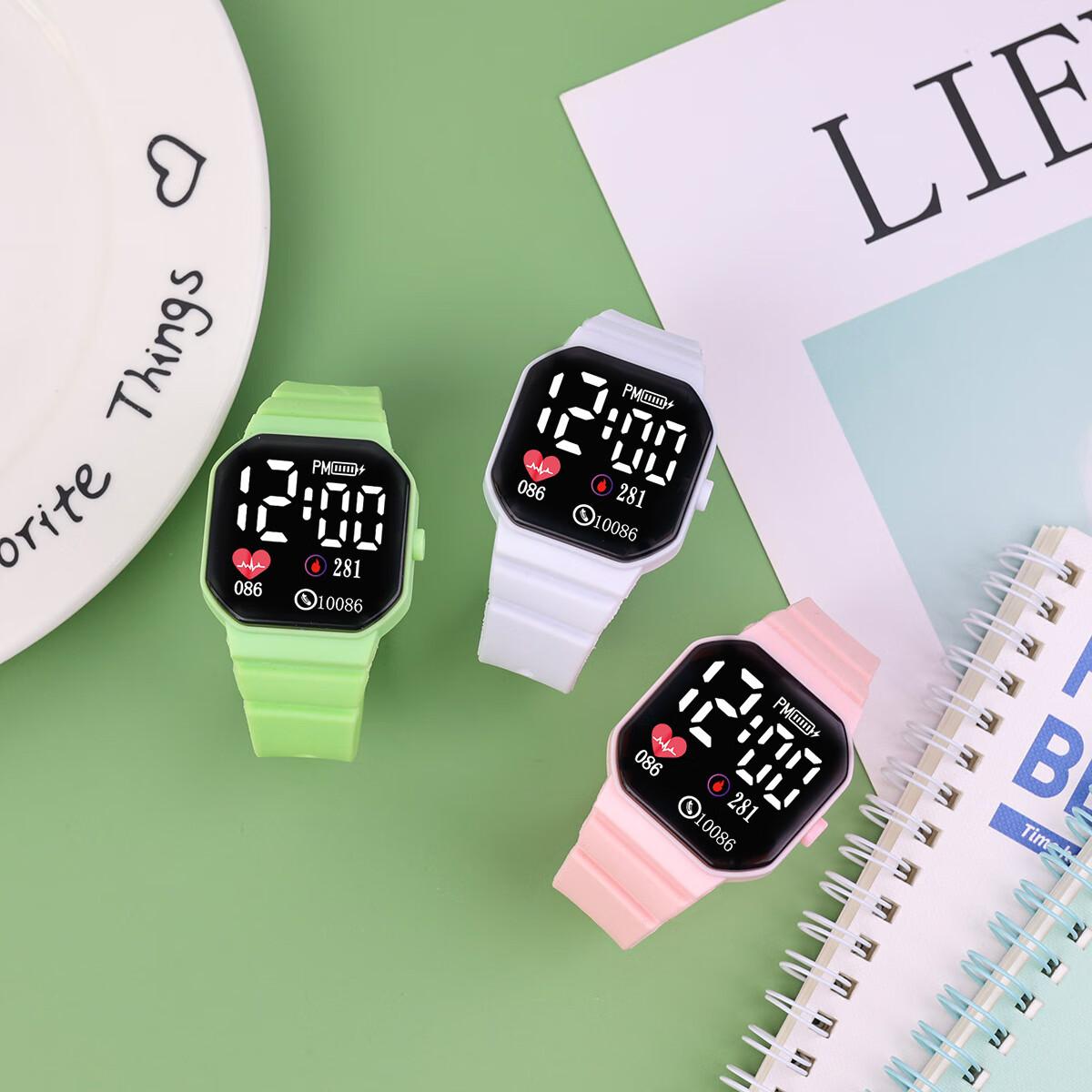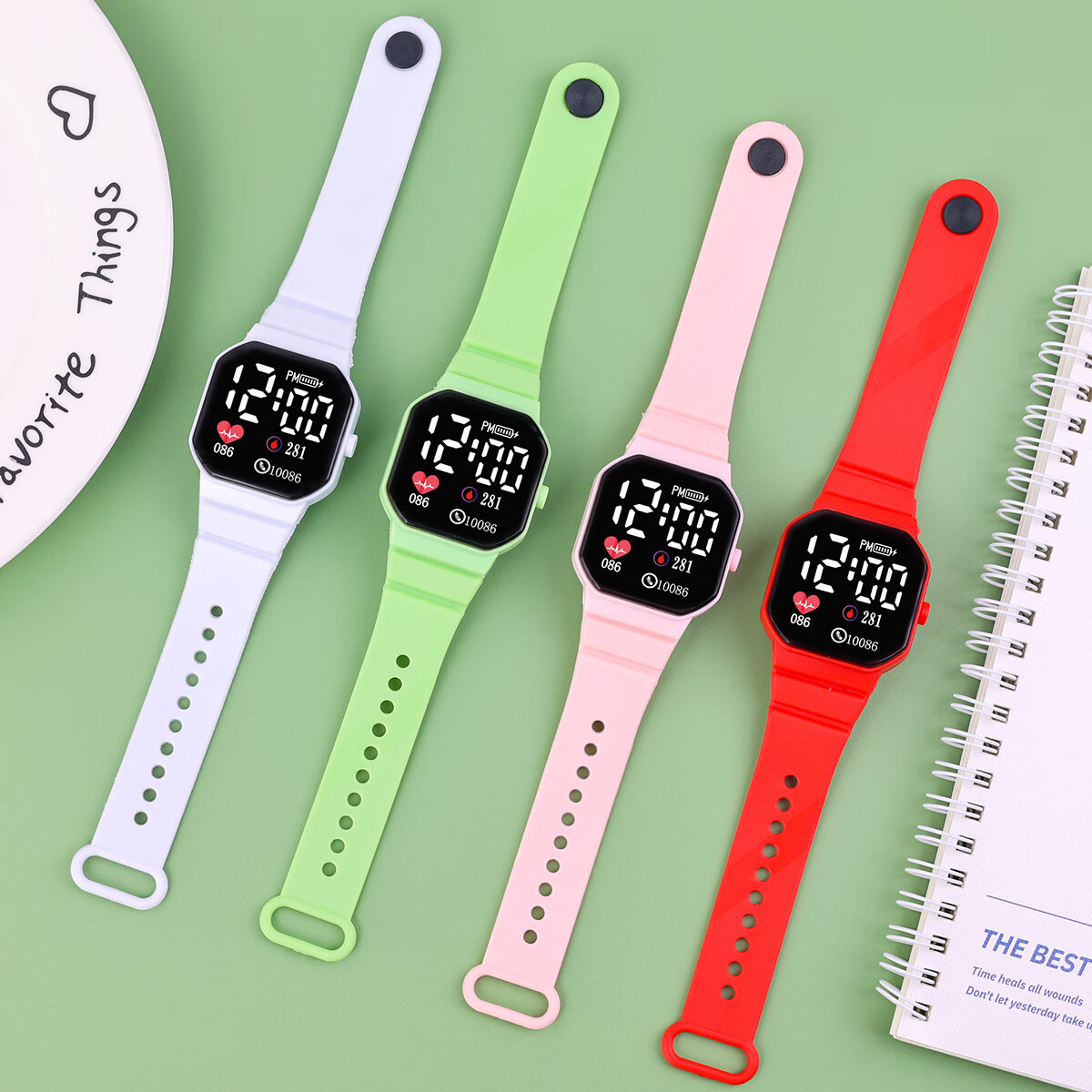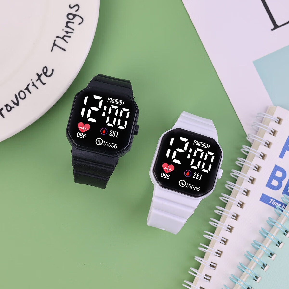 Hot-selling cool student party Korean version forest sports love square LED electronic watch ins junior high school student female J31 black