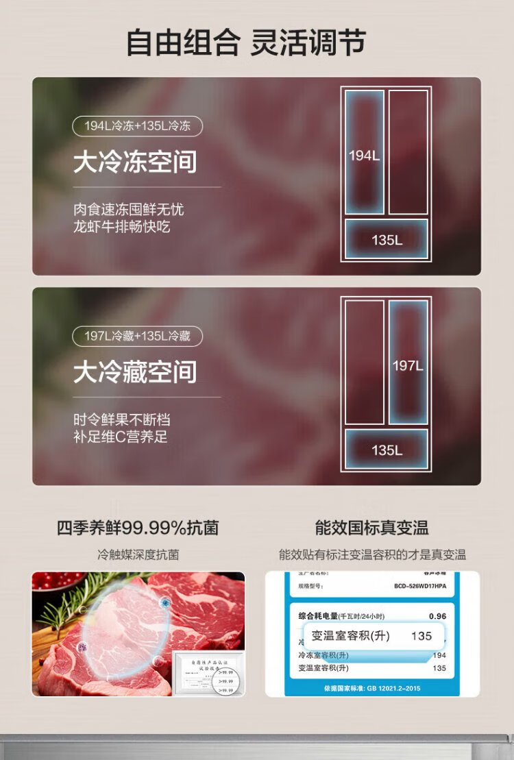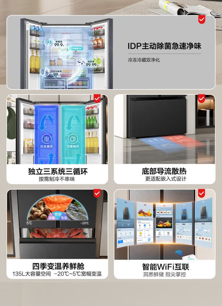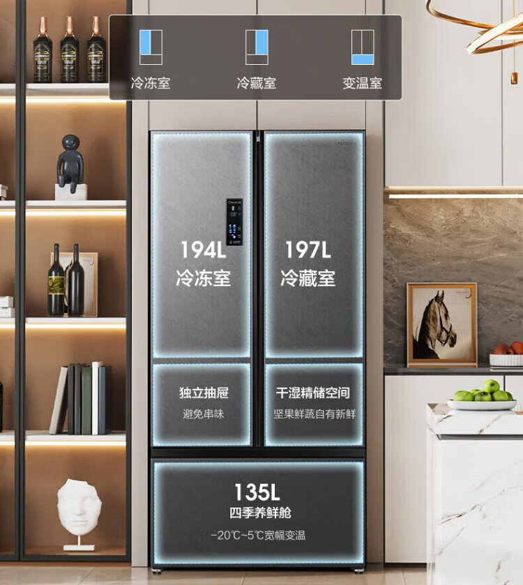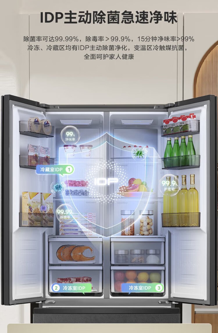 Rongsheng 541 active sterilization dual system French three-door built-in refrigerator first-class energy efficiency household refrigerator trade-in BCD-541P50FZLAK