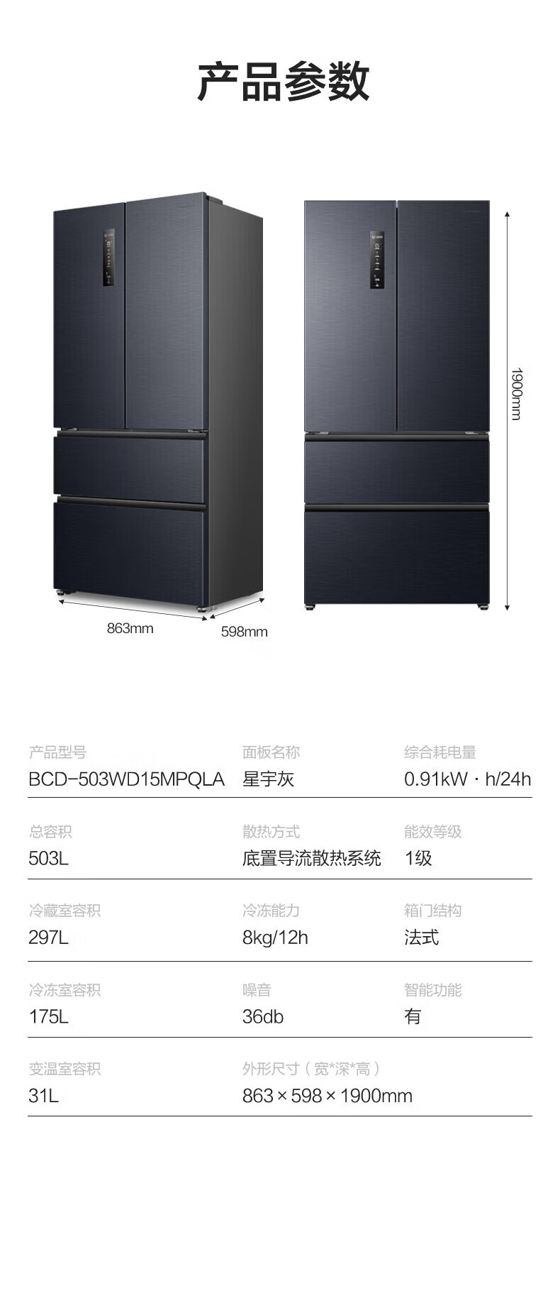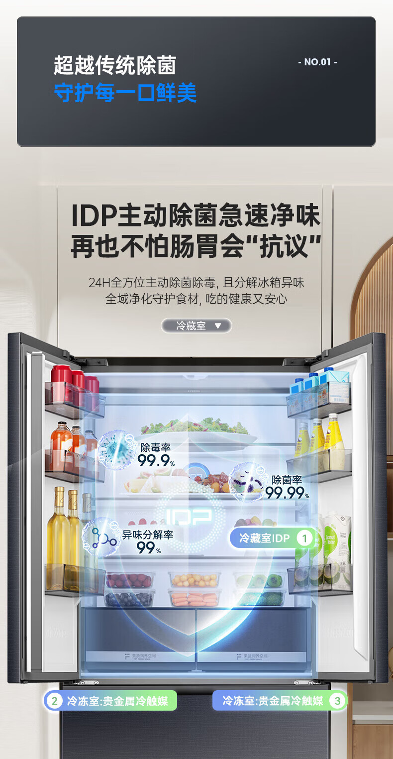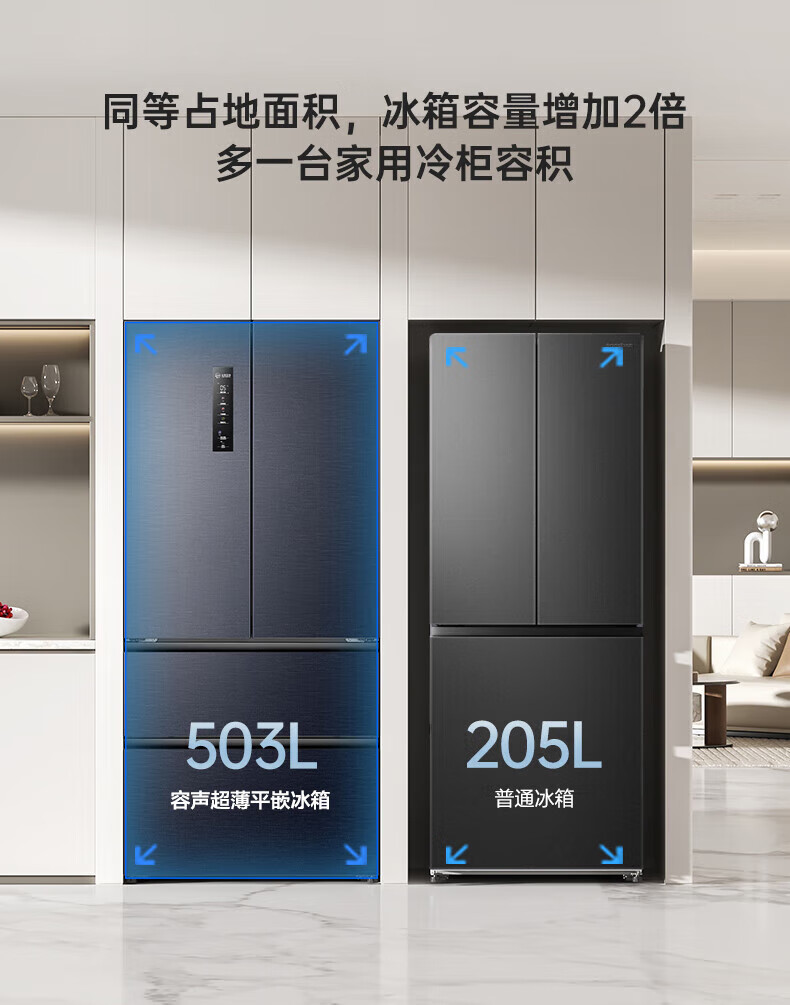 Rongsheng IDP pure flavor 503L French style multi-door refrigerator BCD-503WD15MPQLA pro model active sterilization embedded first-level energy efficiency air-cooled frost-free large capacity three-pack machine with slight defects