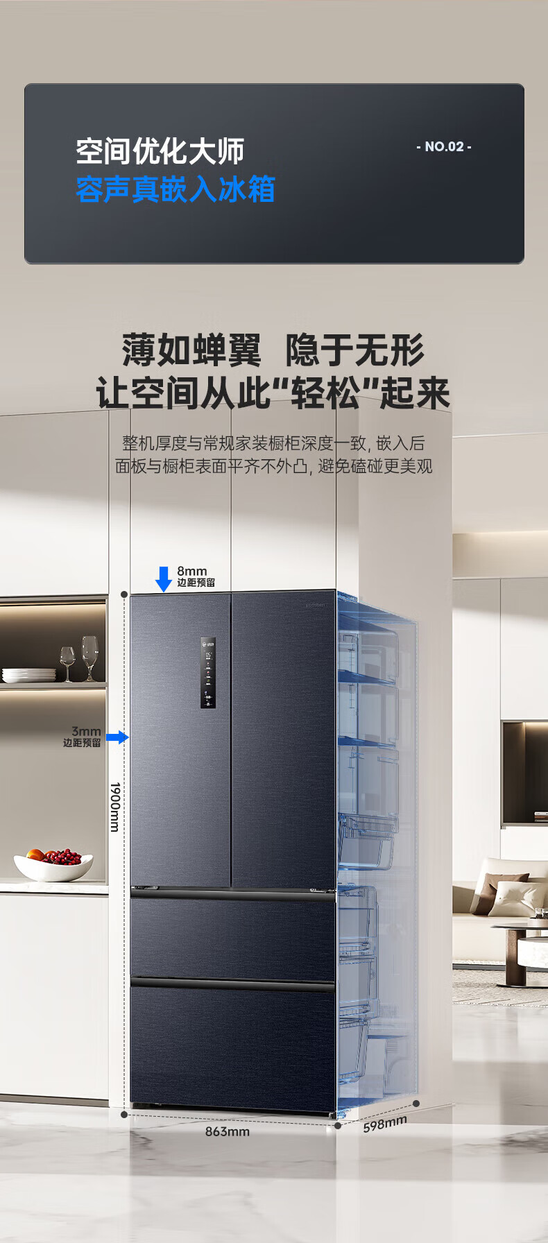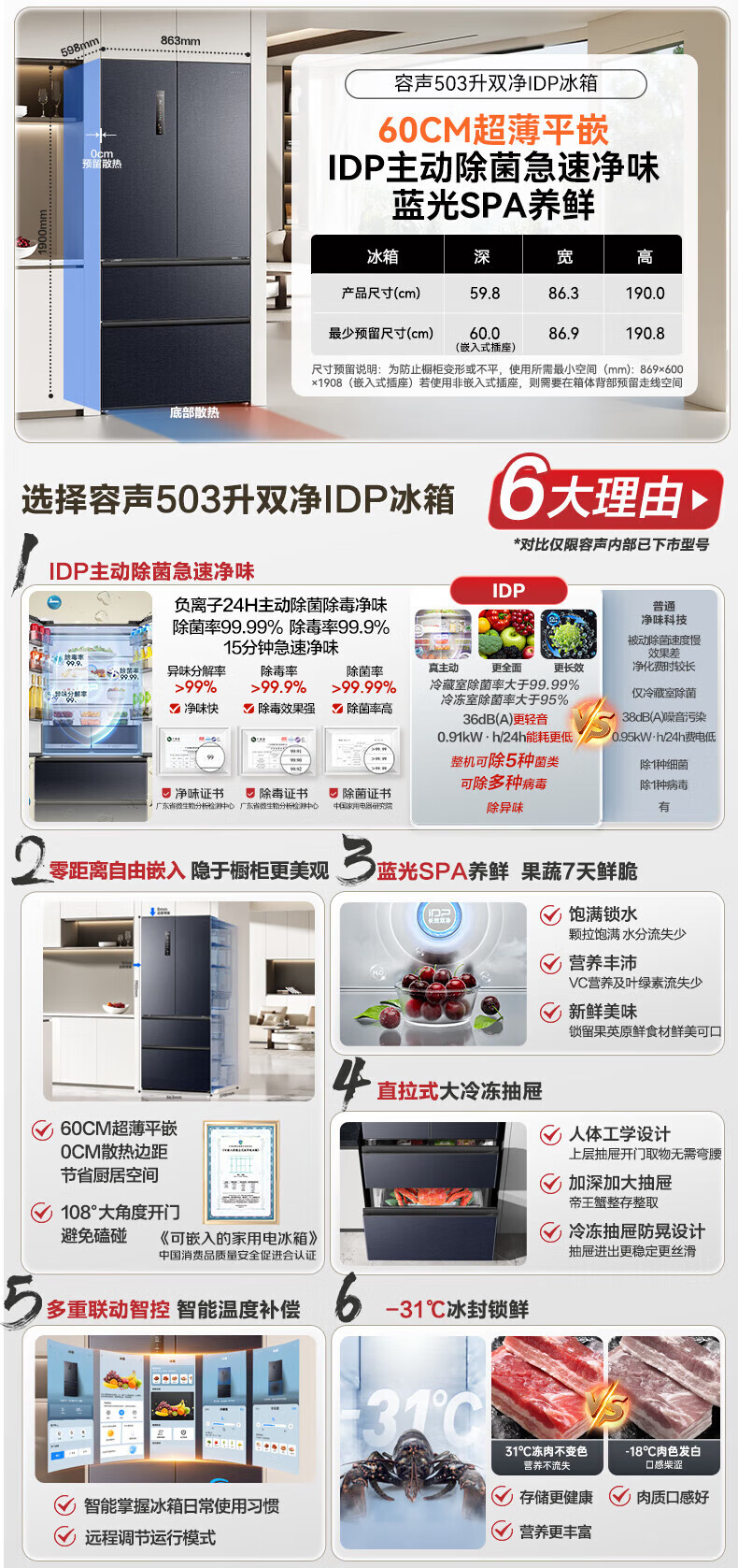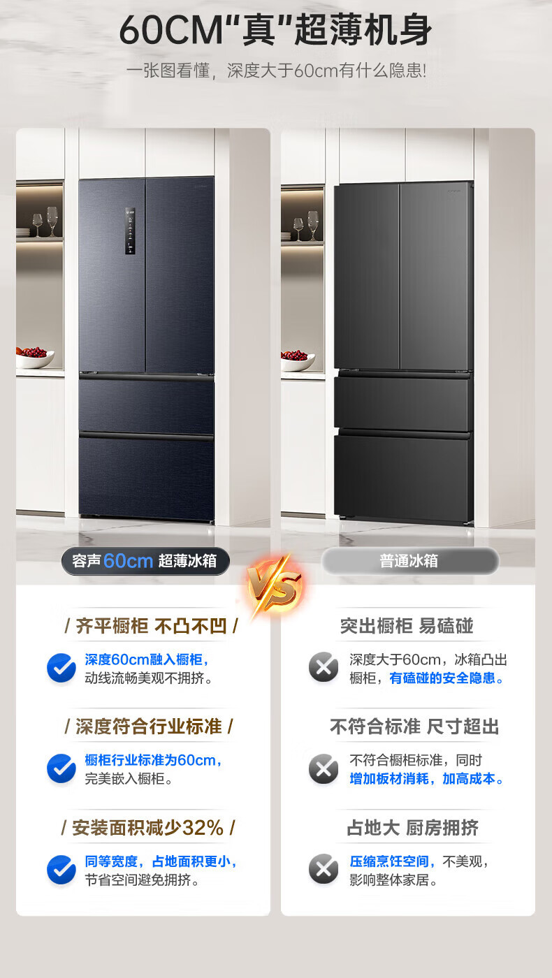 Rongsheng IDP pure flavor 503L French style multi-door refrigerator BCD-503WD15MPQLA pro model active sterilization embedded first-level energy efficiency air-cooled frost-free large capacity three-pack machine with slight defects