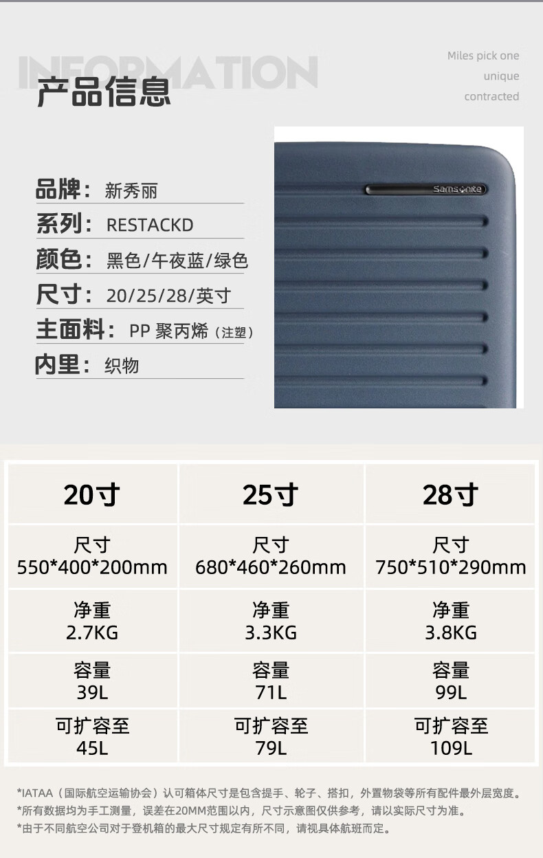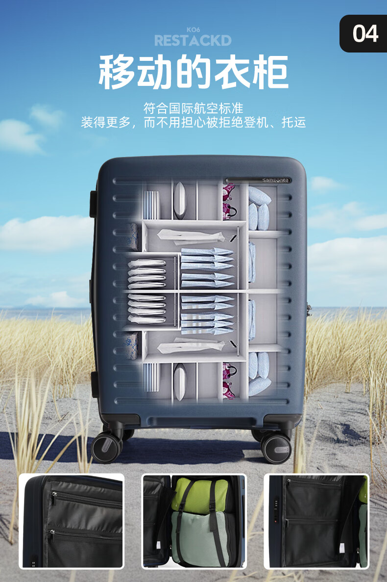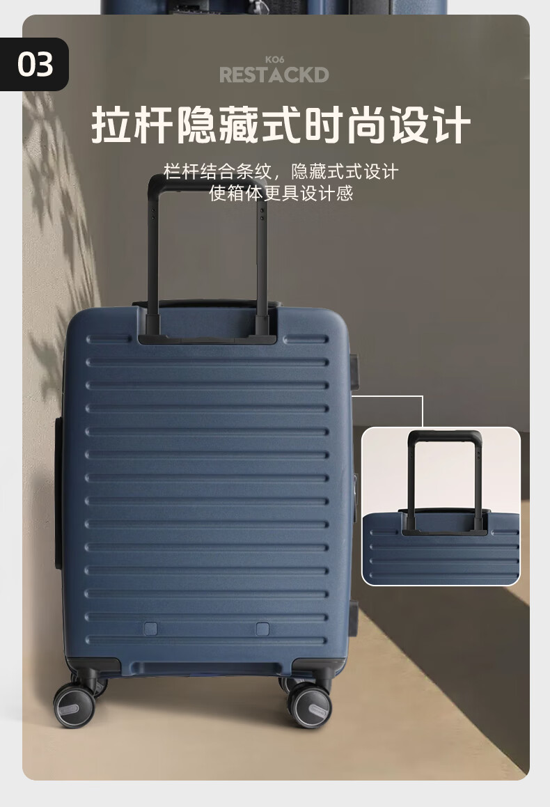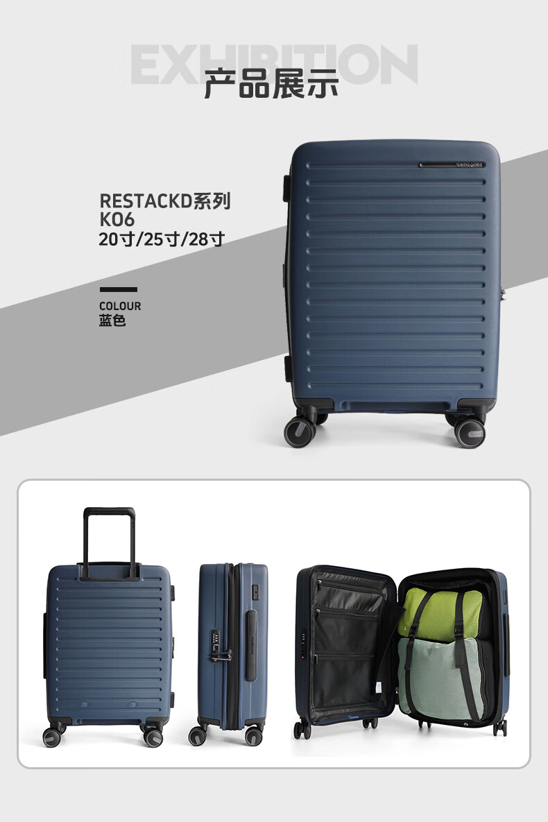 Samsonite's new trolley case RESTACK series KO6 striped suitcase, lightweight and wear-resistant boarding case, large capacity suitcase KO6 black 20 inches (expandable)