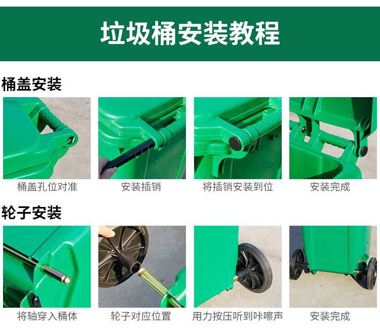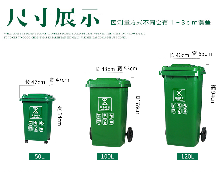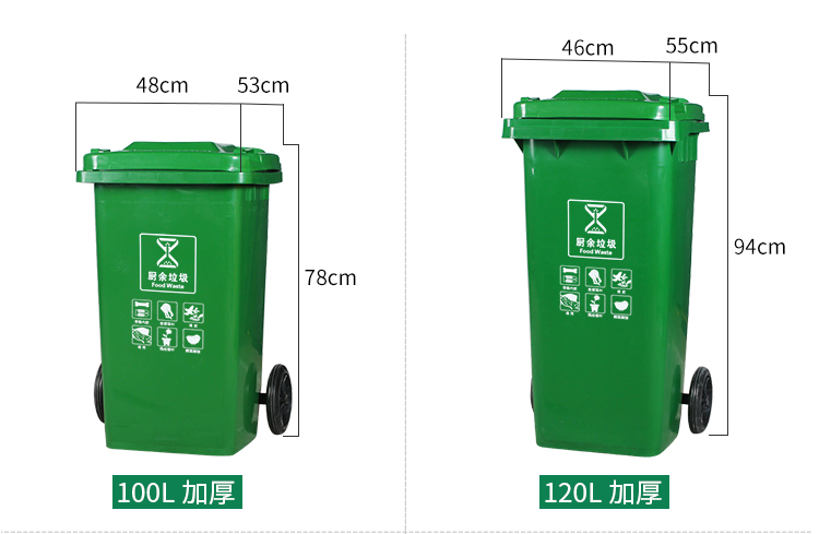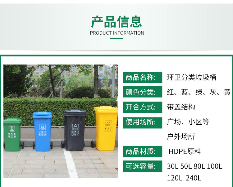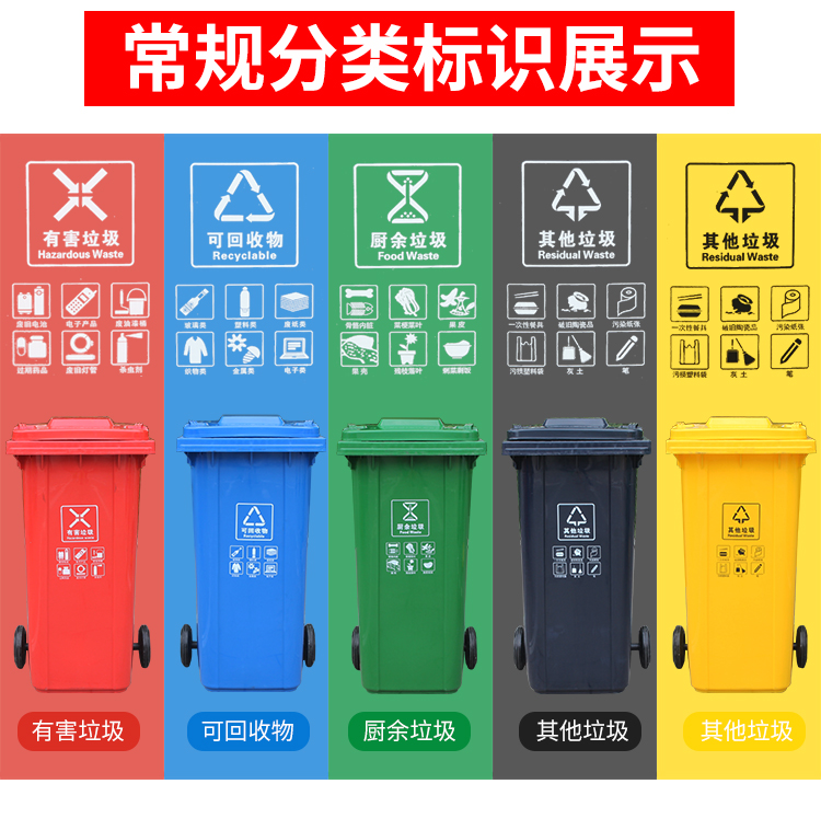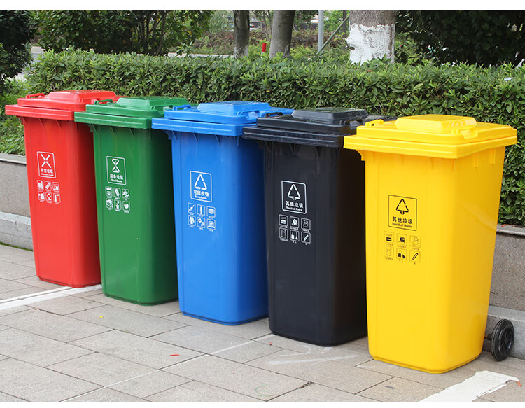 Yichen outdoor large capacity commercial trash can with lid large size classification trailer property community sanitation AA 30L thickened trash can wheel classification (note color