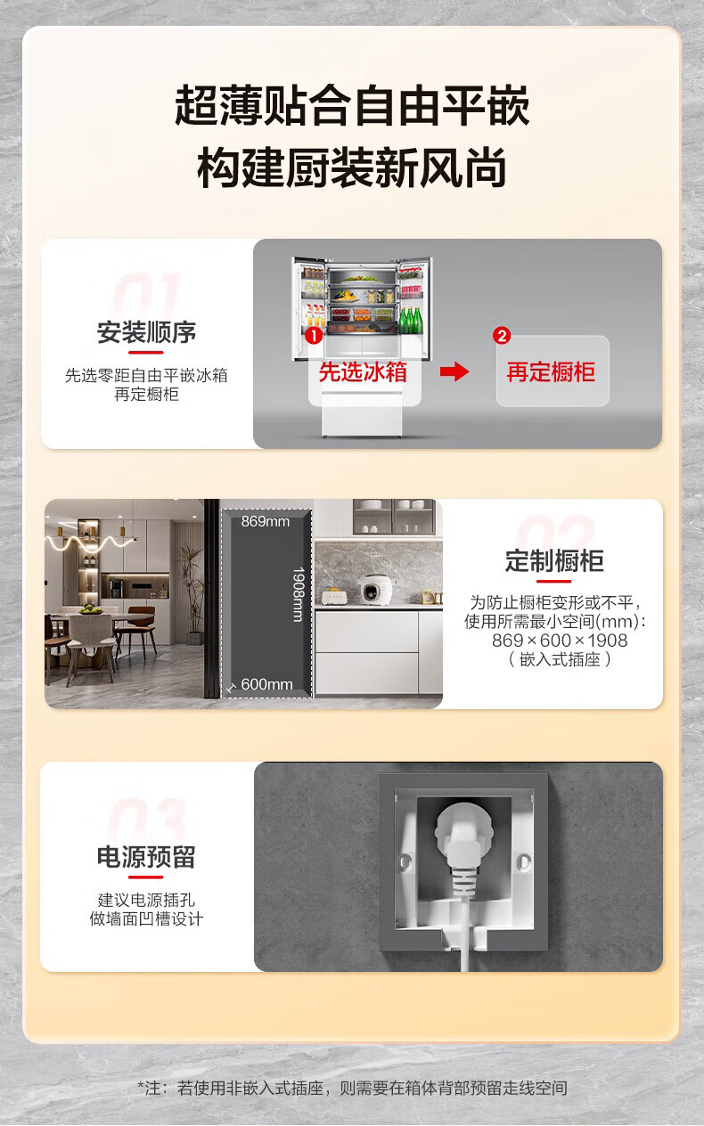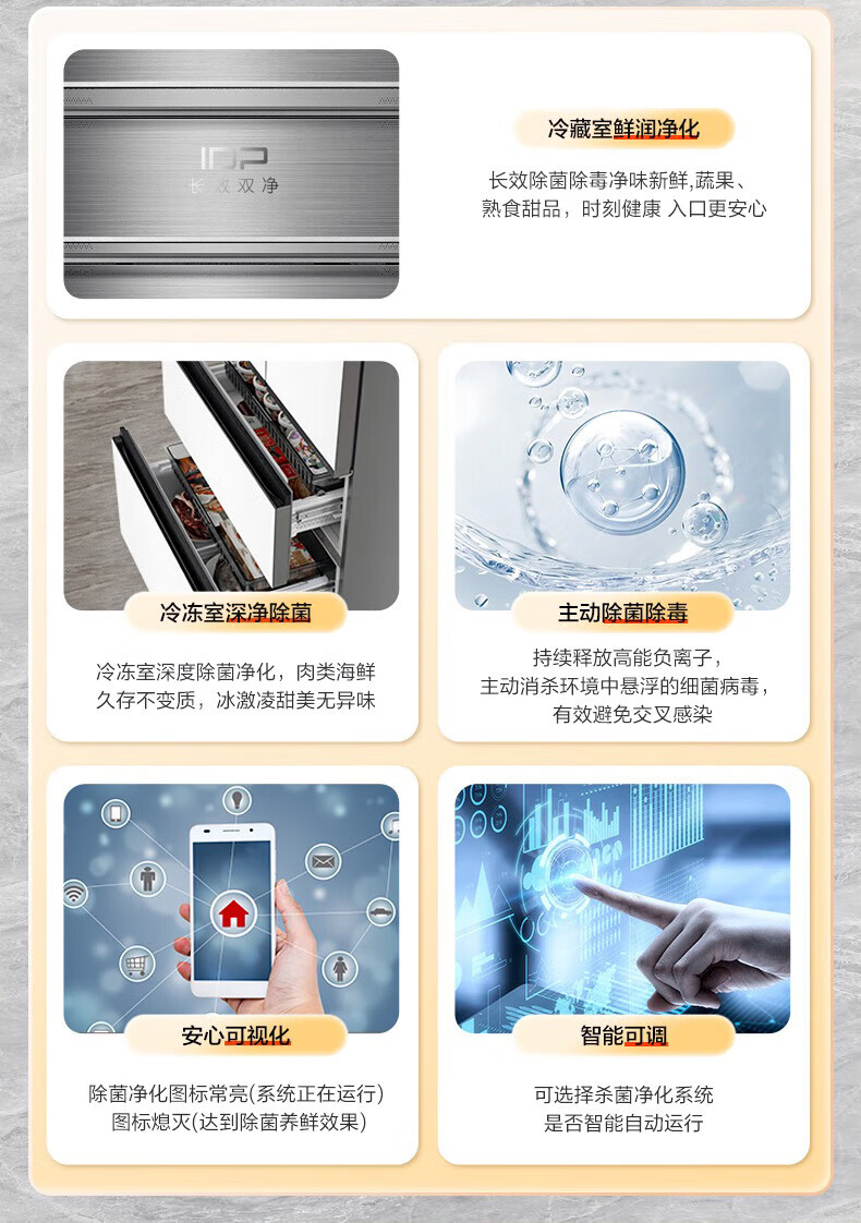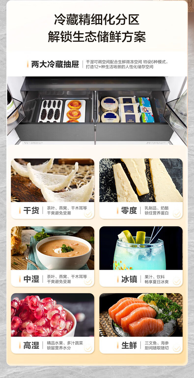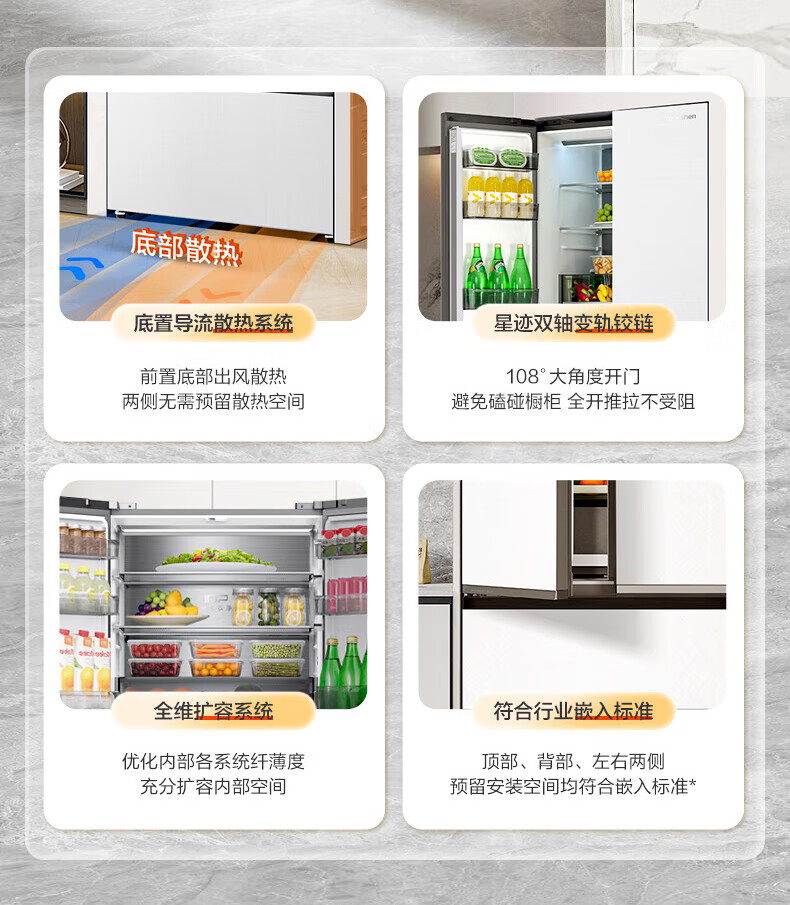 Rongsheng double-purified 517L French multi-door refrigerator BCD-517WD2MPQLA ultra-thin zero-embedded first-class energy efficiency air-cooled frost-free large-capacity active sterilization white three-pack machine Yashi white-slight defects