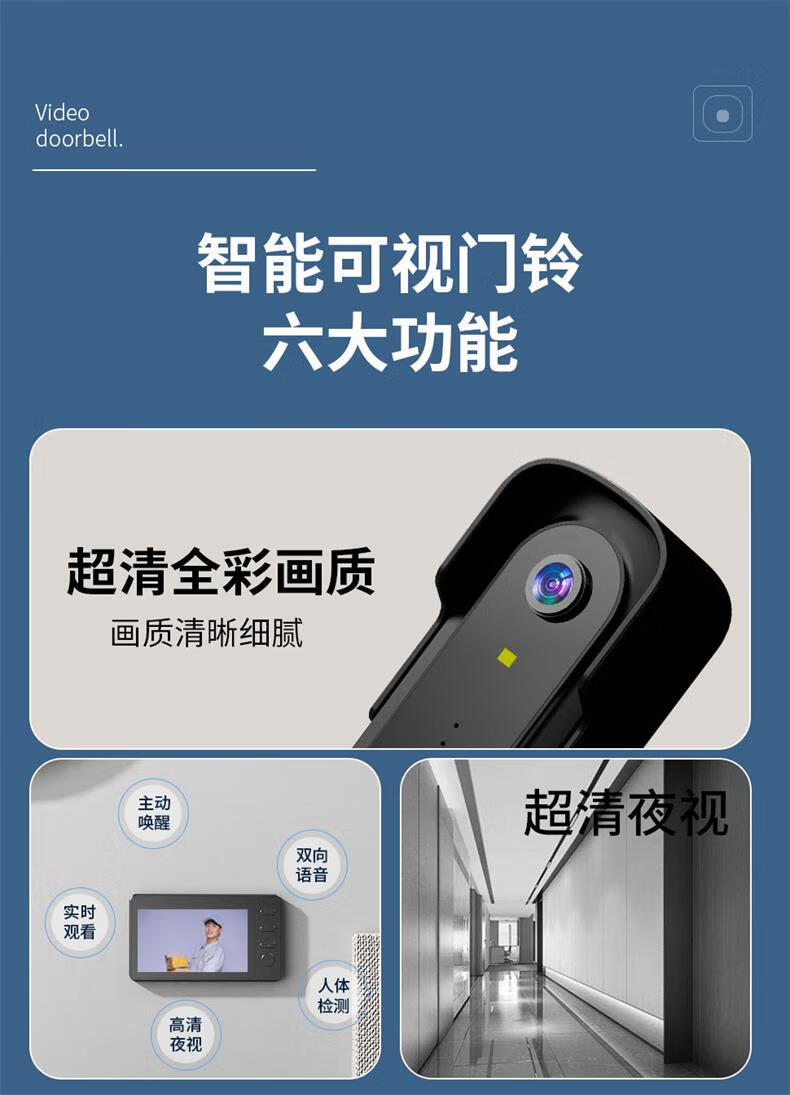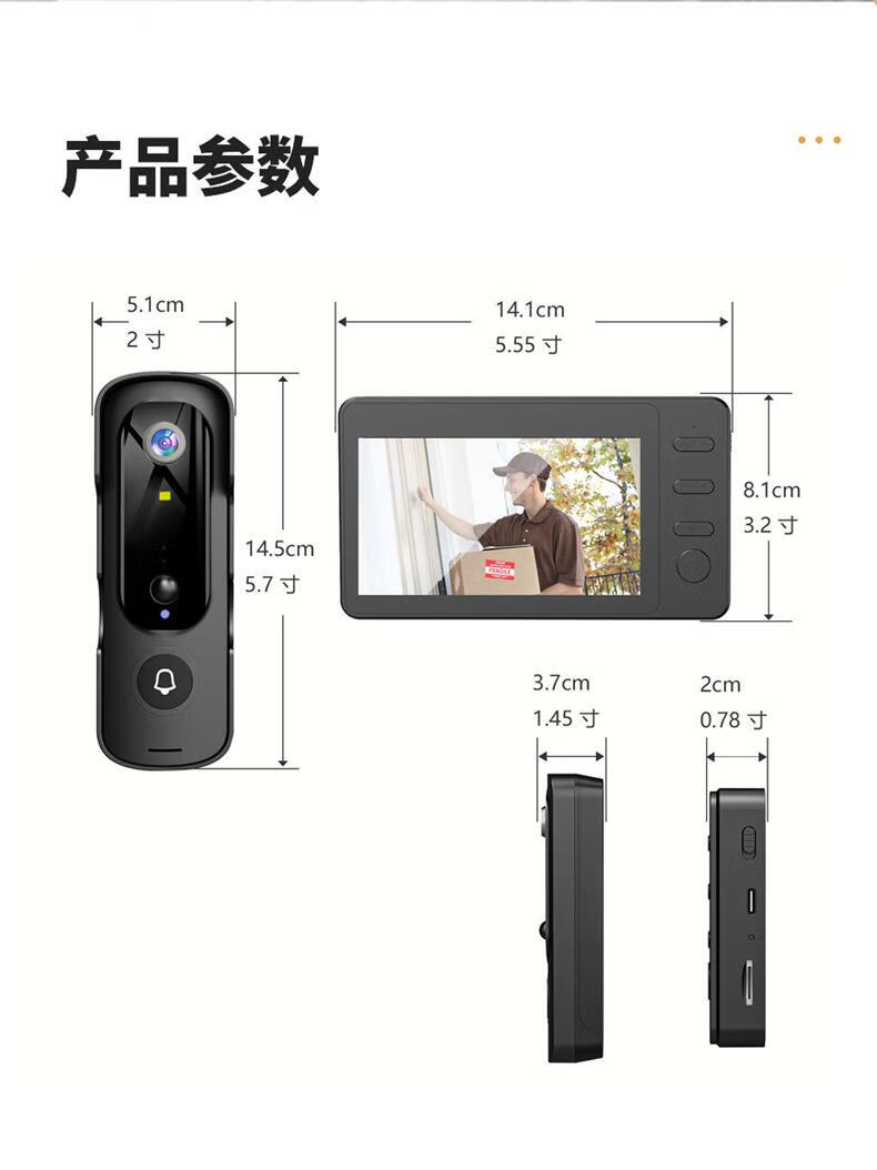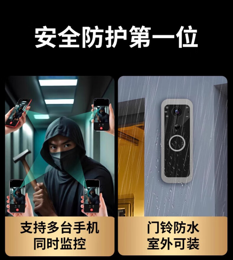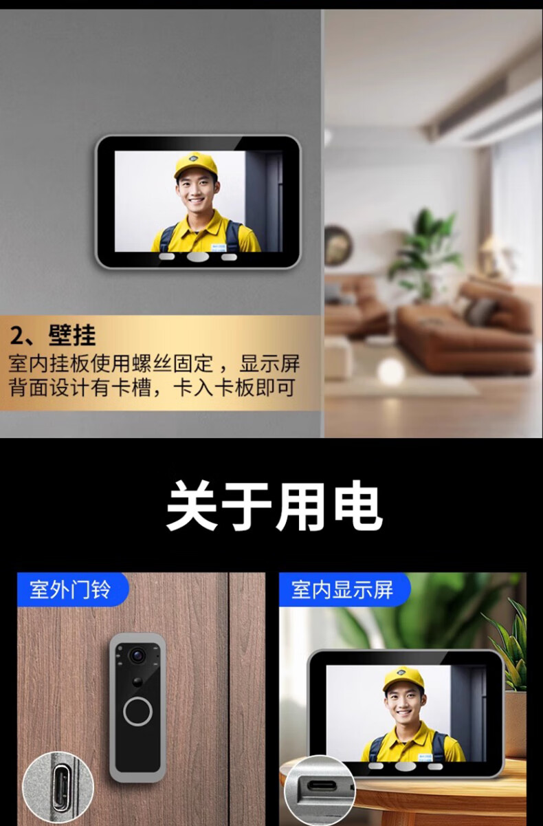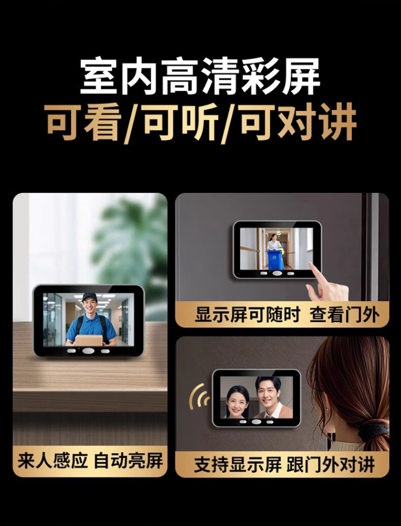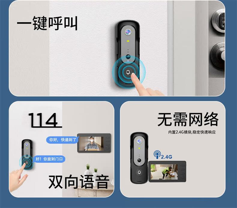 Tiger Butler wireless video doorbell with display, punch-free, home villa waterproof smart monitoring, anti-theft door camera, WIFI-free video intercom, ultra-long distance split electronic cat eye, basic model 4.3-inch screen + active door viewing, no memory card