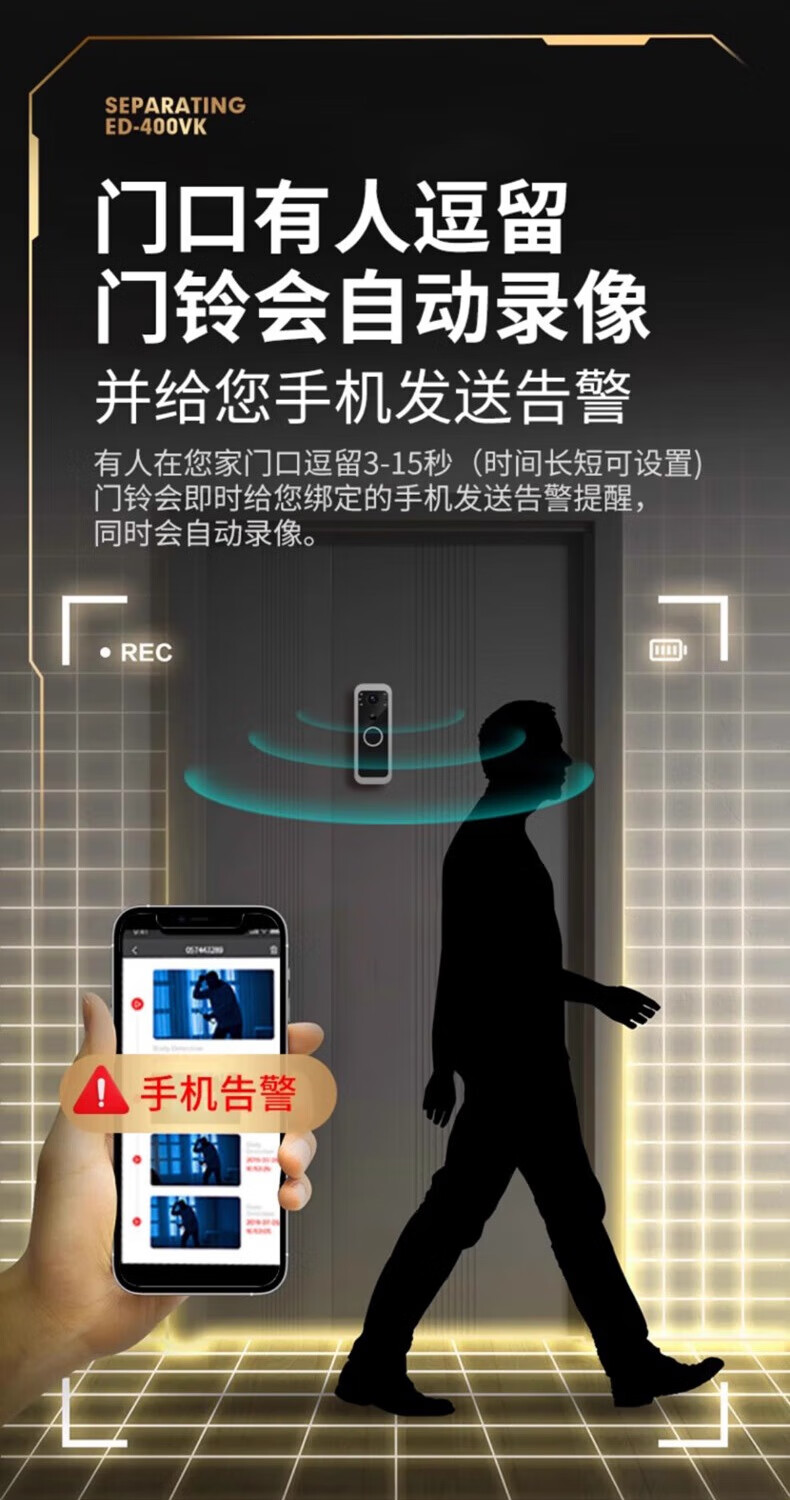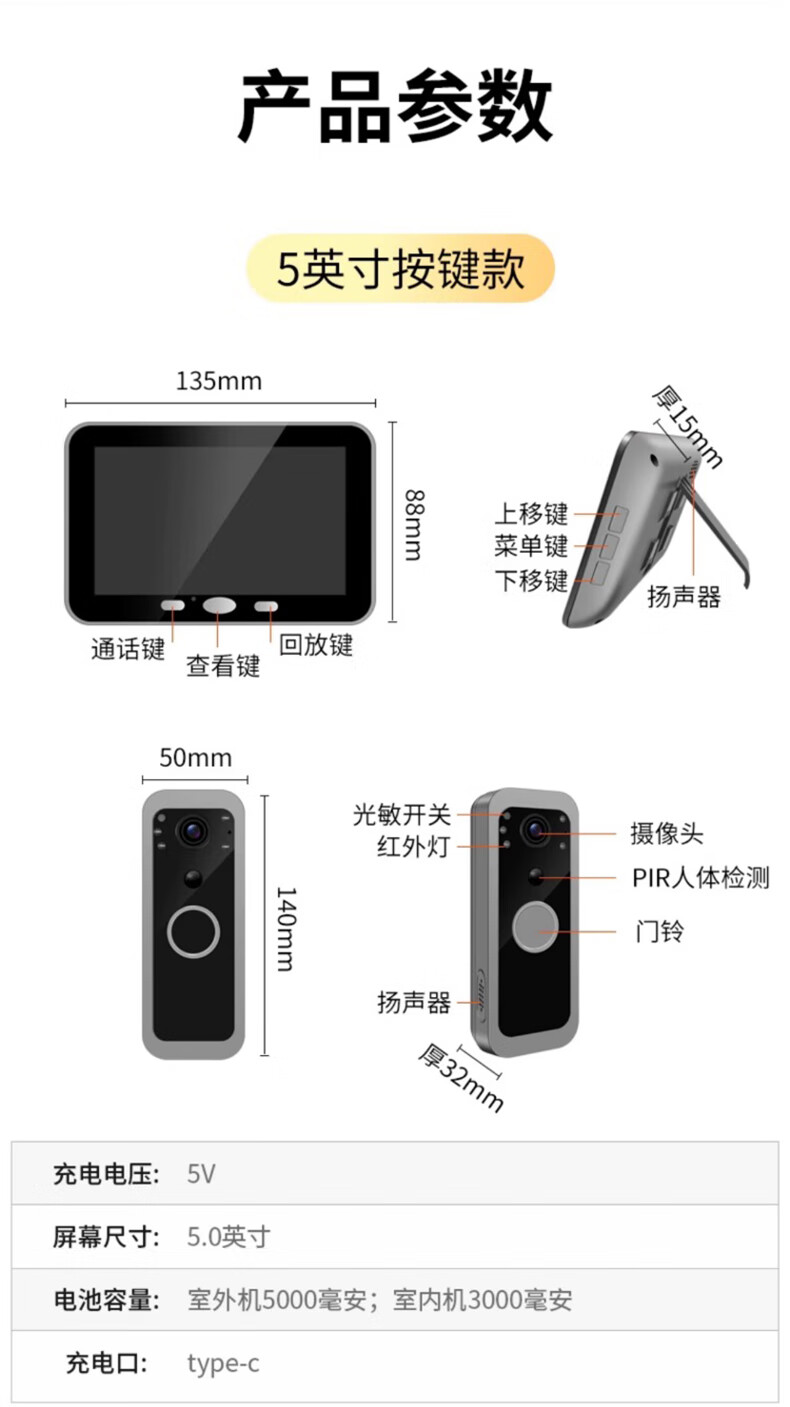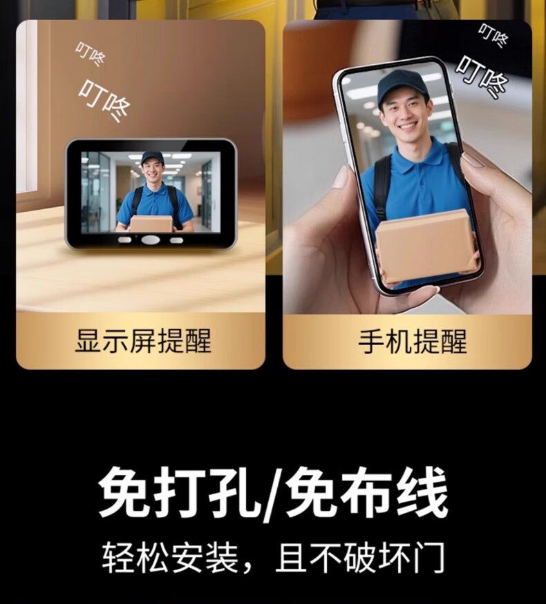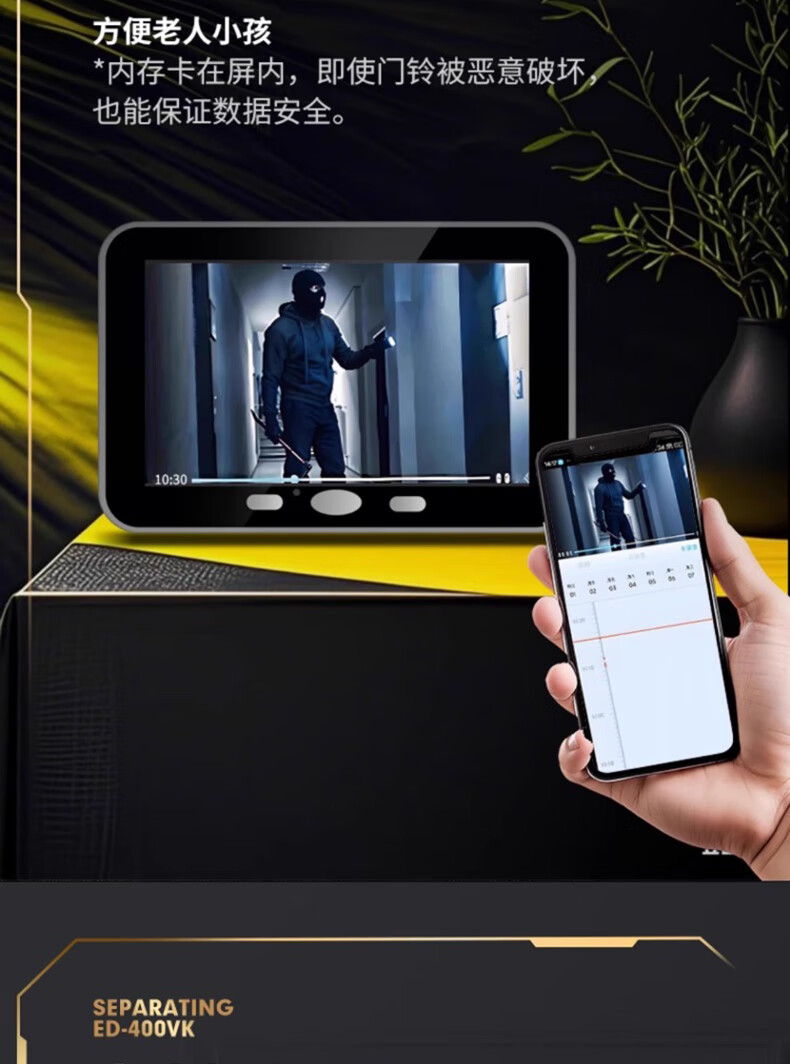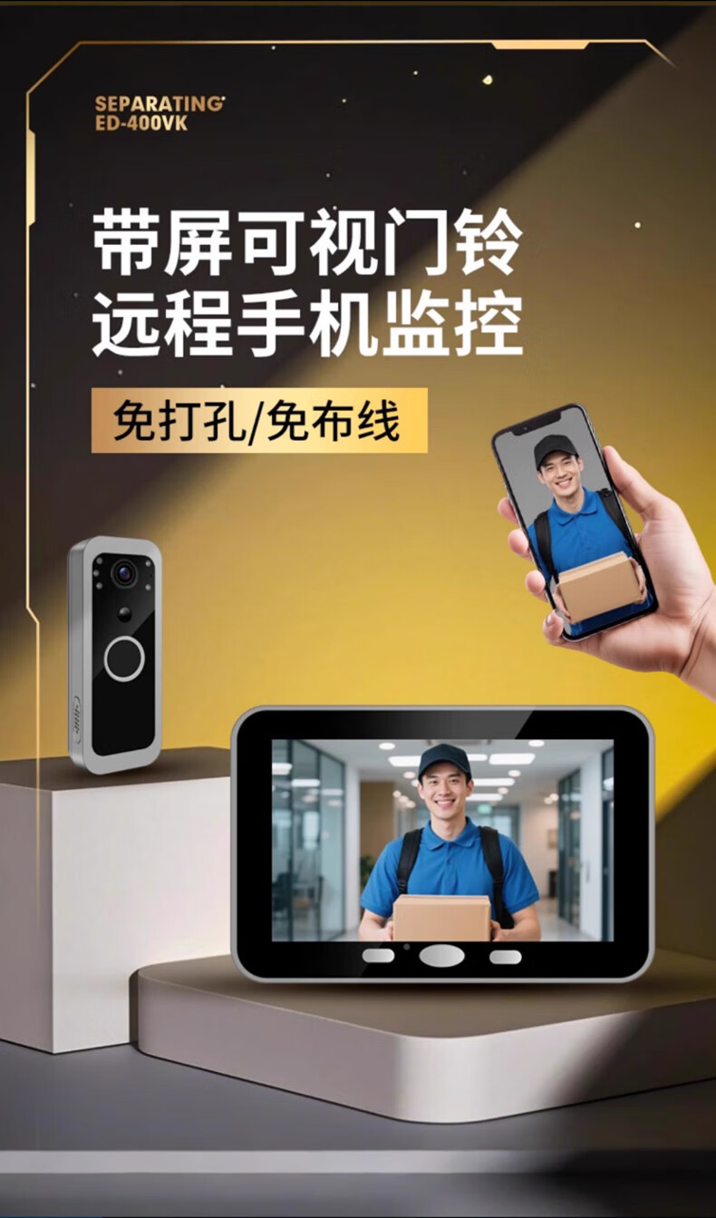 Tiger Butler wireless video doorbell with display, punch-free, home villa waterproof smart monitoring, anti-theft door camera, WIFI-free video intercom, ultra-long distance split electronic cat eye, basic model 4.3-inch screen + active door viewing, no memory card