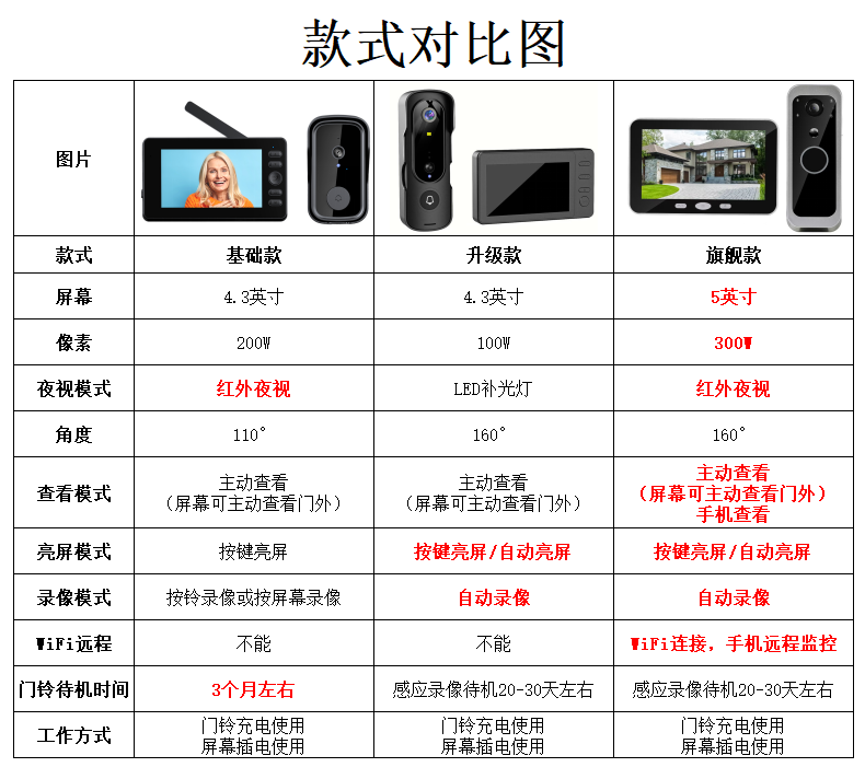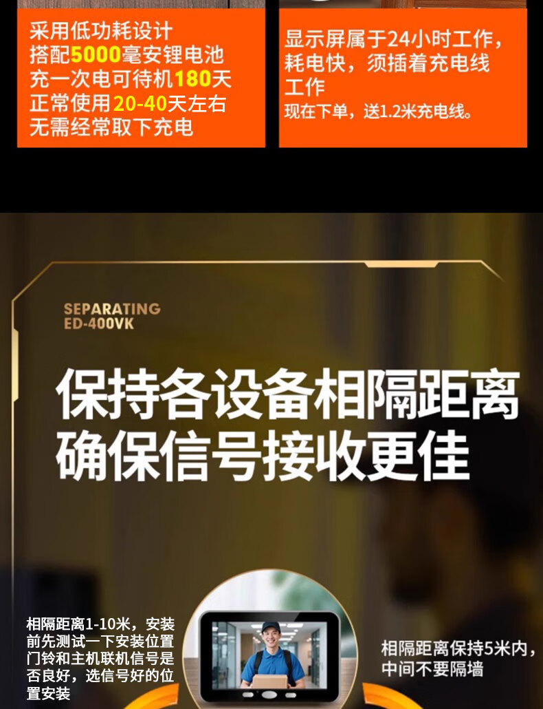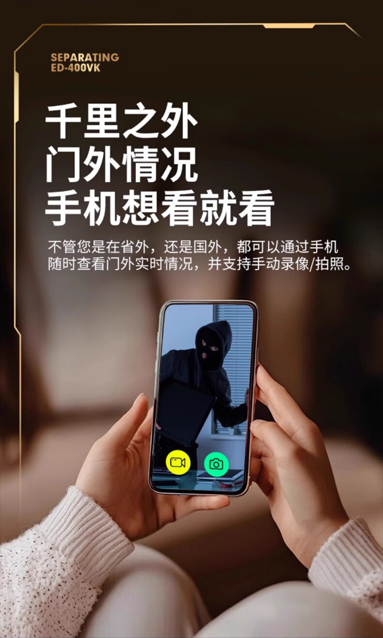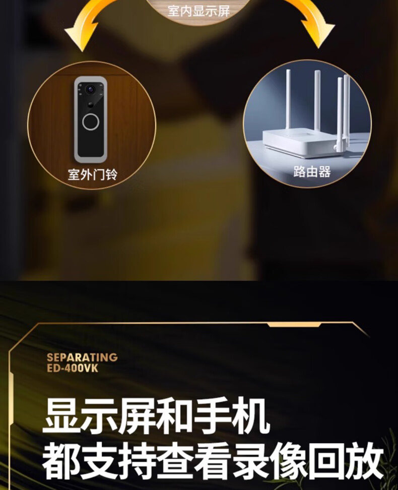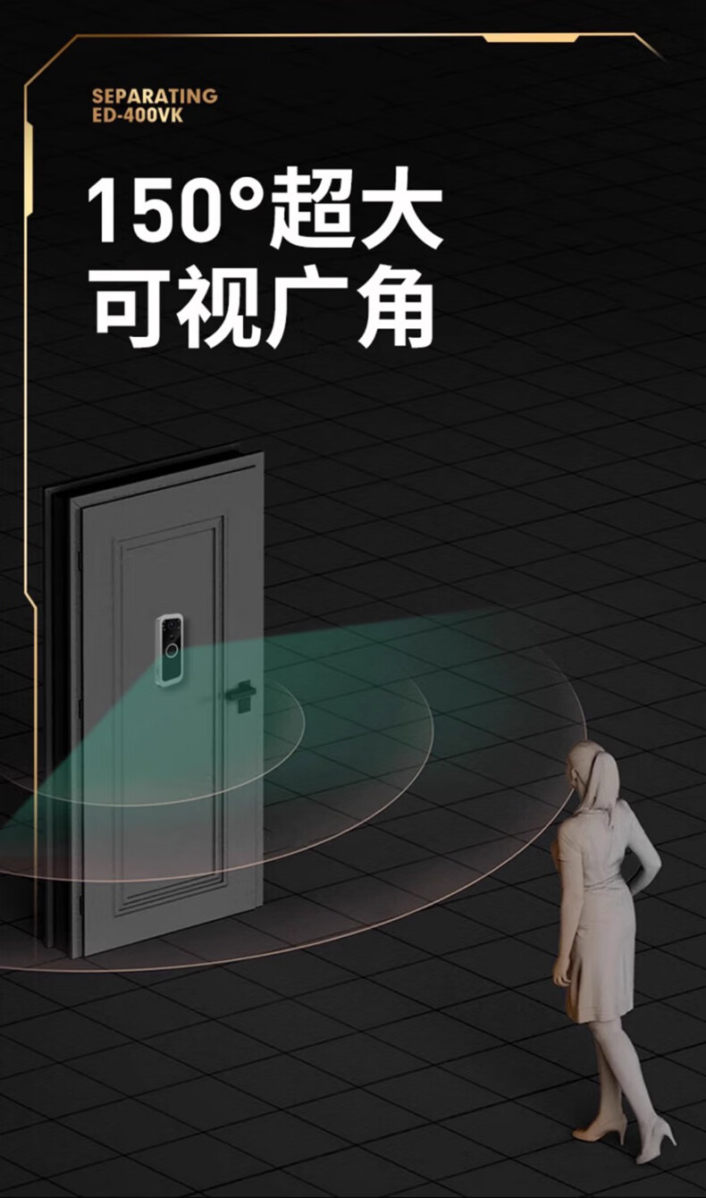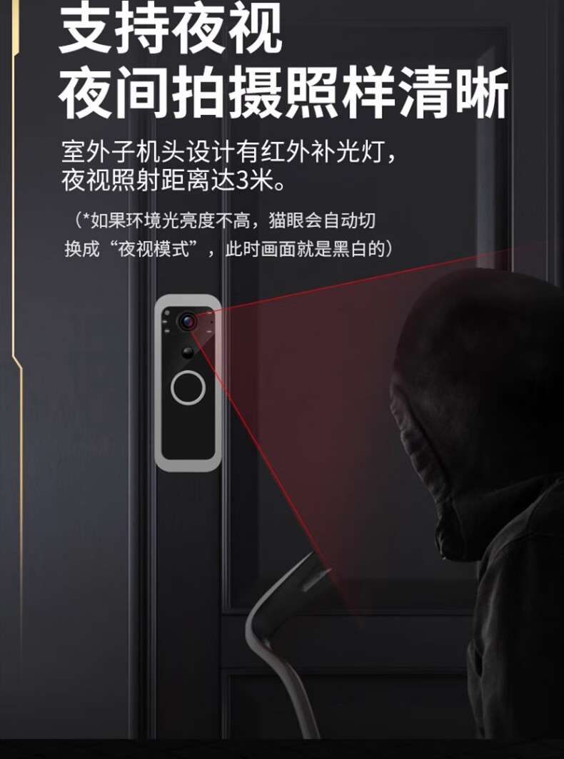 Tiger Butler wireless video doorbell with display, punch-free, home villa waterproof smart monitoring, anti-theft door camera, WIFI-free video intercom, ultra-long distance split electronic cat eye, basic model 4.3-inch screen + active door viewing, no memory card