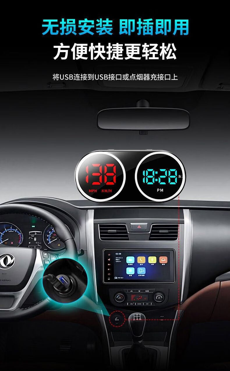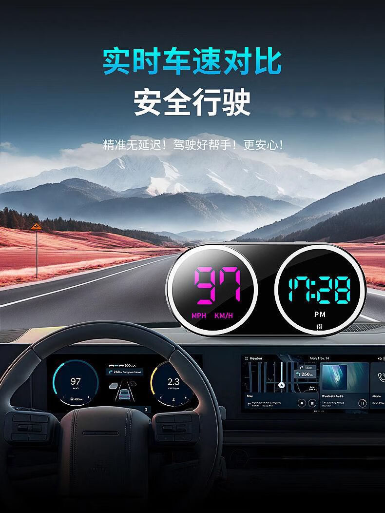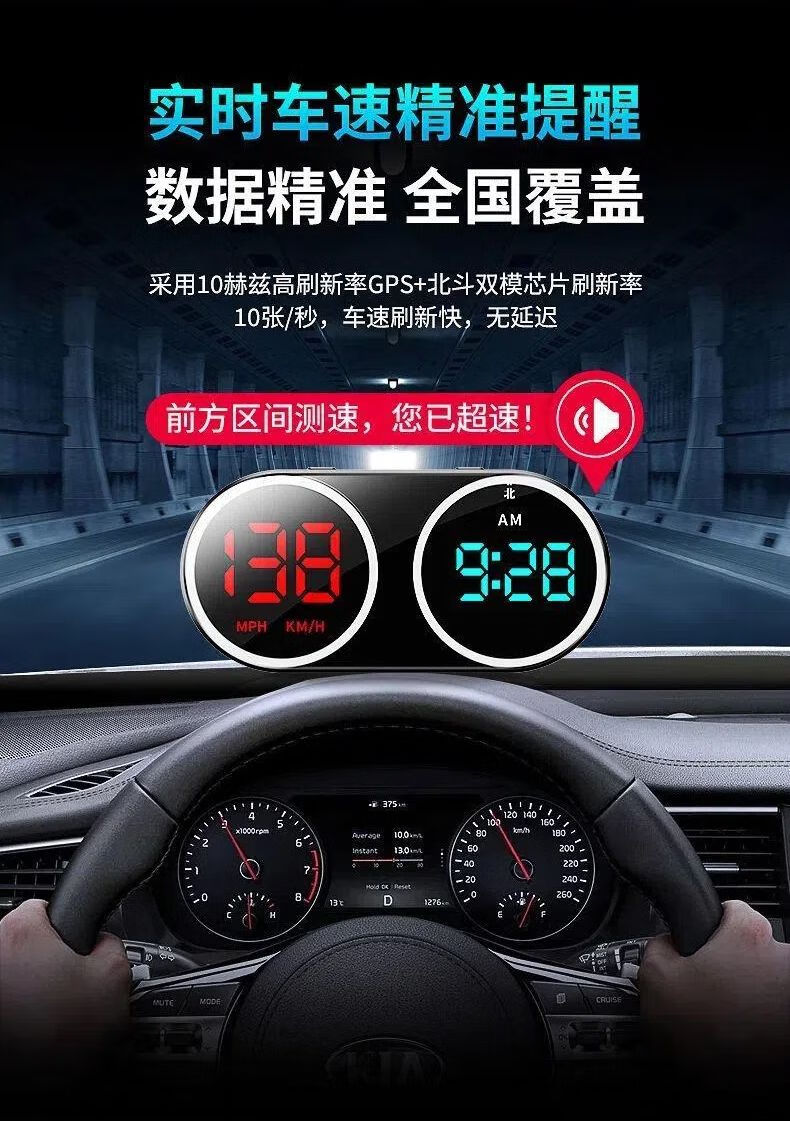 2025 New Electronic Dog Speed Test Car Driving Colorful HUD Display Driving Safety Alarm K15-Dual USB (USB Cable + Cigarette Lighter Plug) with Folder