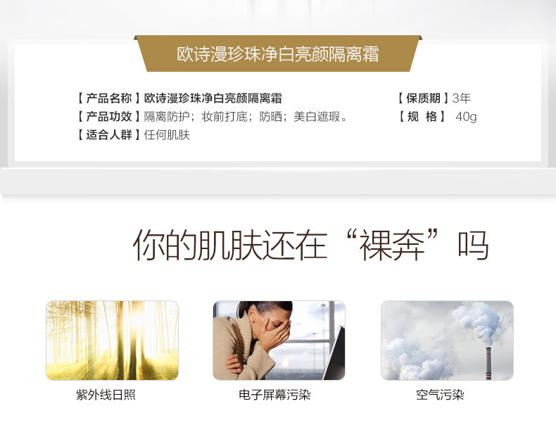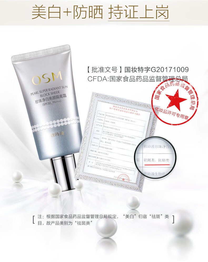 OSM Whitening Cream Sunscreen Isolation Concealer Three-in-One Facial Anti-UV Base Makeup Chinese Valentine's Day Gift OSM Whitening Cream 40g
