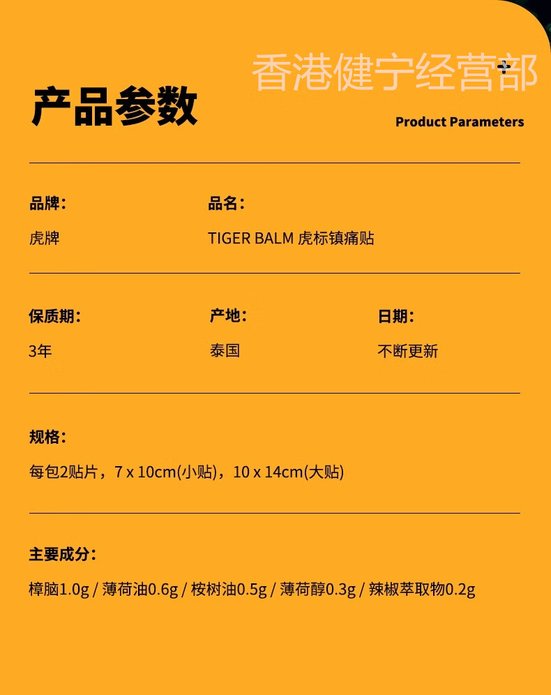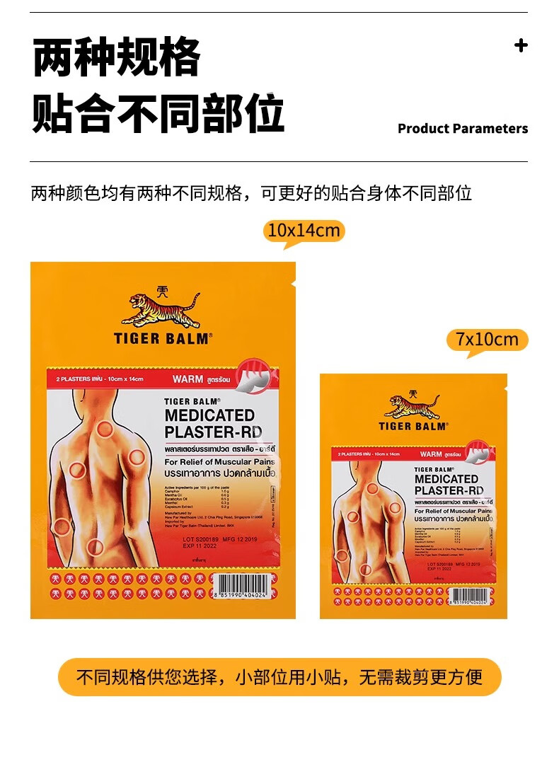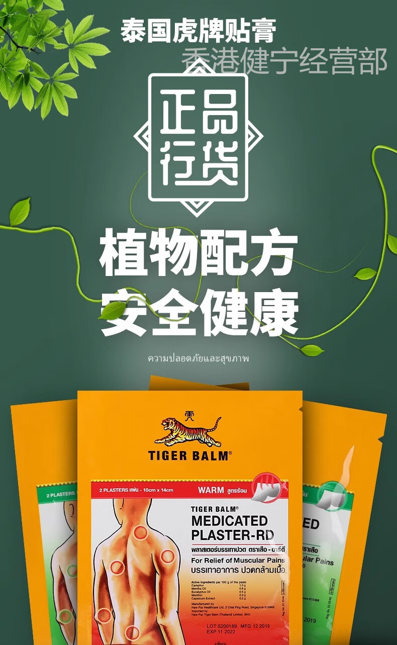 Tiger genuine original Thai plaster Tiger plaster analgesic patch lumbar disc neck shoulder sore pain patch Tiger brand warm patch 3 pack 6 patches - trial pack