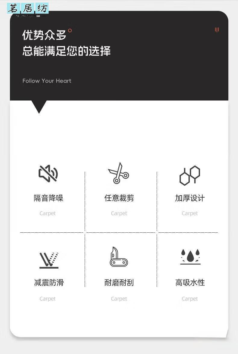 Mingjufang sound-absorbing carpet sound-insulating carpet thickened commercial stain-resistant office bedroom room non-slip water absorption can be cut to the door Elegant gray 40cm*60cm cm
