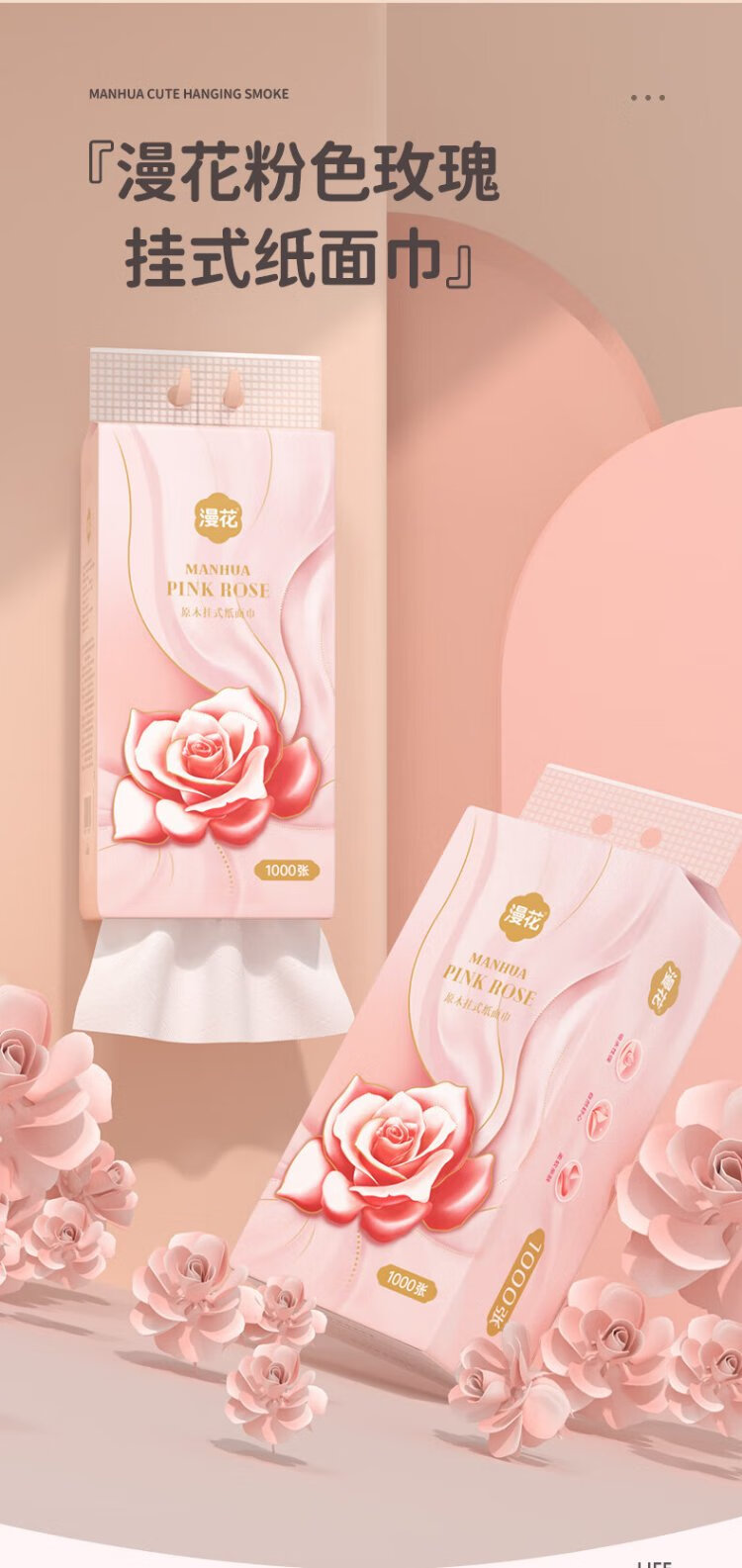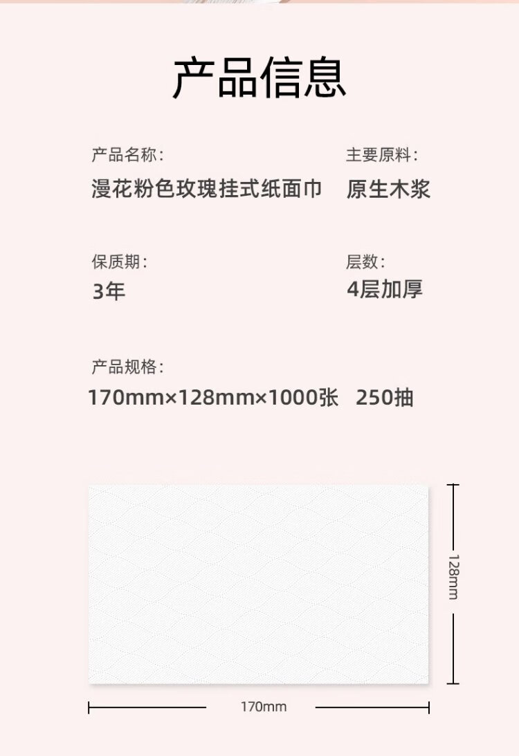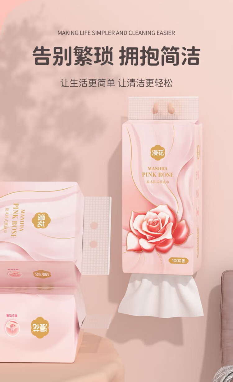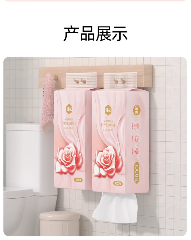 Overflowing hanging toilet paper 4 layers thickened household affordable full box hanging toilet paper facial tissue toilet paper wholesale rose flower 4 layers 1000 sheets * 10 packs