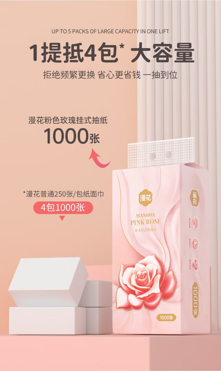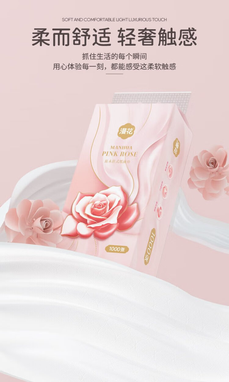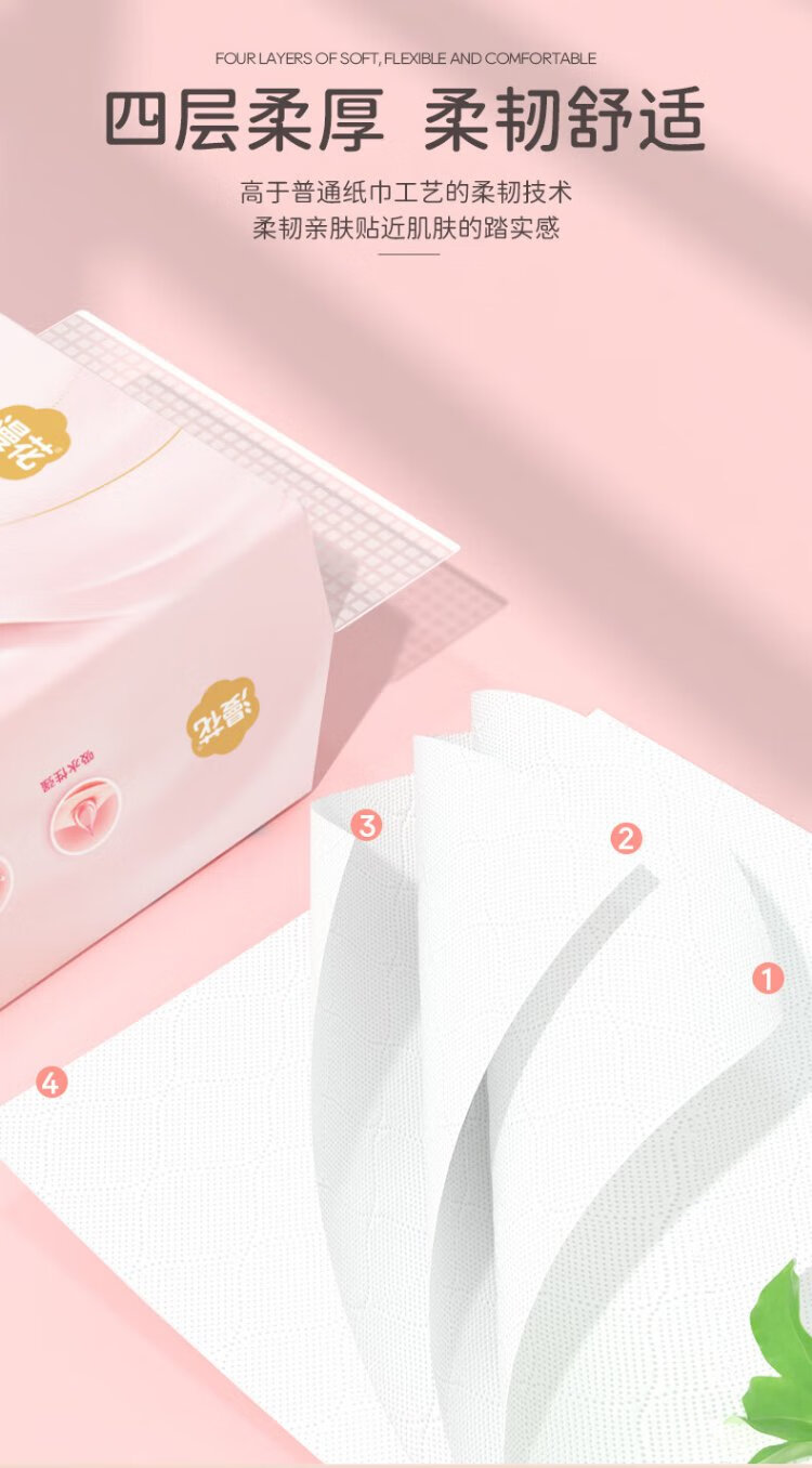 Overflowing hanging toilet paper 4 layers thickened household affordable full box hanging toilet paper facial tissue toilet paper wholesale rose flower 4 layers 1000 sheets * 10 packs