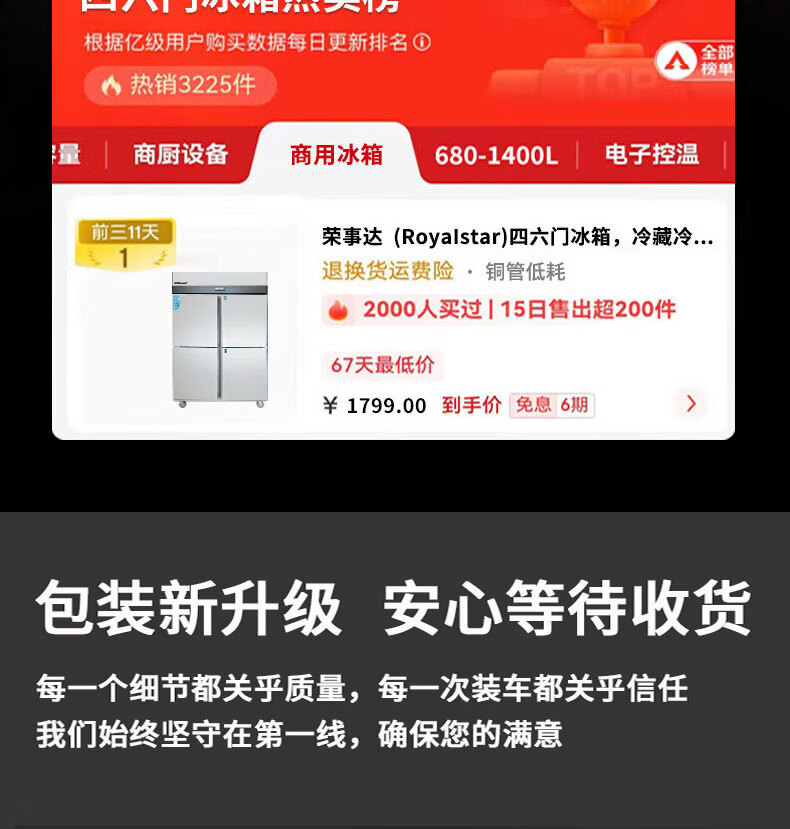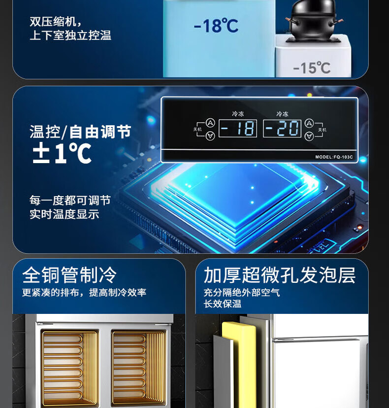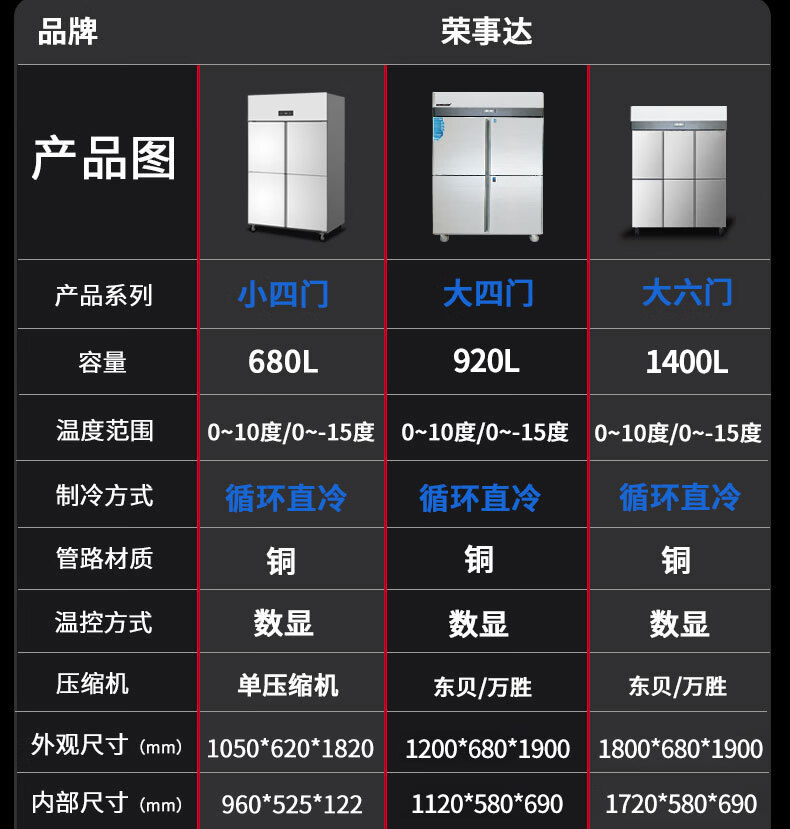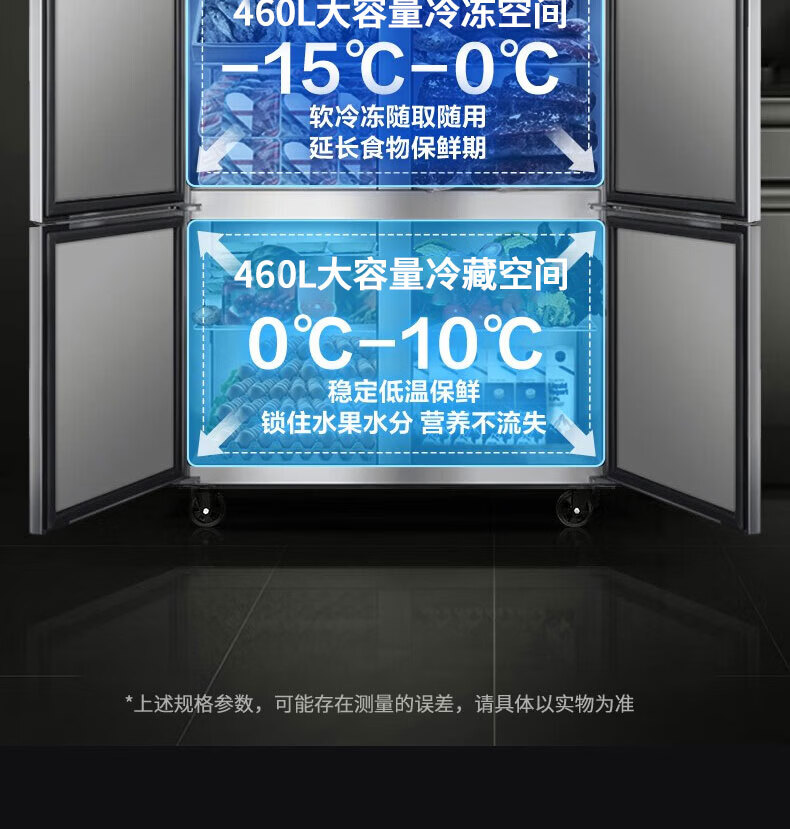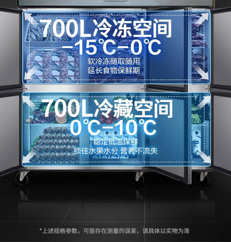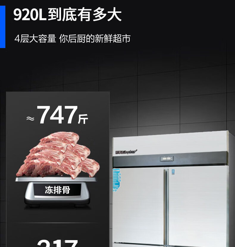 Royalstar four-door refrigerator commercial refrigeration and freezing dual-temperature freezer six-door large-capacity refrigerator catering kitchen hotel vertical stainless steel fresh cabinet four-door refrigerator refrigeration display cabinet fully refrigerated large six-door pure copper tube丨luxury model 2026 new upgrade丨large capacity丨automatic rebound door
