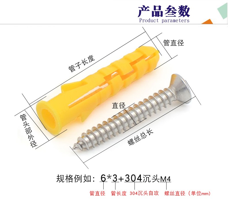 Easy Plastic Expansion Tube Small Yellow Croaker Expansion Screw Expansion Plug Rubber Plug Anchor with Self-Tapping Screw 6mm8mm10mm M10x100mm Single Expansion Tube (100 pieces)