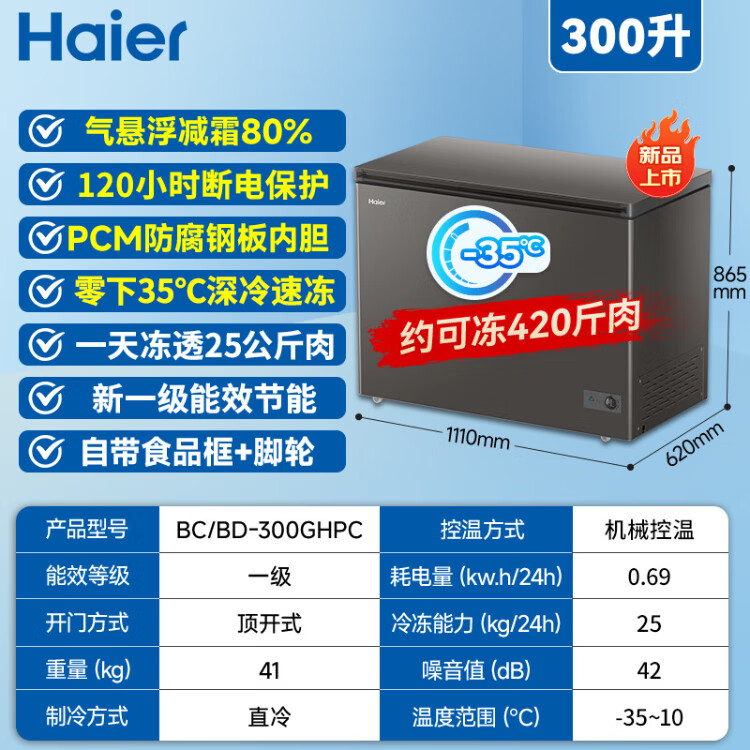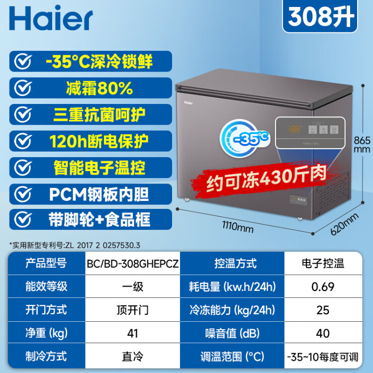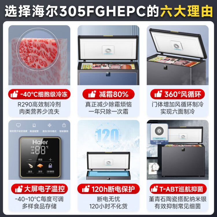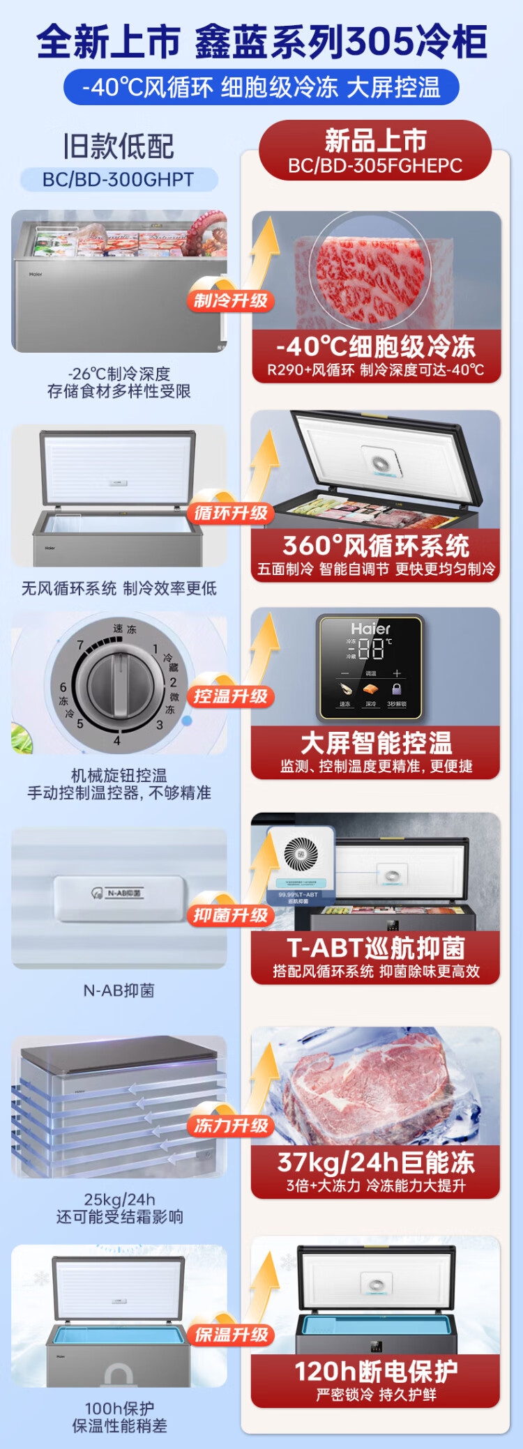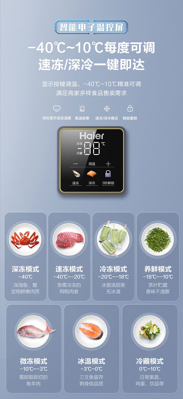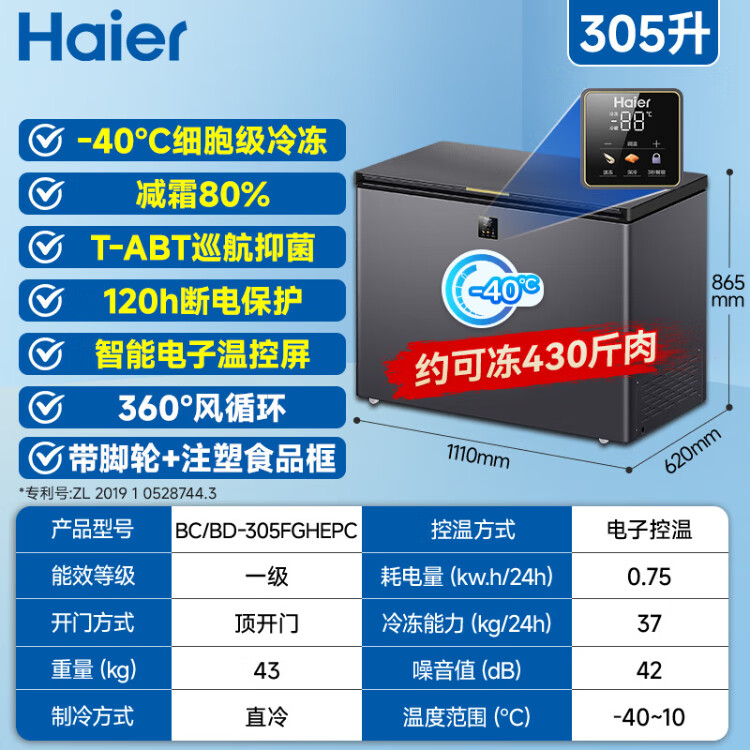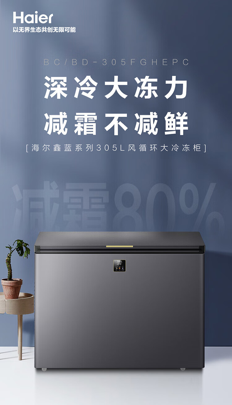 Haier Cryogenic Series 300/302/305/308/369L Large Capacity Single Temperature Household Freezer Frost Reduction and Bacteria Reduction Fully Freezing Full Refrigeration Switchable Freezer Level One Energy Efficiency and Energy Saving 305L -40 Air Circulation | Digital Display Temperature Control | Frost Reduction and Bacteria Reduction