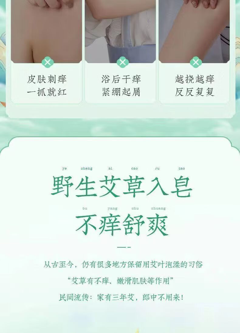 Mugwort laundry soap large block essential oil anti-itching, sterilization, acne removal, mite cleaning, high efficiency 80gx2 pieces