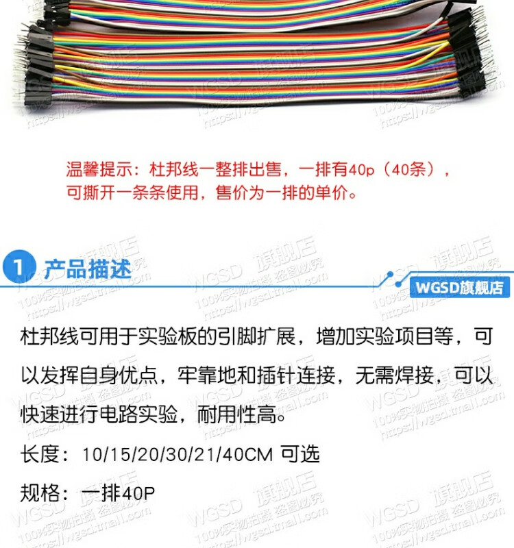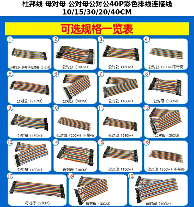 Dafu Rui DuPont wire female to female male to female male to male 40P color connecting wire male to bus 10/30/20/40CM cable male to female (30CM) 2.54mm (1 row 40P)