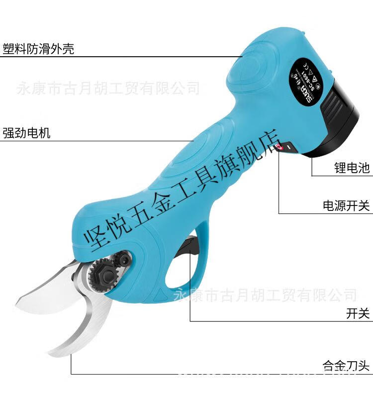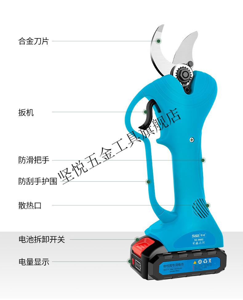MDNG customized lithium battery cordless electric pruning shears, fruit tree scissors, pruning shears, fruit tree garden pruning rechargeable shears, Shuchang Jiahang Corded Shears 3CM, one large battery, one charge