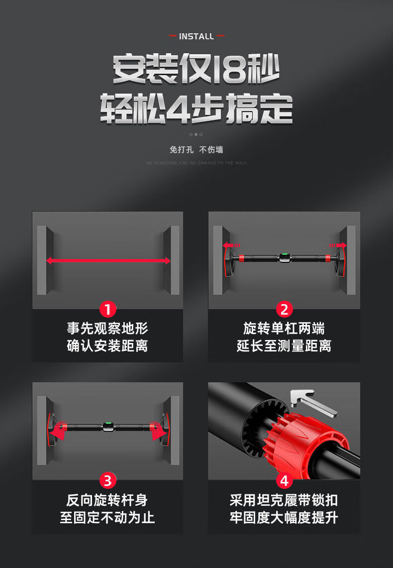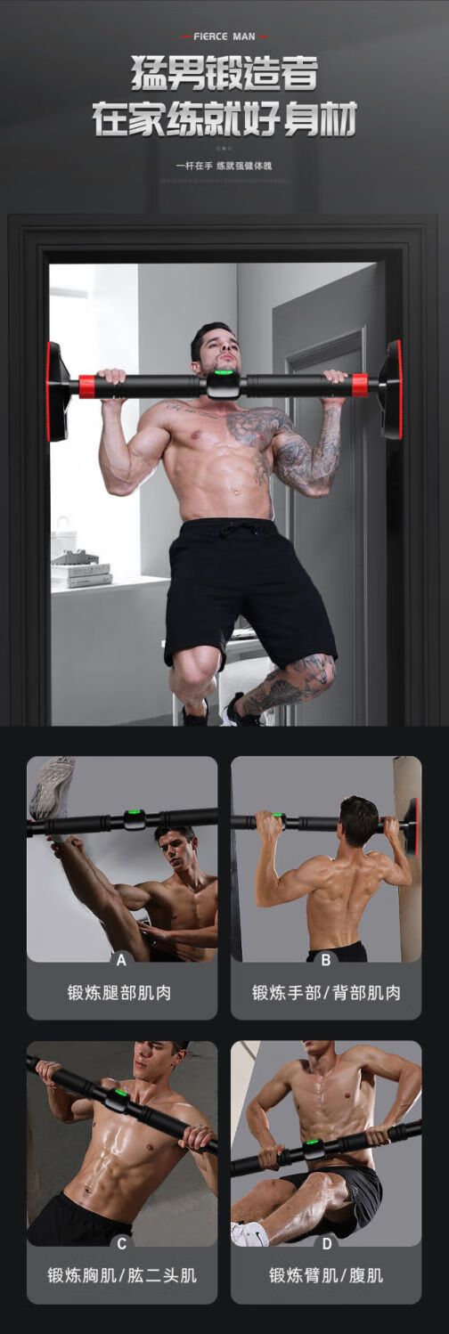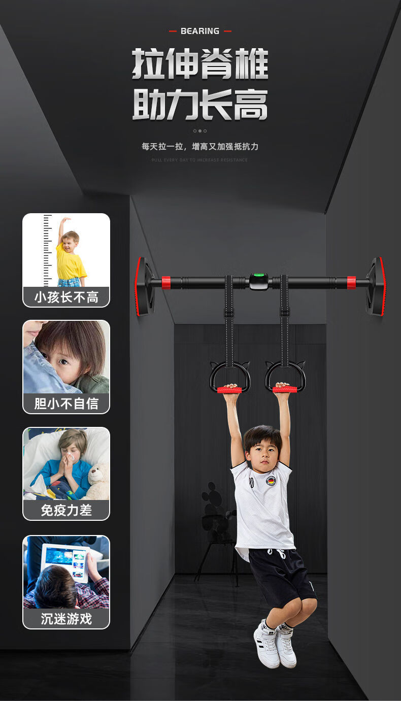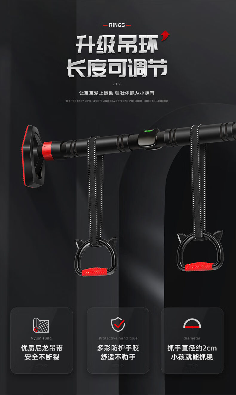 Qili horizontal bar indoor home pull-up device without punching door fitness equipment for adults and children stretching exercise boom intelligent level + hanging ring installation 70-100cm