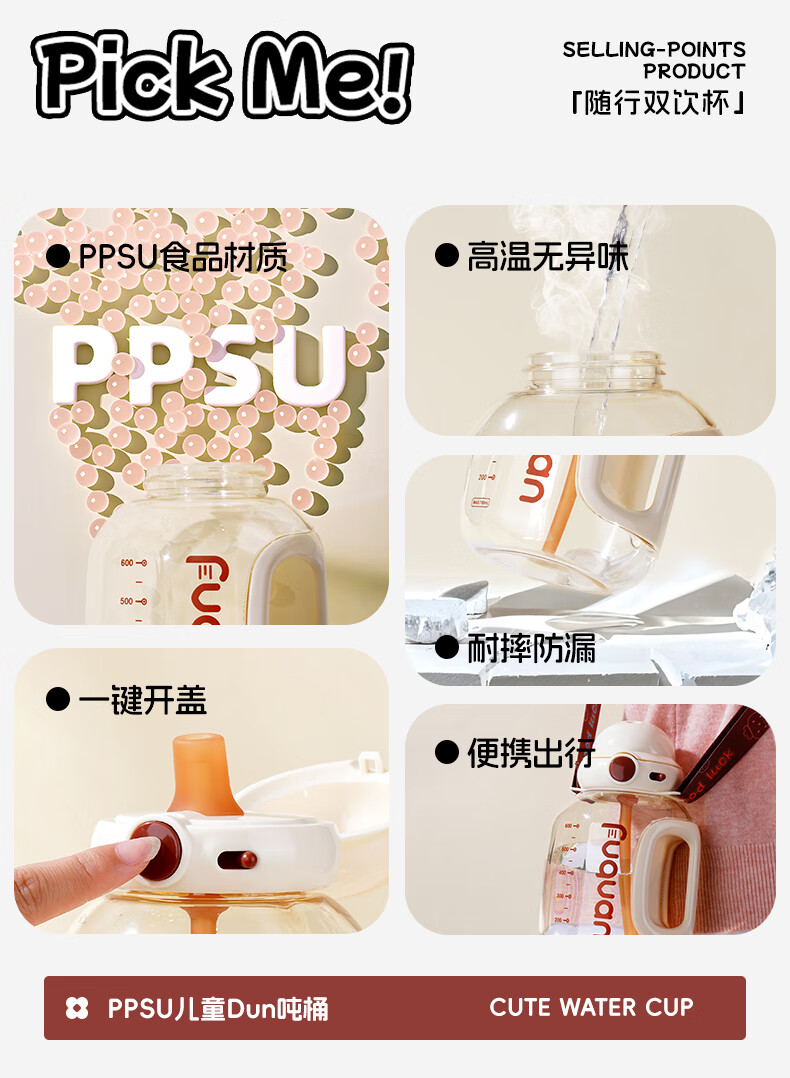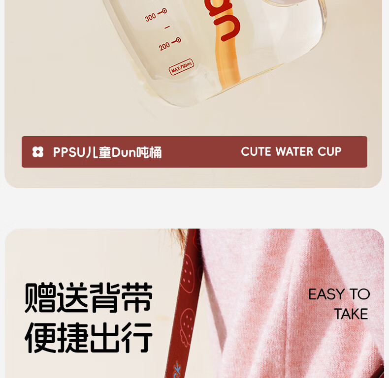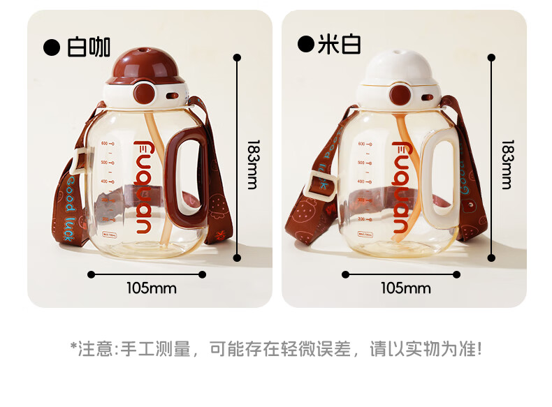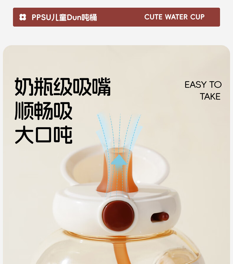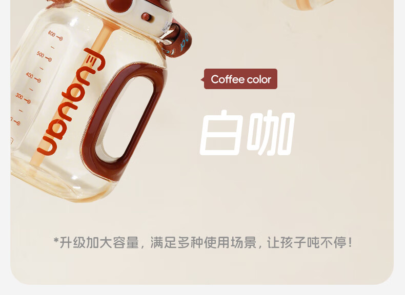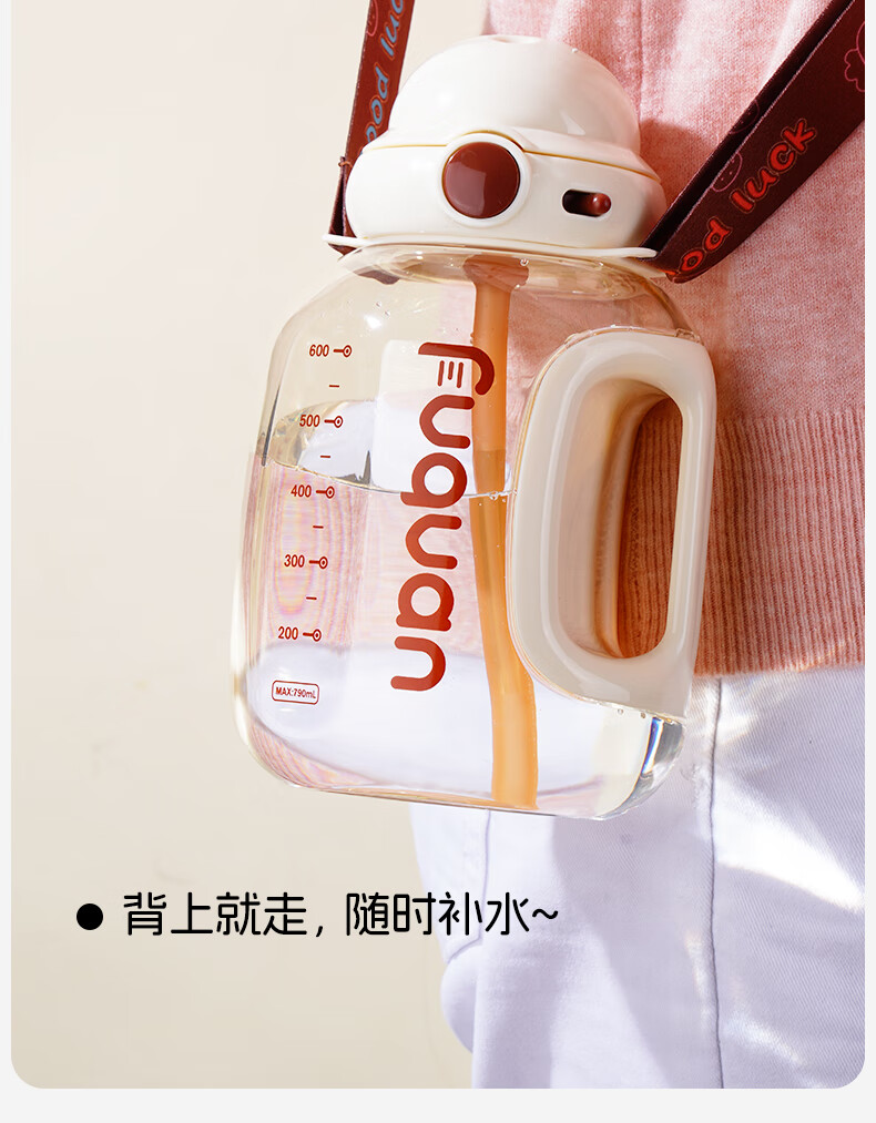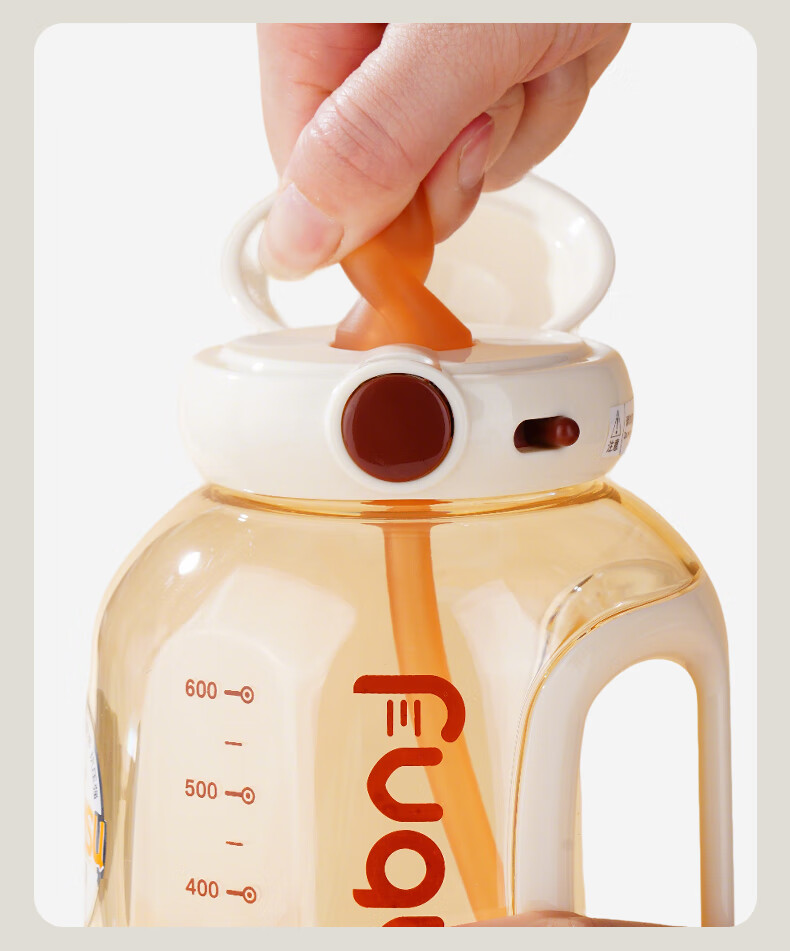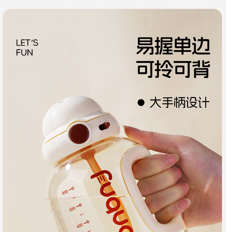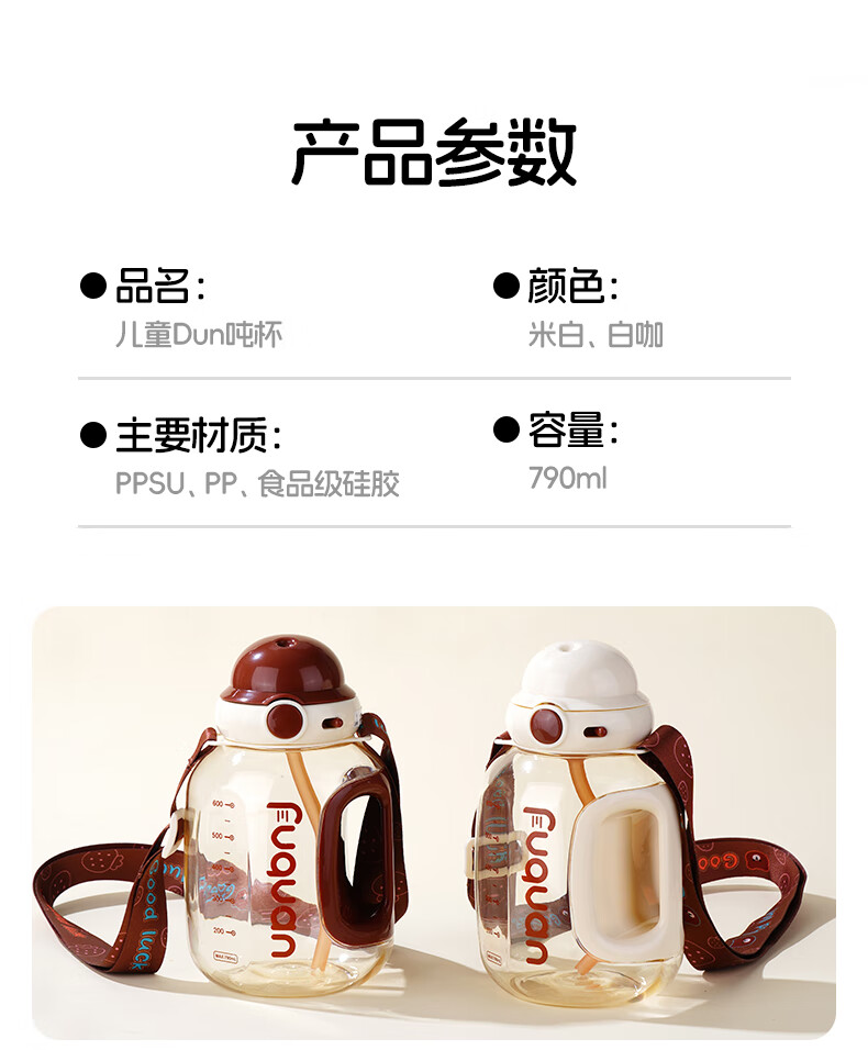 Fuquan ton bucket ton children's water cup direct drinking straw cup ppsu kindergarten summer boys and girls kettle out portable cup 4 years old + can be carried on the back, rice white 790ml