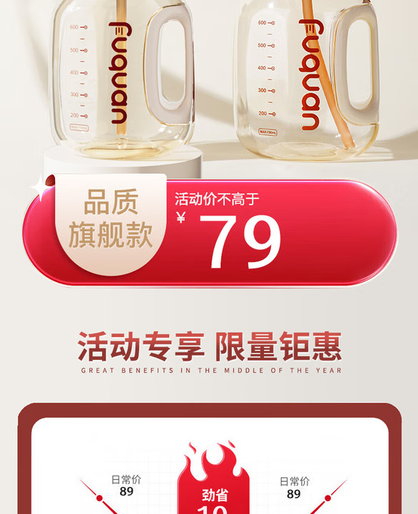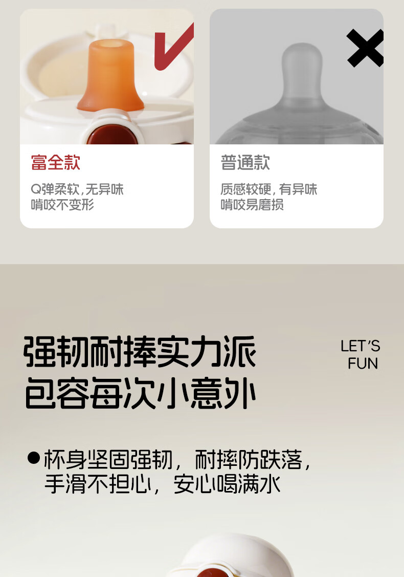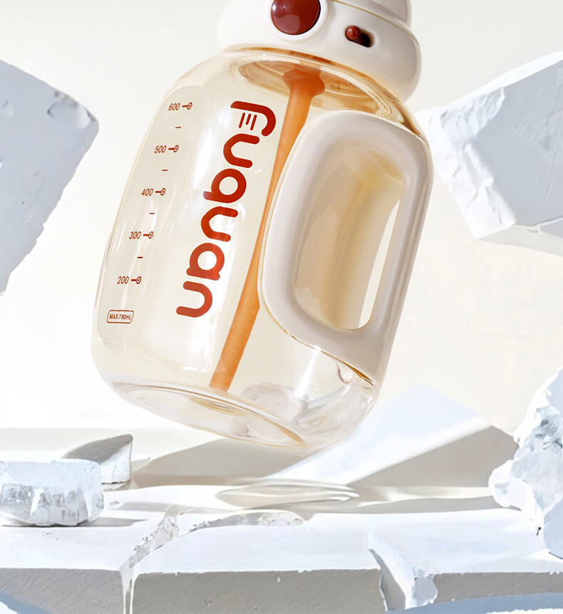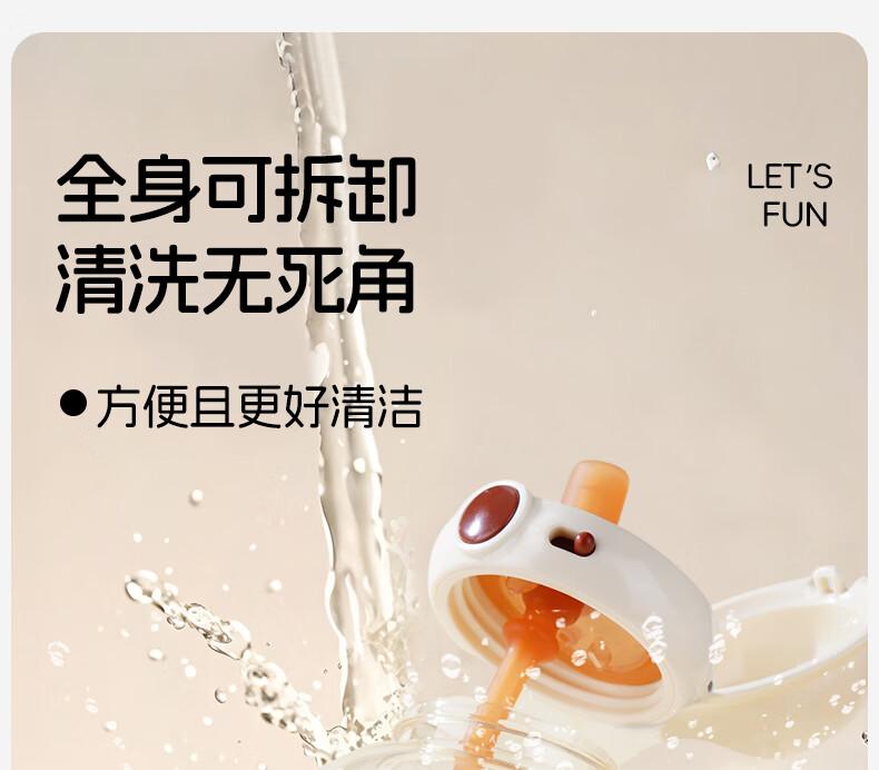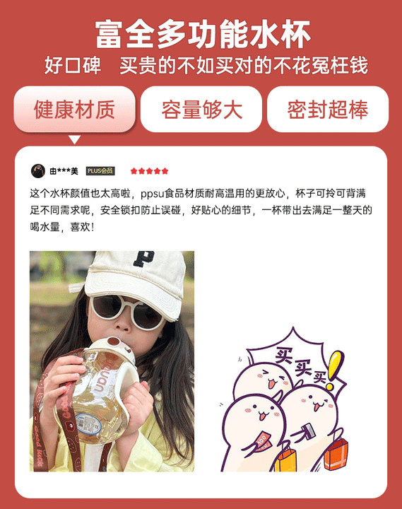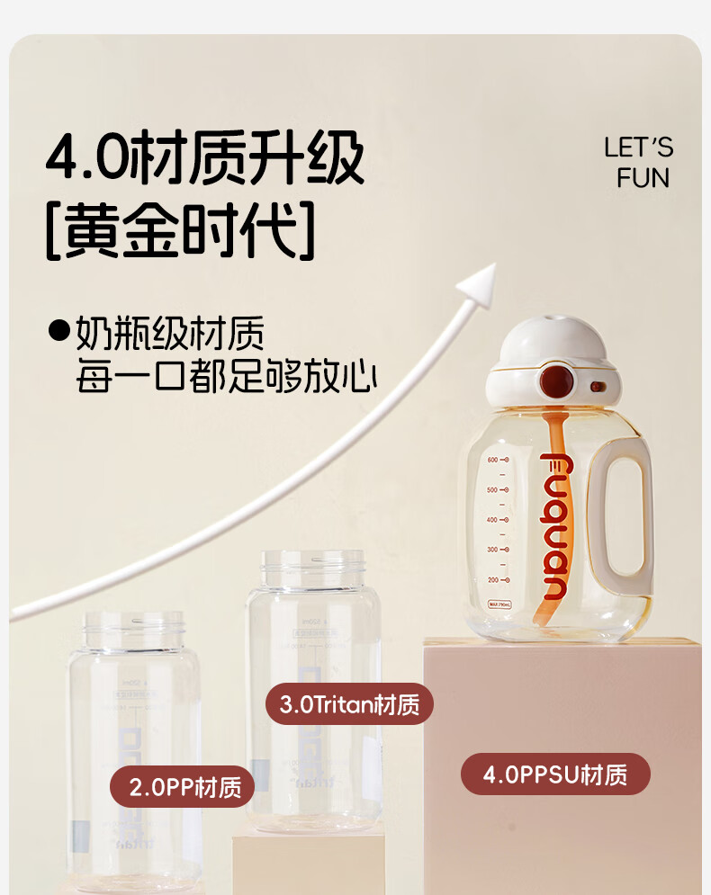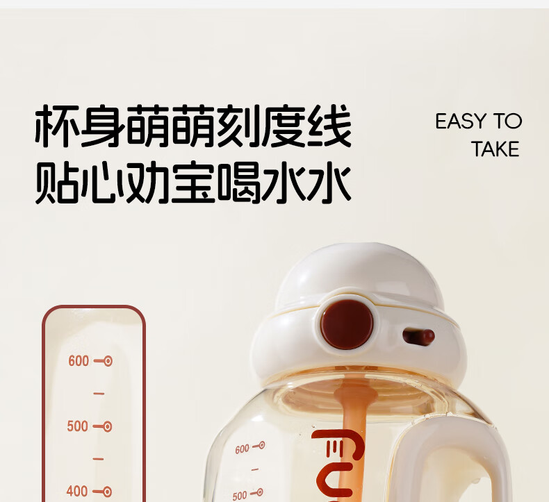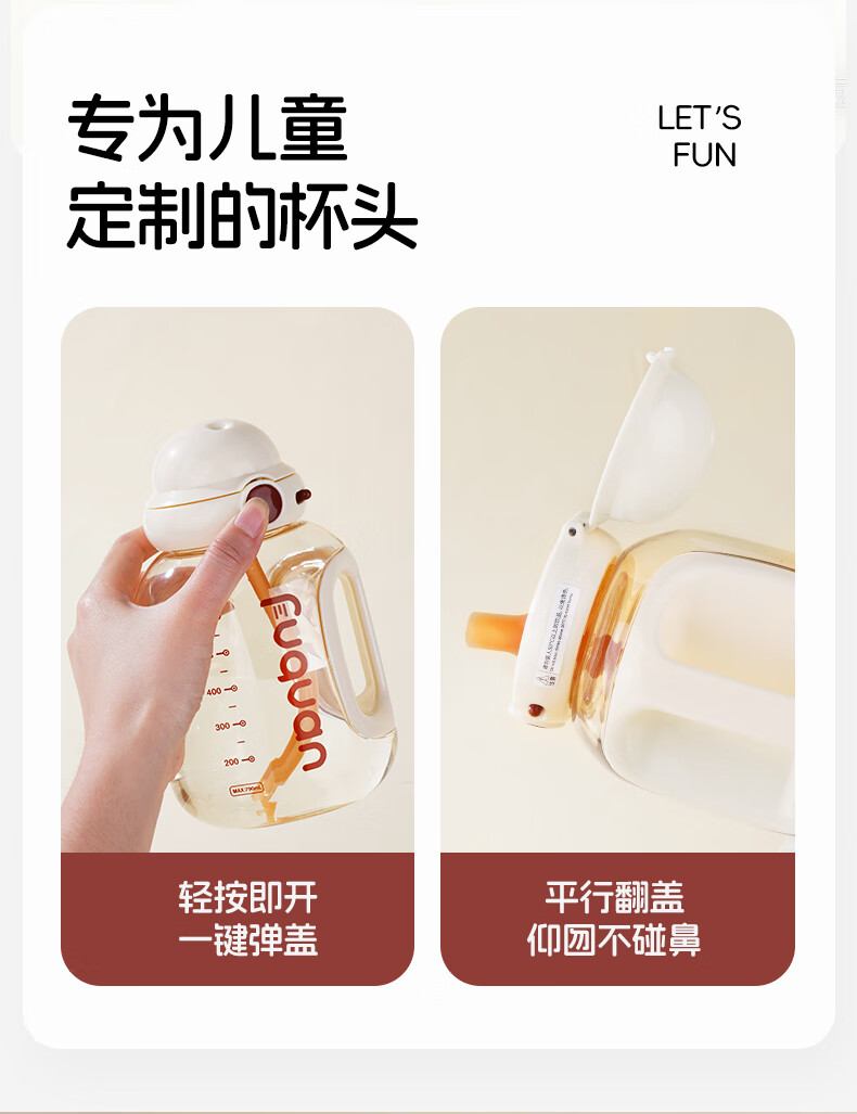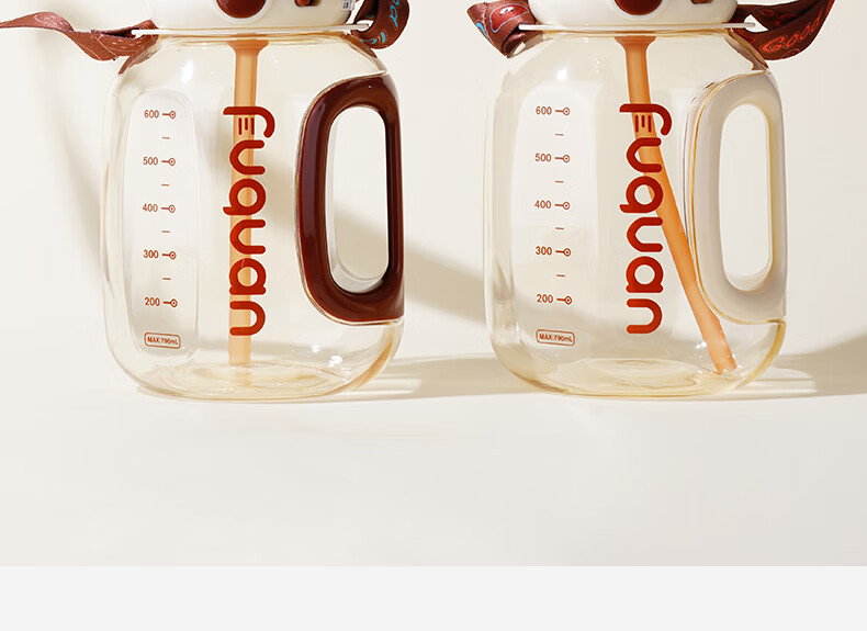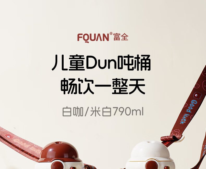 Fuquan ton bucket ton children's water cup direct drinking straw cup ppsu kindergarten summer boys and girls kettle out portable cup 4 years old + can be carried on the back, rice white 790ml